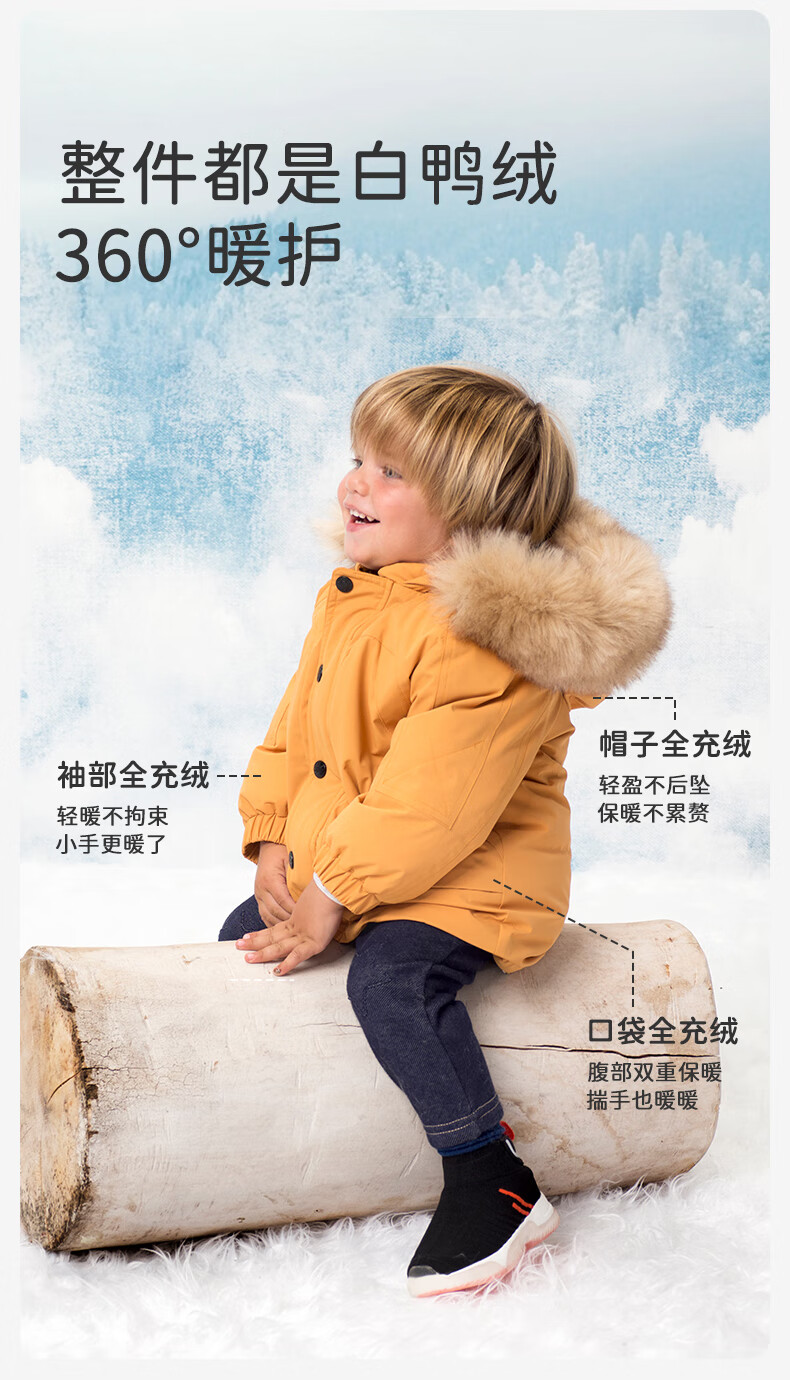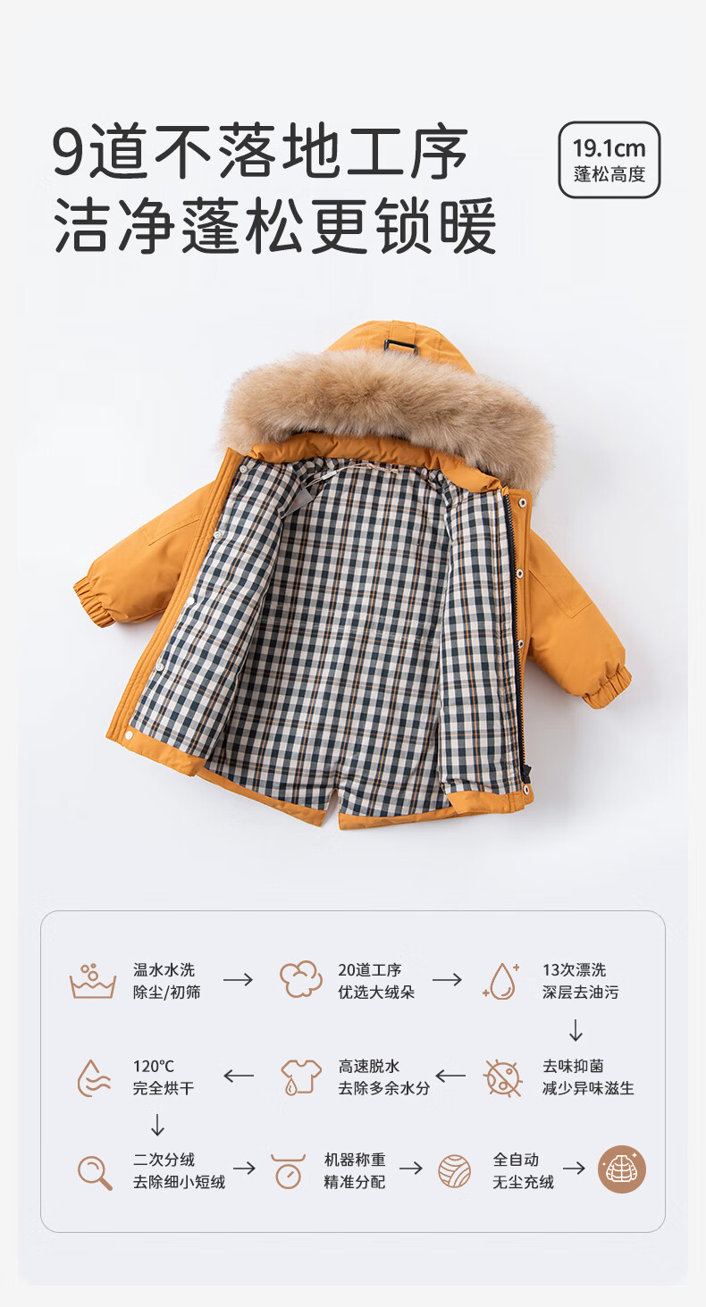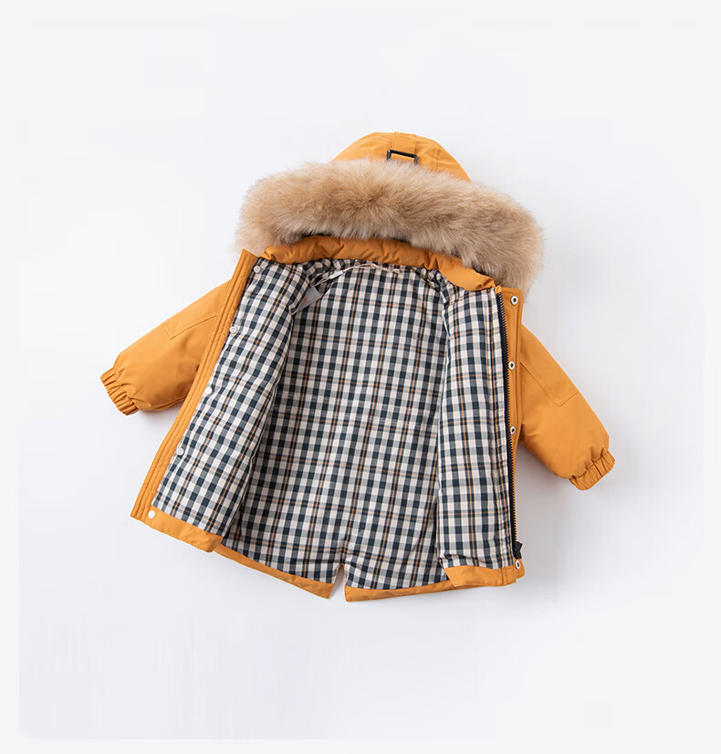 戴维贝拉(DAVE&BELLA)冬季童装羽绒外套儿童羽绒服男童加厚保暖婴儿宝宝衣服轻薄款冬装 杏黄色DB15565 130 cm(建议身高120-130cm)