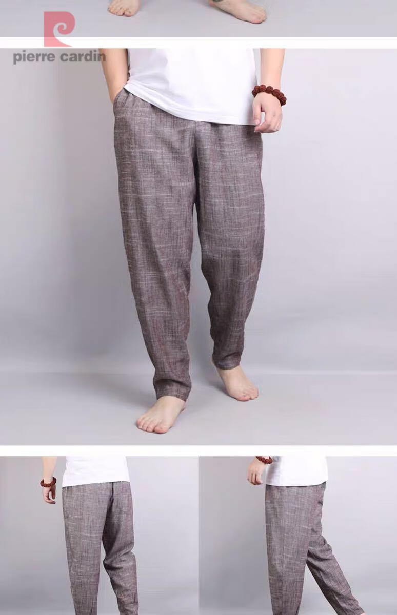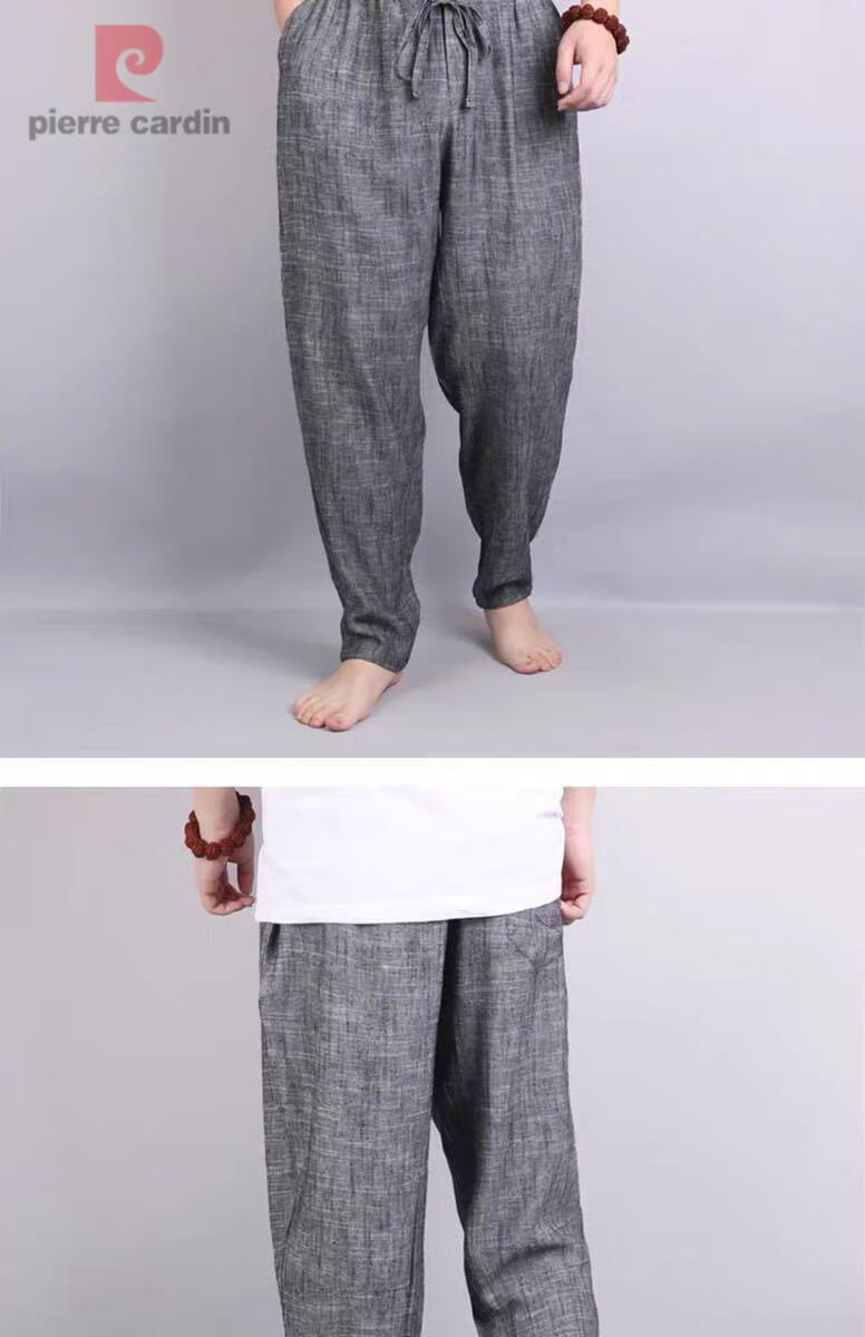 皮尔卡丹(pierre cardin)春秋款复古亚麻哈伦裤男士棉麻休闲裤宽松潮男中国风萝卜裤 灰色 款 常规 XL 150斤左右