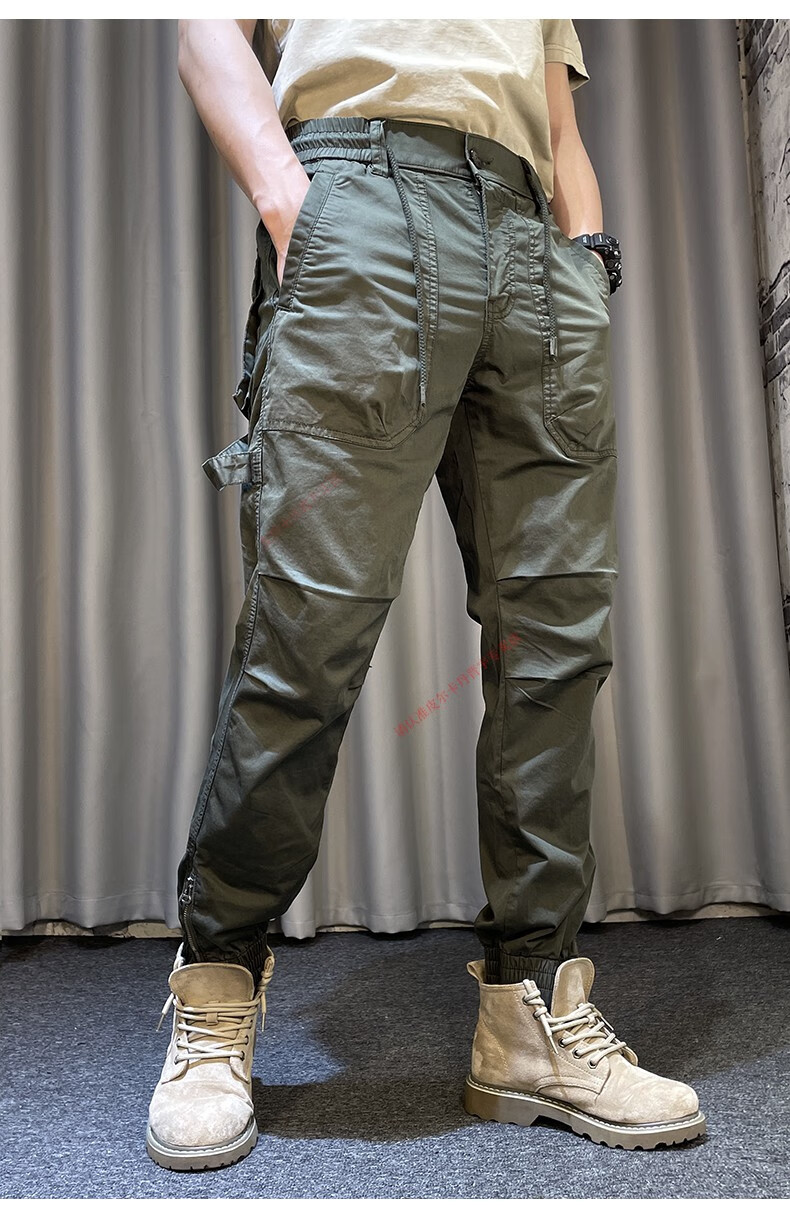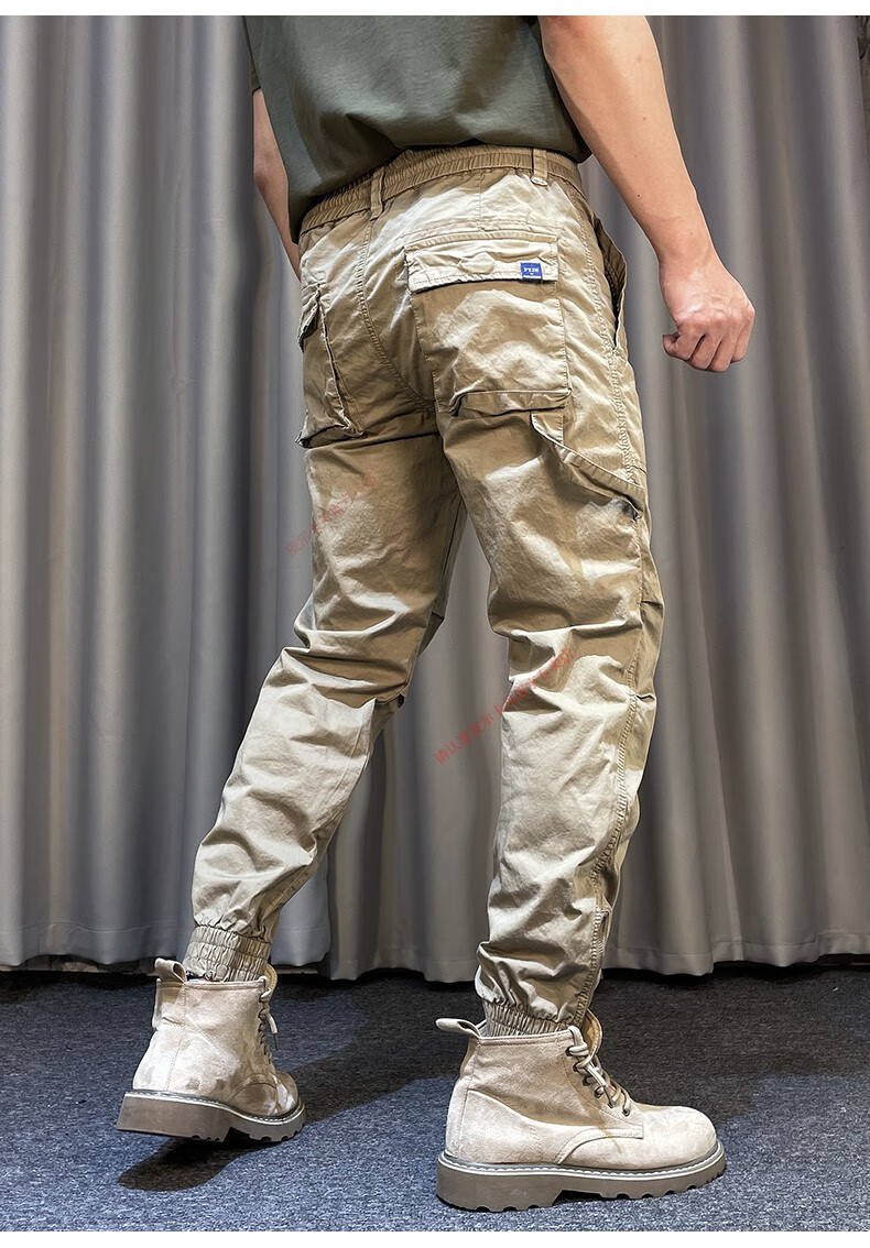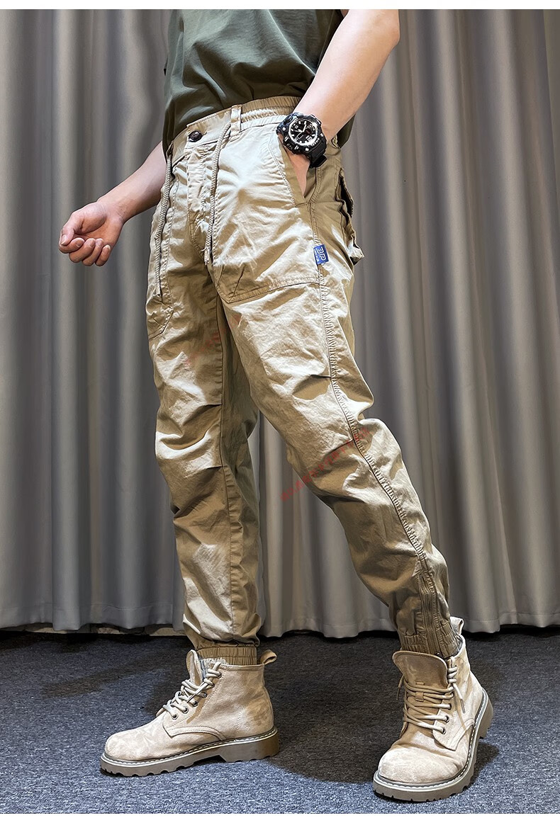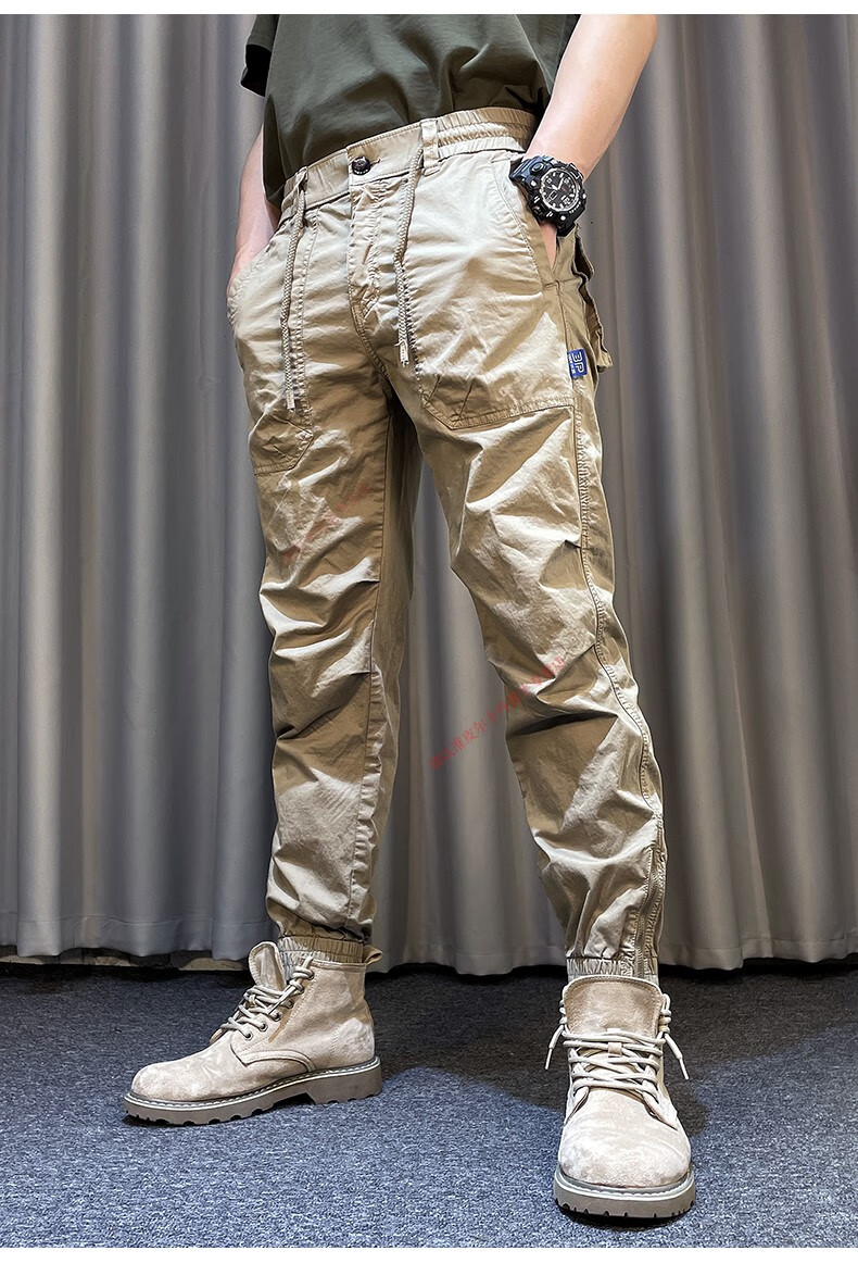 JEEP SPIRIT男装高档纯棉休闲裤男美式潮牌复古宽松春秋夏工装裤户外束脚裤子 卡其色679夏季薄款 28 建议90-110斤