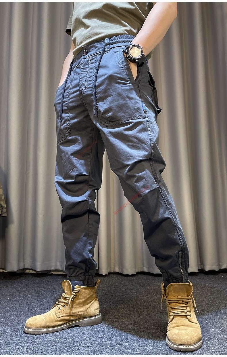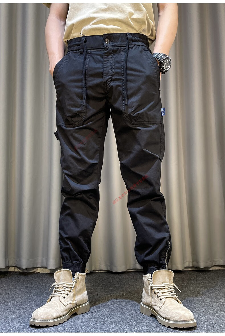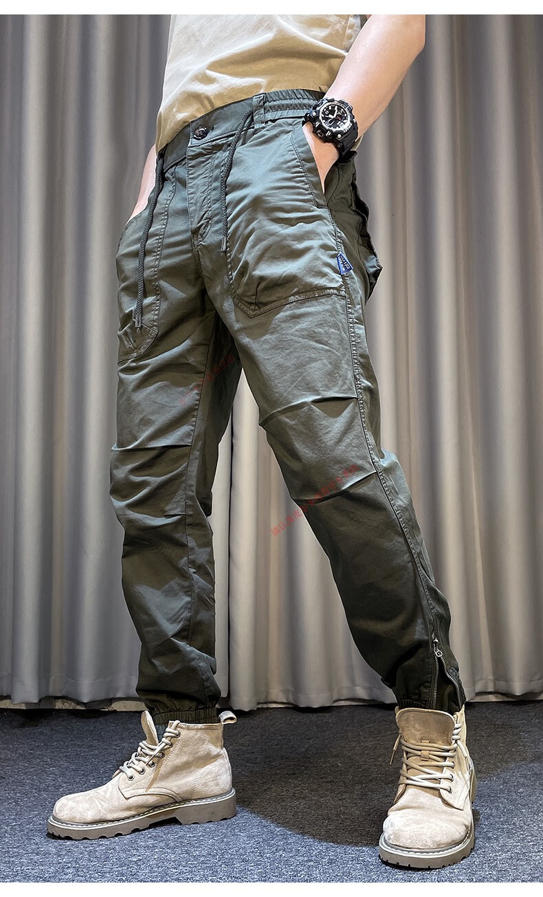 JEEP SPIRIT男装高档纯棉休闲裤男美式潮牌复古宽松春秋夏工装裤户外束脚裤子 卡其色679夏季薄款 28 建议90-110斤