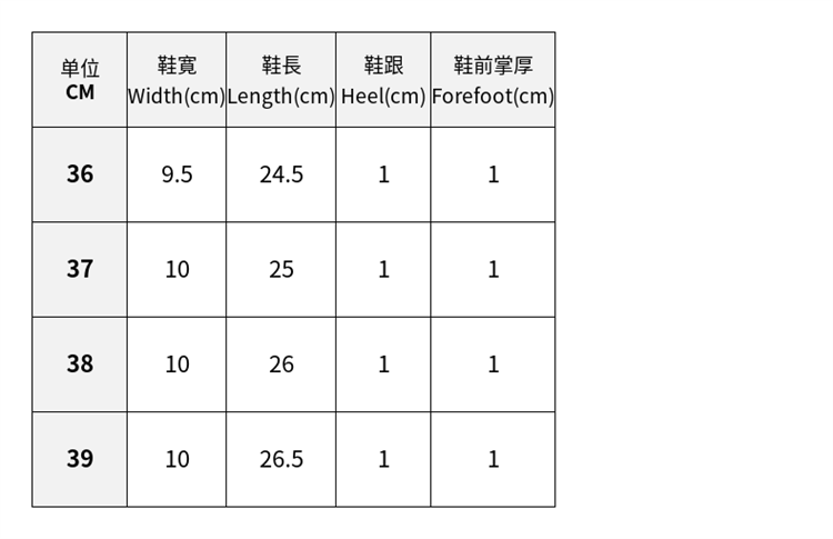 China (cm) 36 - 37 38 - 39 40 - 42 43 - 44 45 - 47