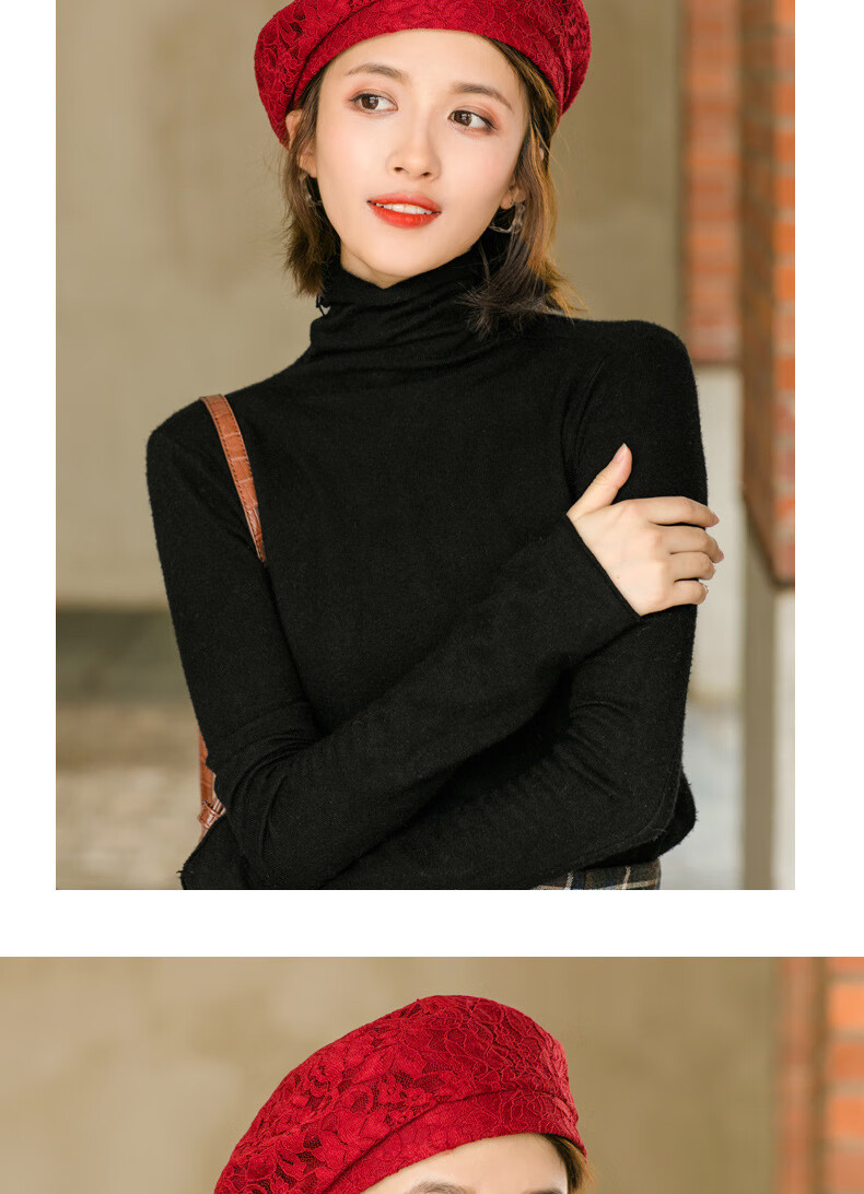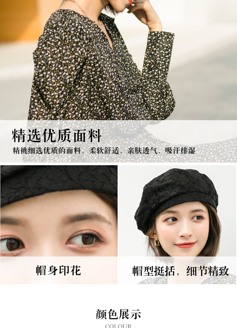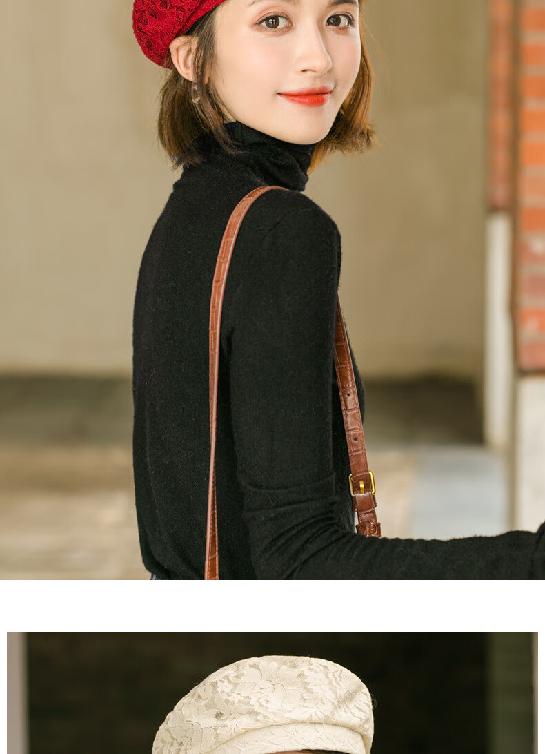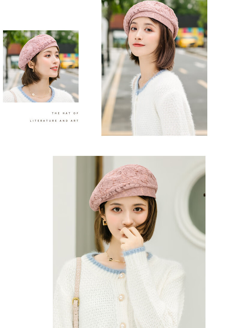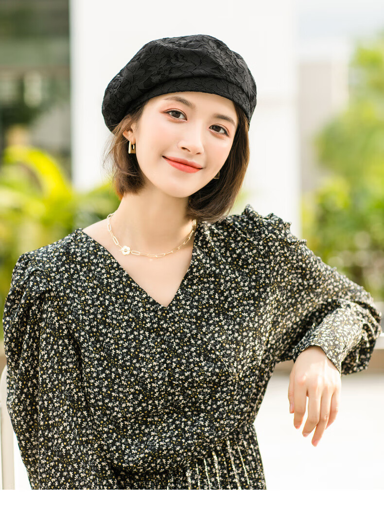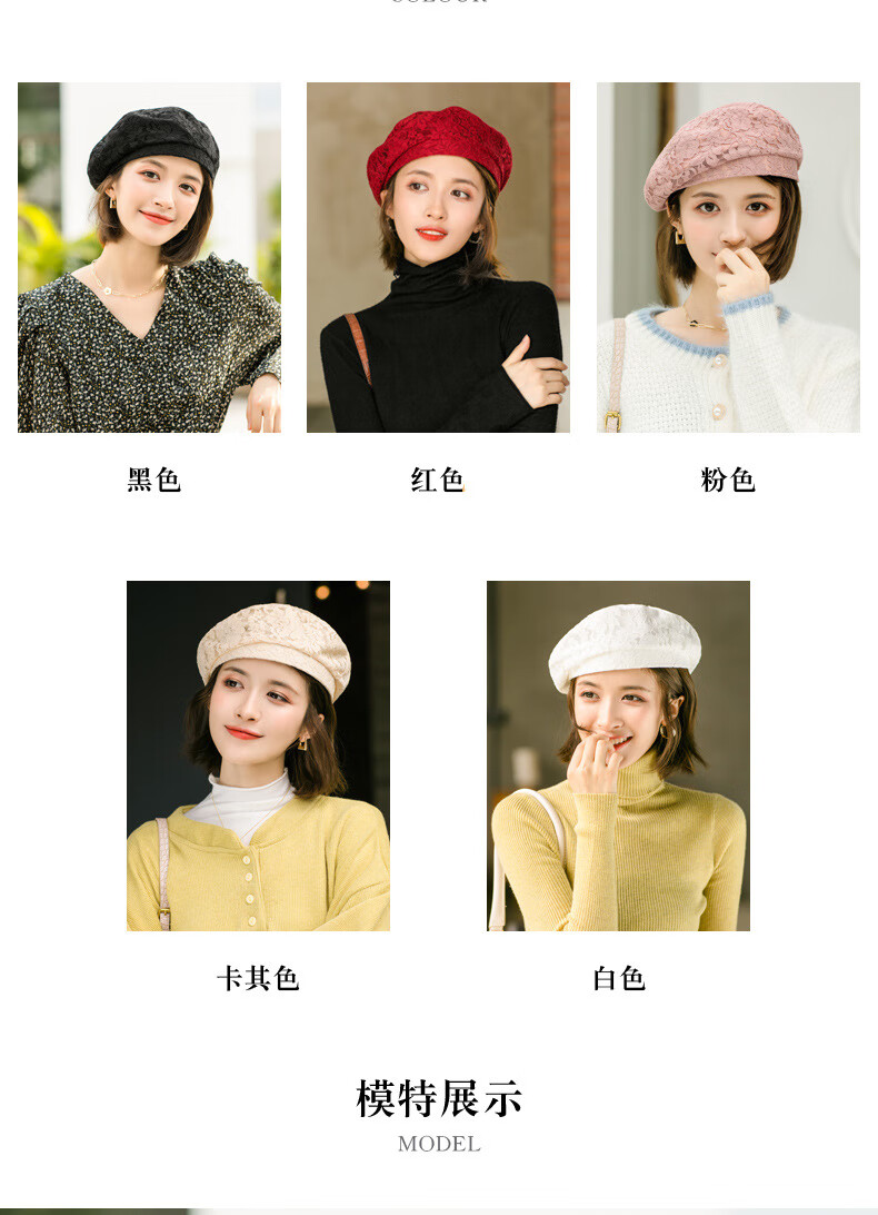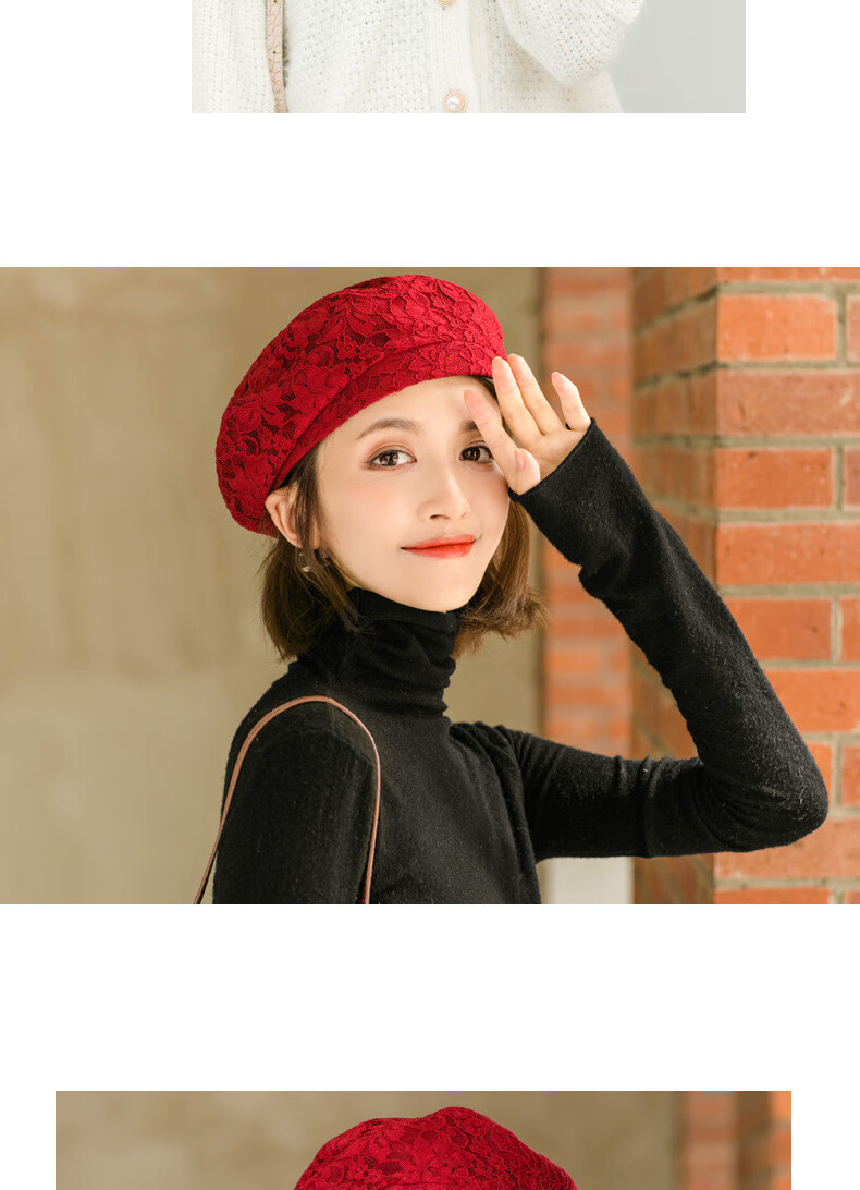 慕麦昆帽子女新款夏季薄款蕾丝贝雷帽女轻薄透气防晒帽女英伦复古八角帽 酒红色 均码