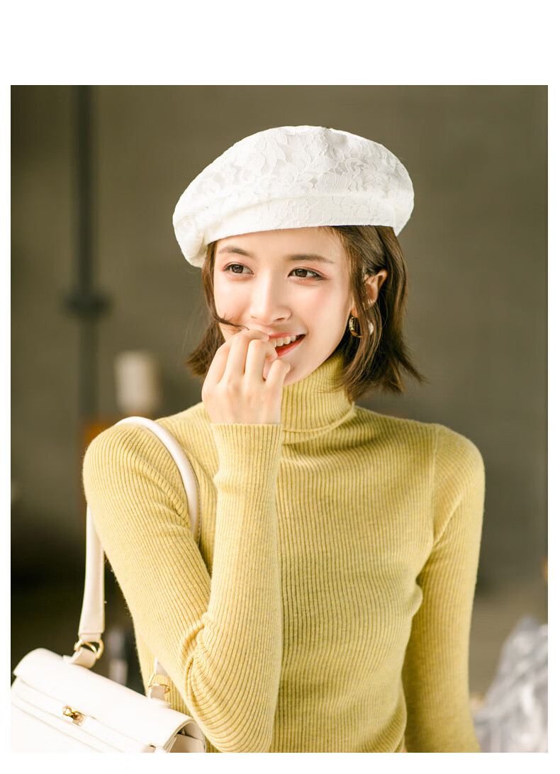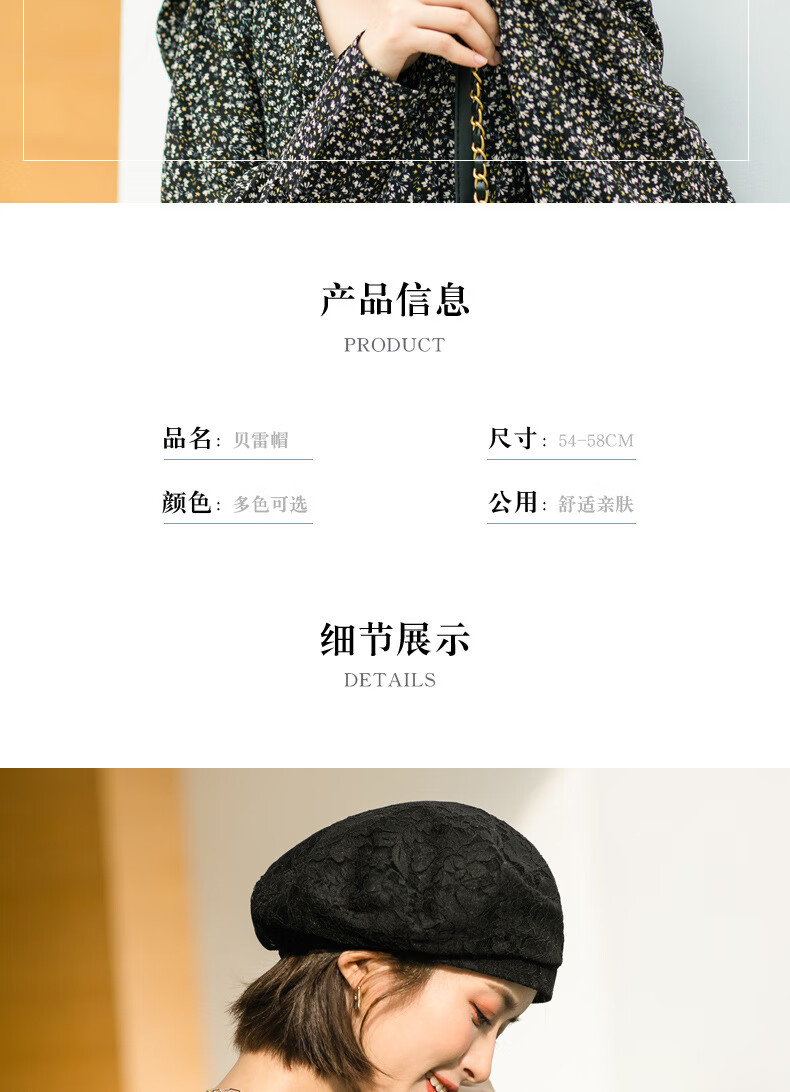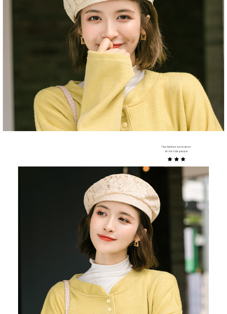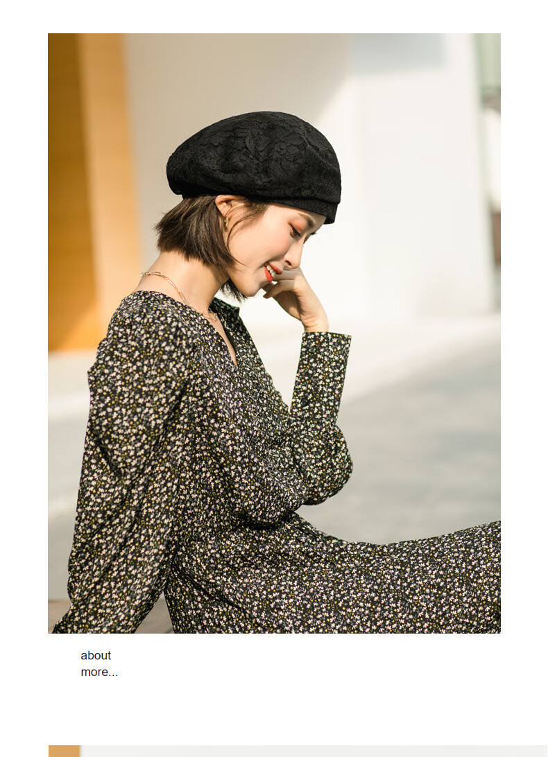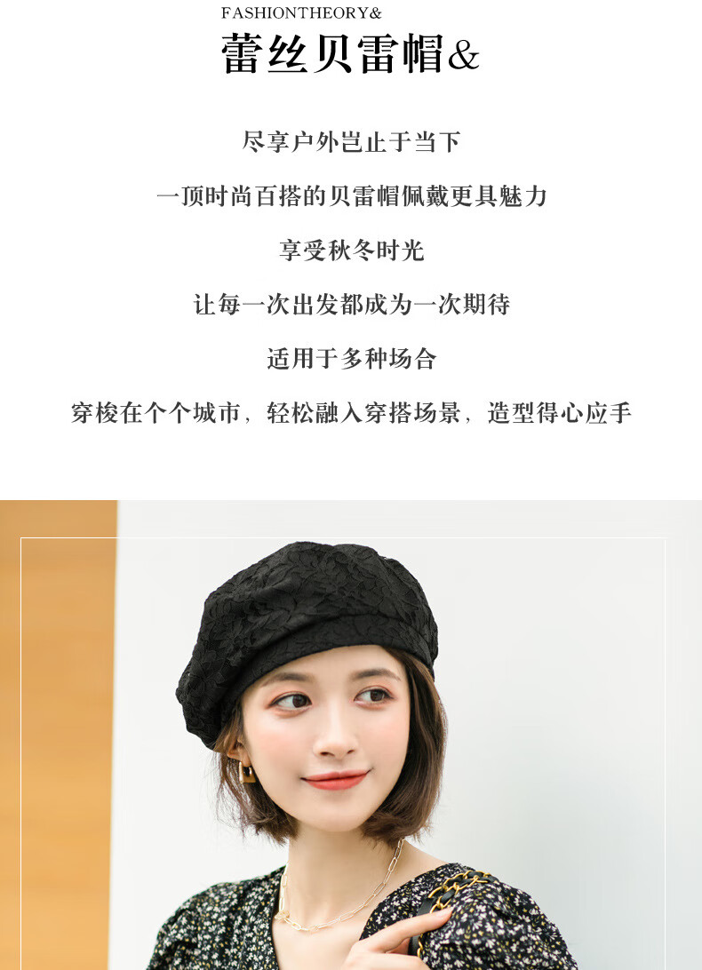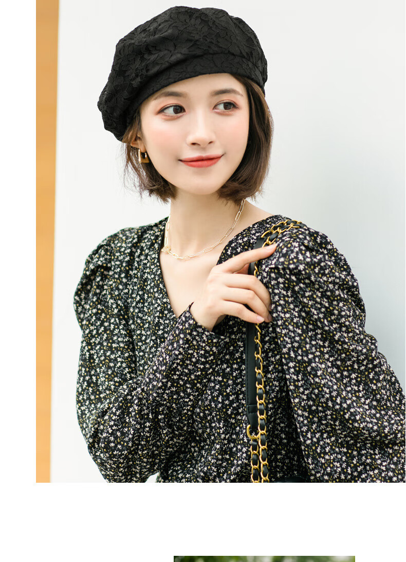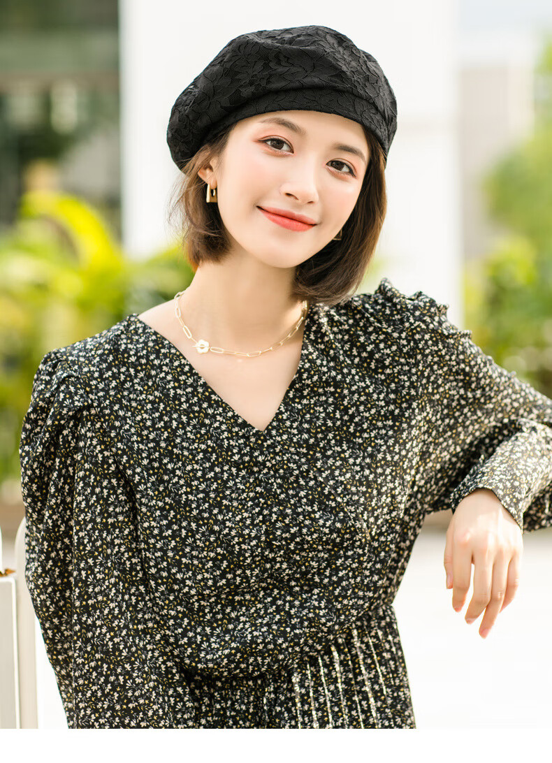 慕麦昆帽子女新款夏季薄款蕾丝贝雷帽女轻薄透气防晒帽女英伦复古八角帽 酒红色 均码