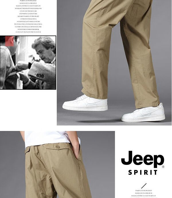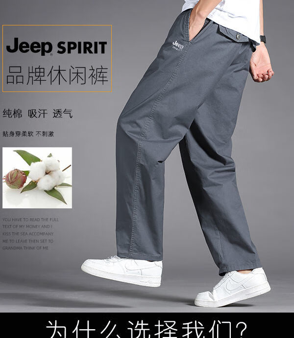 JEEP SPIRIT中老年男士休闲裤男修身棉加大码直筒男裤休闲裤夏季薄款运动裤子 JEEP-HD9201黑色 【夏季】 薄款 M 【100-120斤】