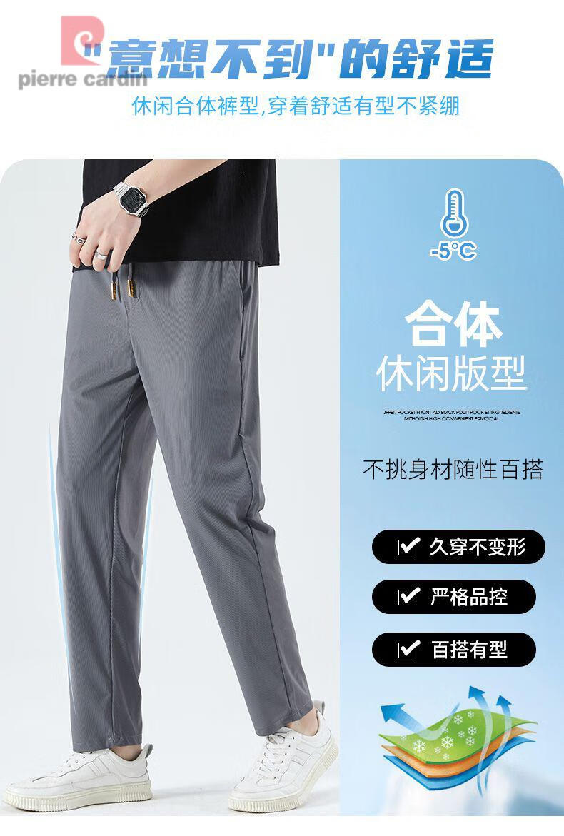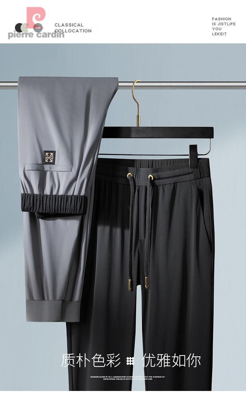 Pierre Cardin Light Luxury Ice Silk Pants Men's High Elastic Smooth Material Striped Leg Pants Summer Thin High-End European Sports Straight Pants Khaki Flat Legs 9902 XL Recommended Jin Jin is equal to 0.5 kg 130-150