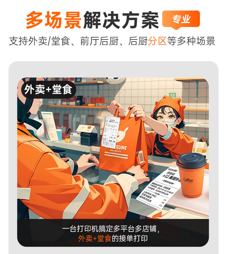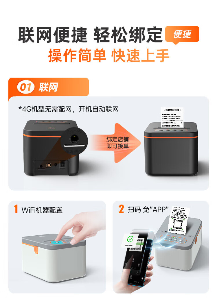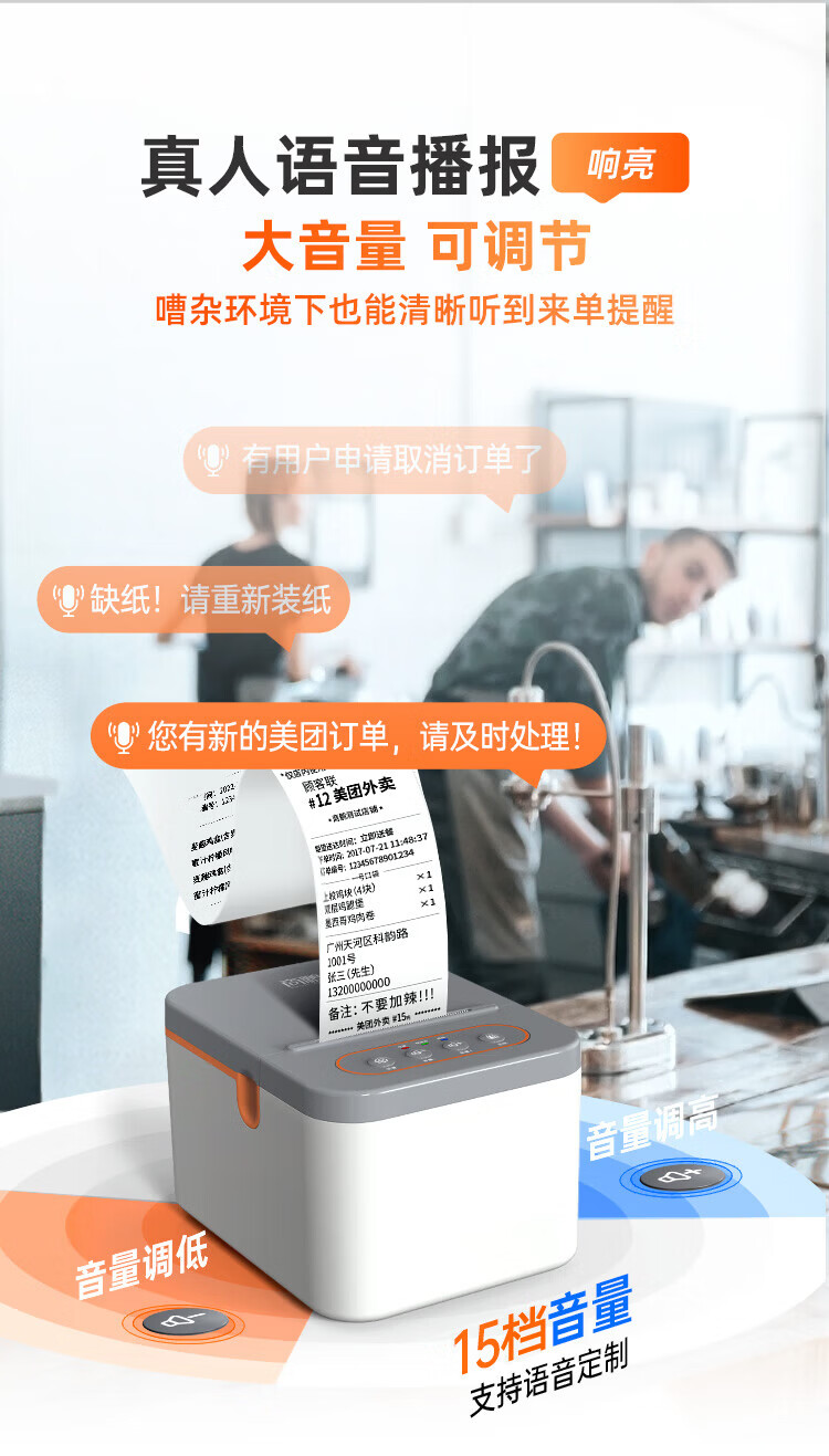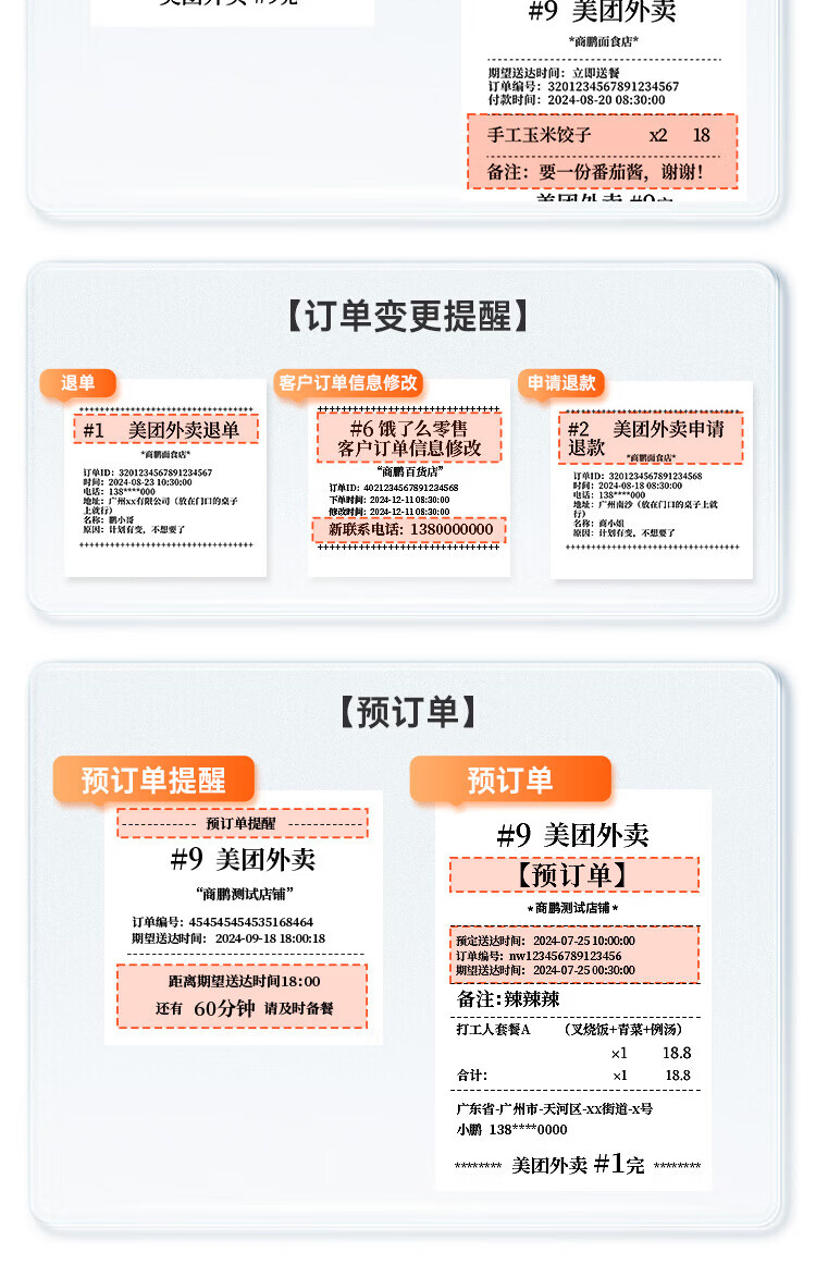 商鹏外卖打印机自动接单美团外卖闪购饿了么打印机4gWiFi蓝牙热敏小票机云打印机出餐一体机出餐宝无线 【双频WiFi+真人语音】