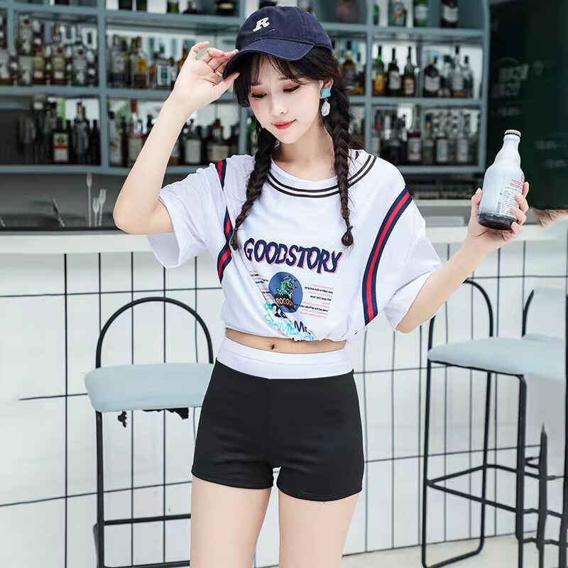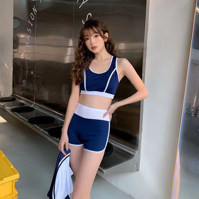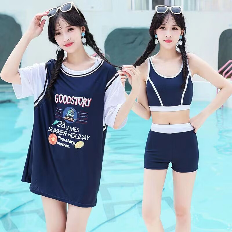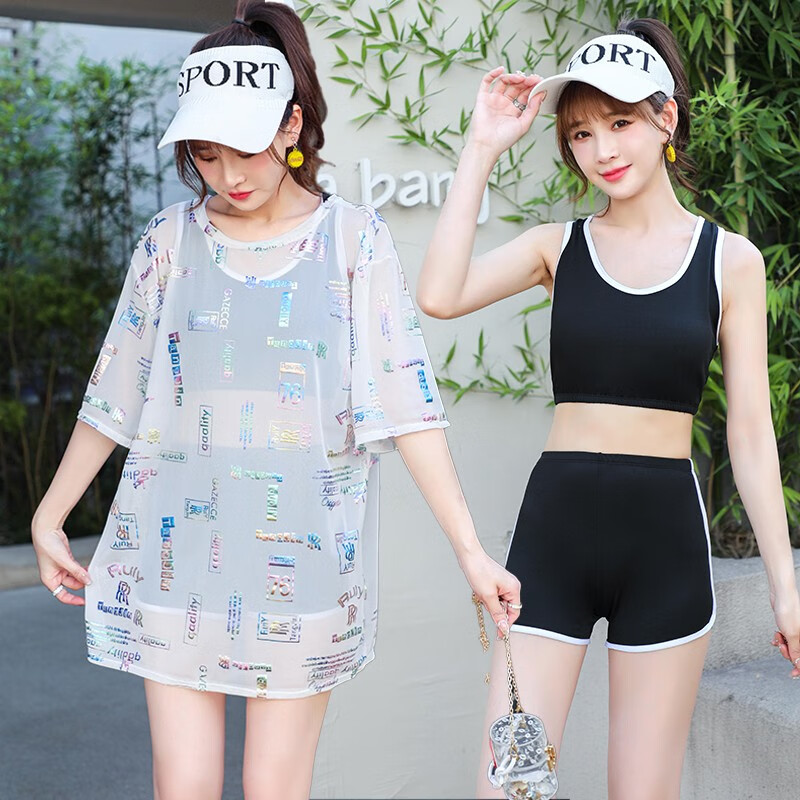 绘自然游泳衣女士分体三件套保守遮肚显瘦运动款学生胖mm  傲6625三件套-黑色 2XL 建议115-130斤