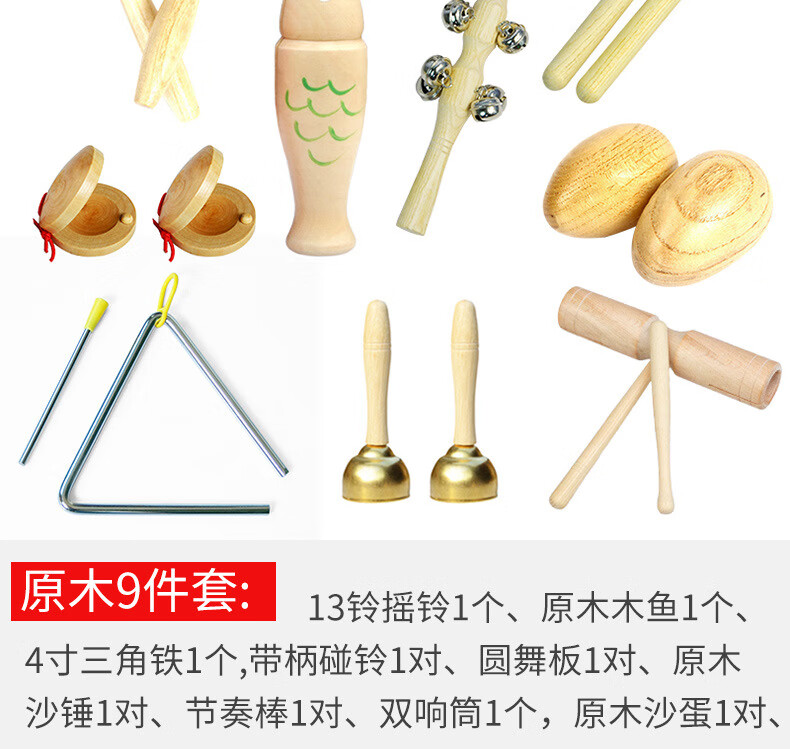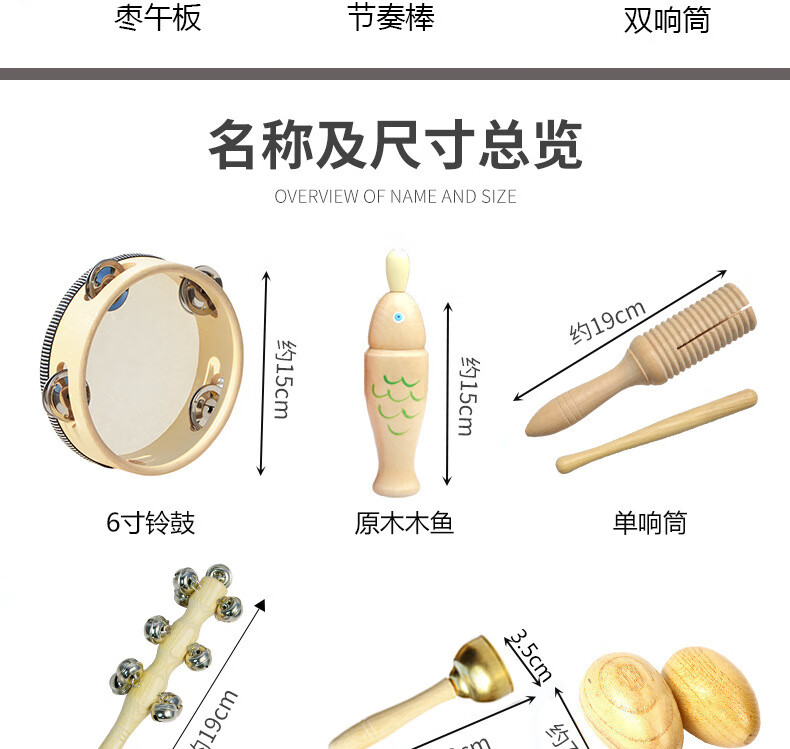 Chenzhiche Kindergarten Log Orff Juego de percusión Juguete para niños Tablero de Anillo de Campana Martillo de Arena Tambor de Mano Doble Anillo 15 cm Tambor de Cuero Blanco Transparente