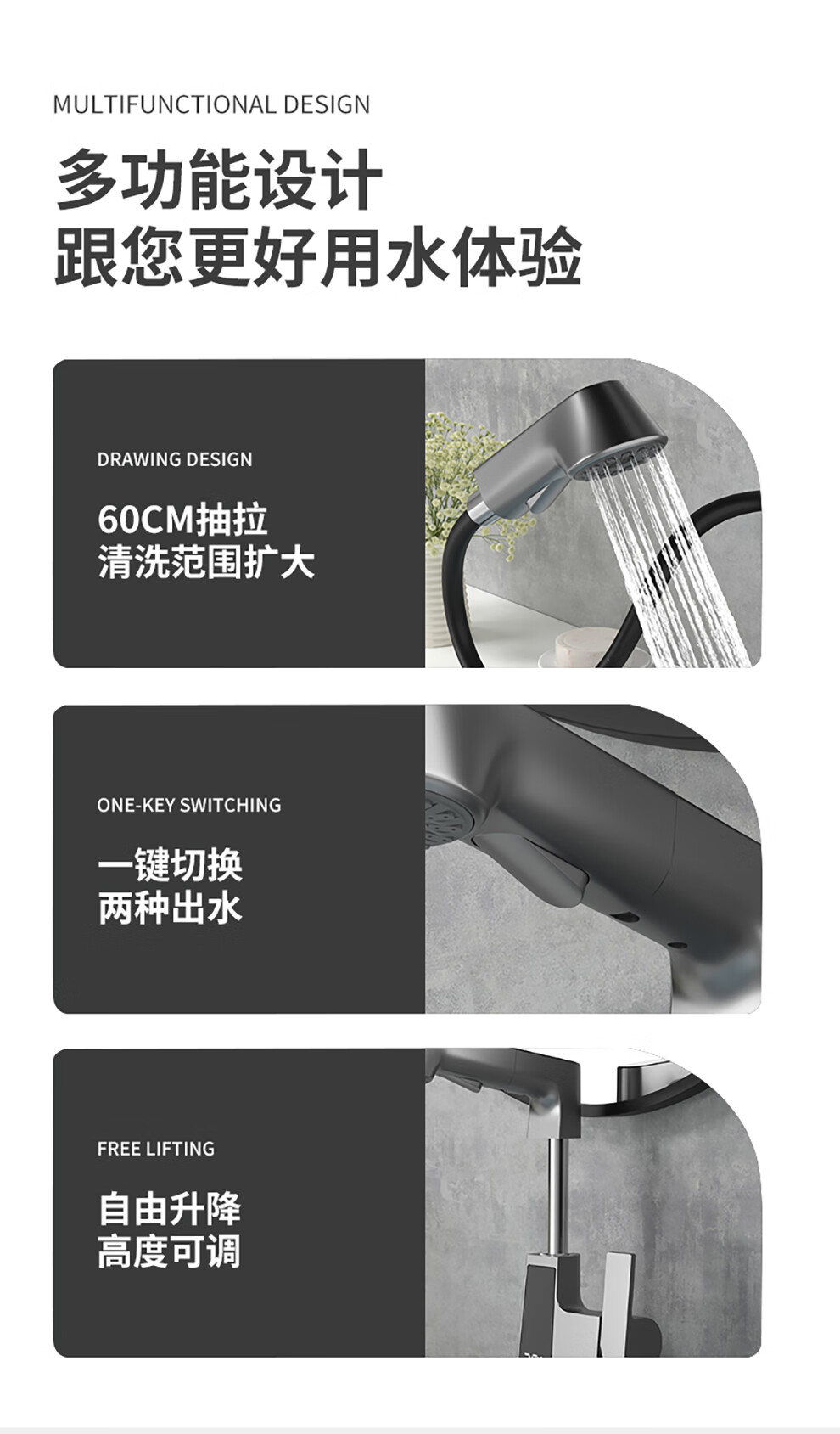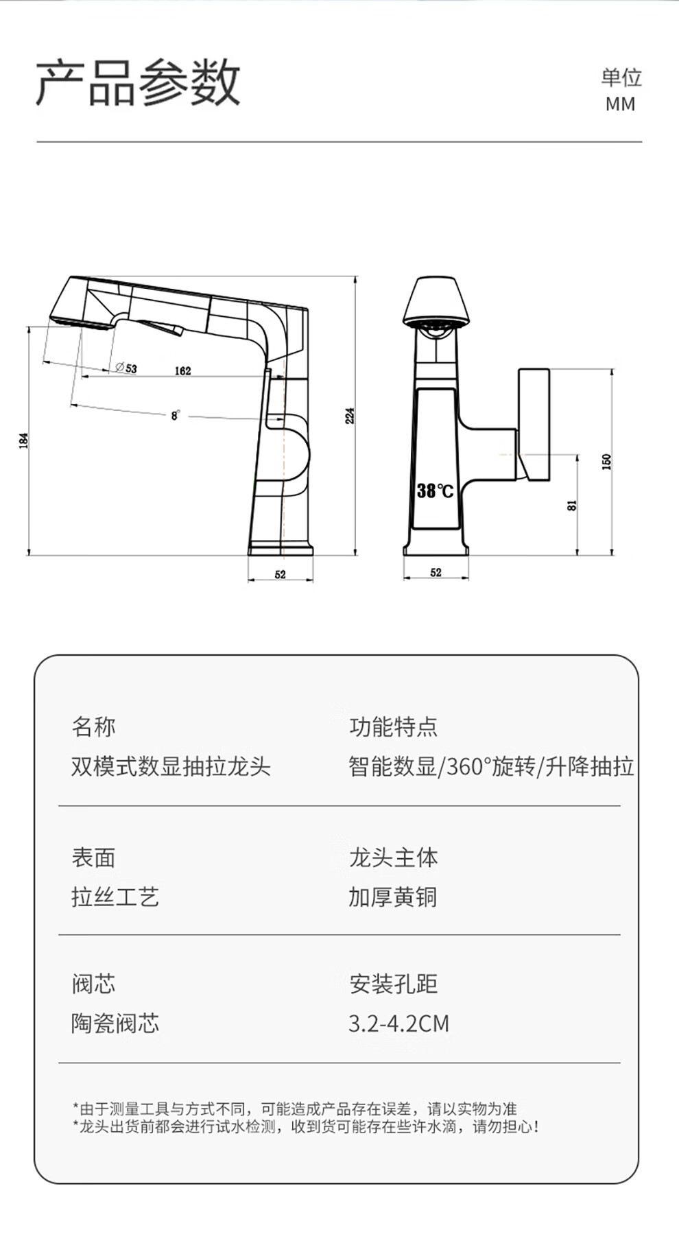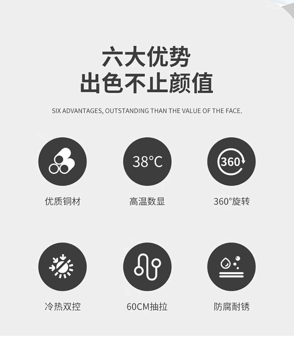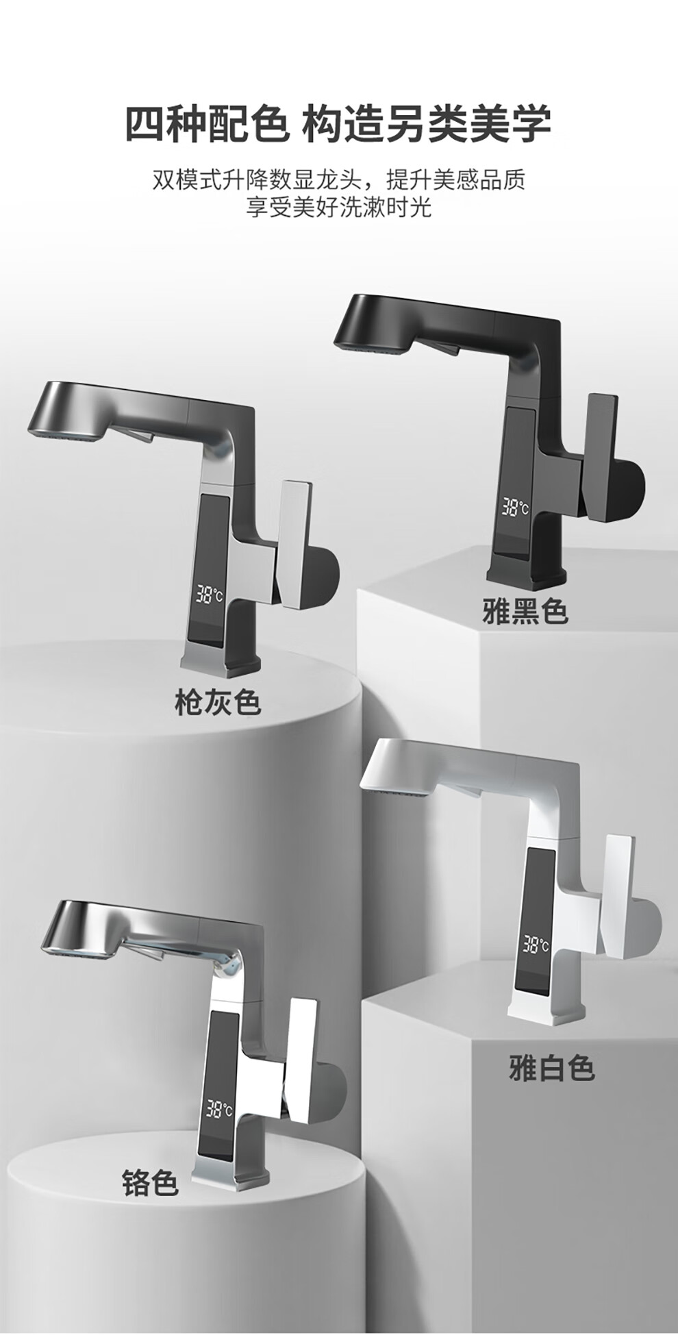 RTO fine copper basin faucet pull-out 360 rotating faucet bathroom basin faucet hot and cold dual-use faucet gray TLS5012 hot and cold digital display lifting pull-out nationwide joint warranty