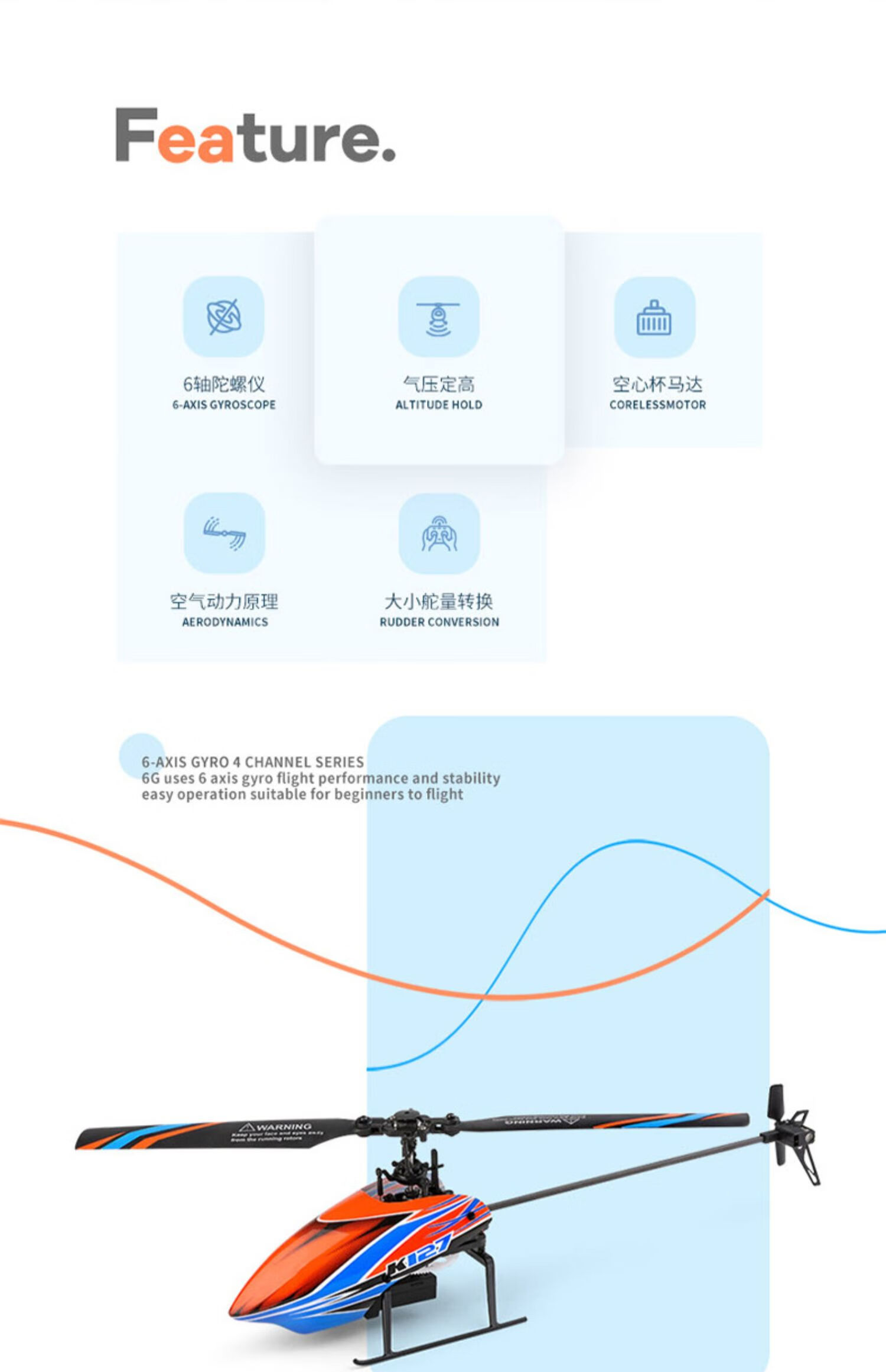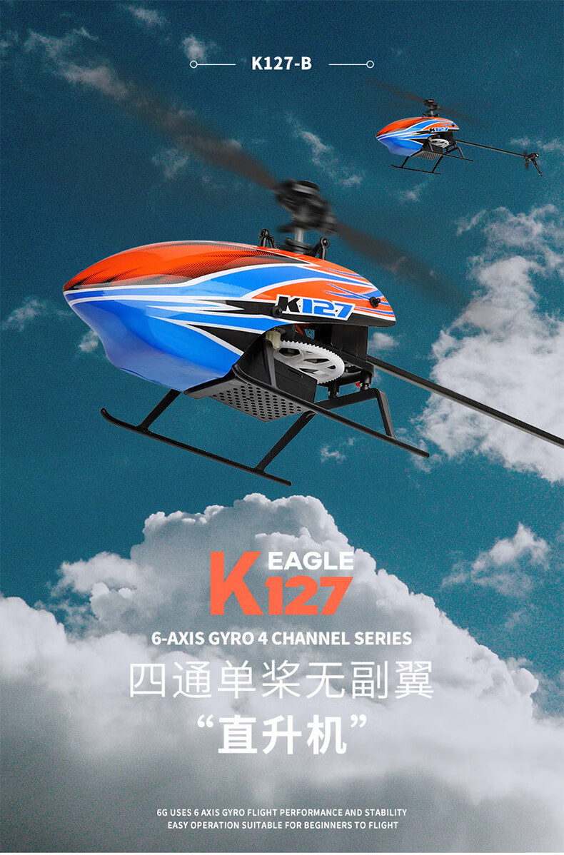 Weili Star Weili K127 Helicóptero de una sola hélice de cuatro canales sin Flybars y helicóptero de altura fija Modelo de avión de control remoto para niños Modelo de avión básico K127 Helicóptero de altura fija de una sola hélice de cuatro canales Sandian - 3 baterías