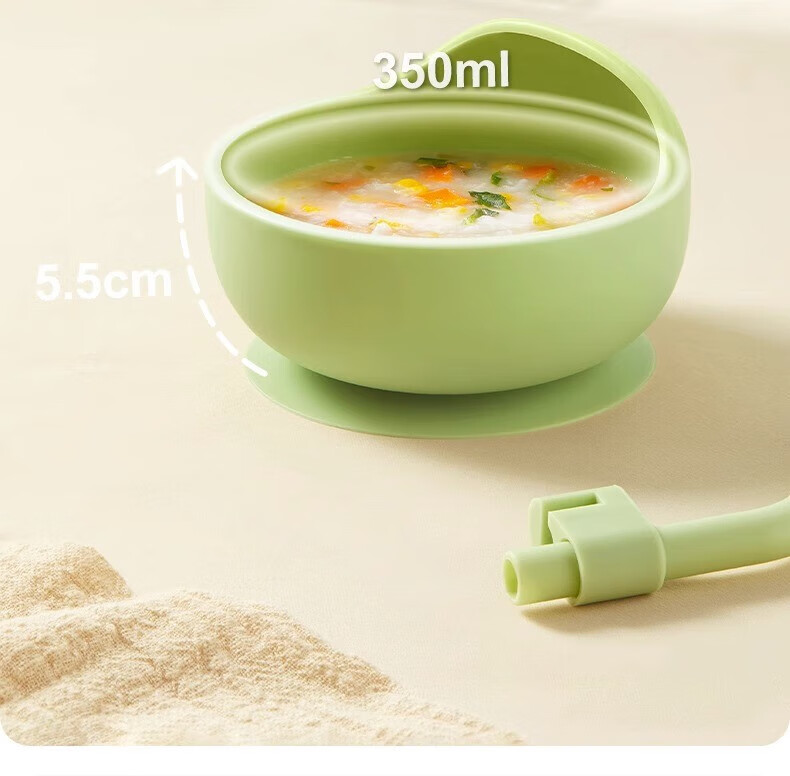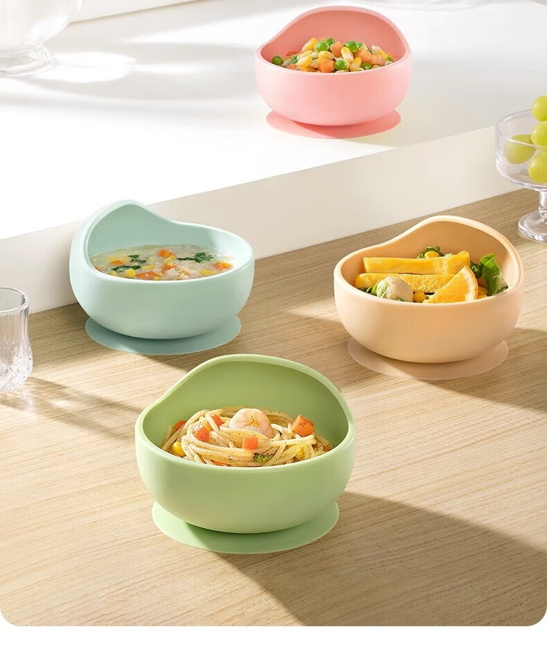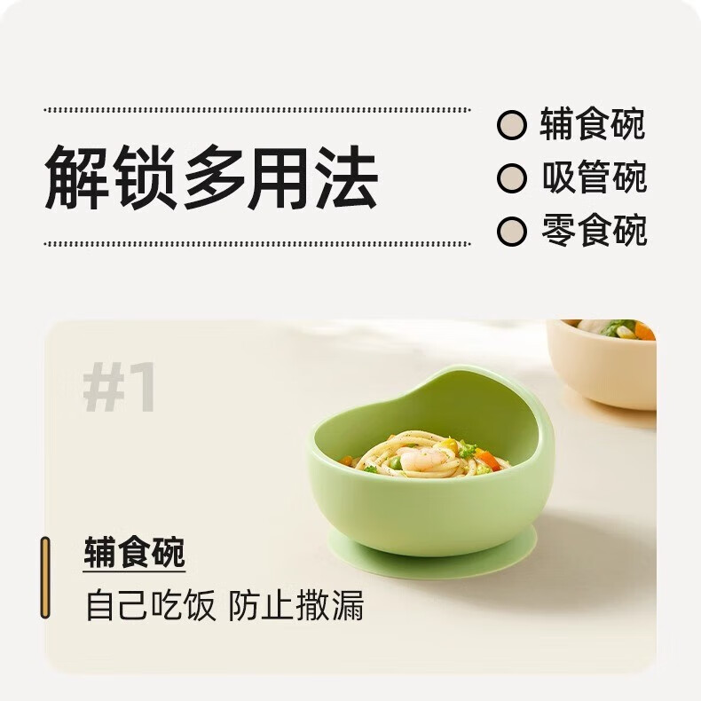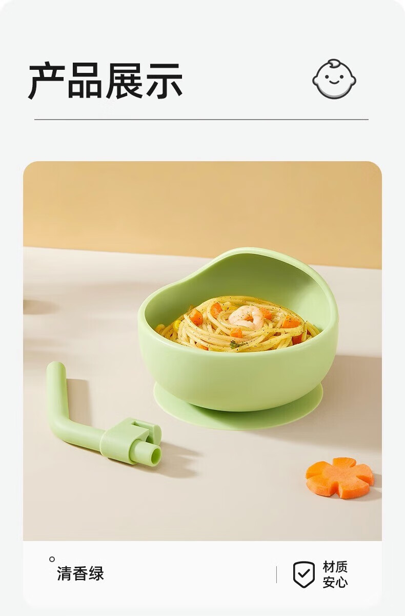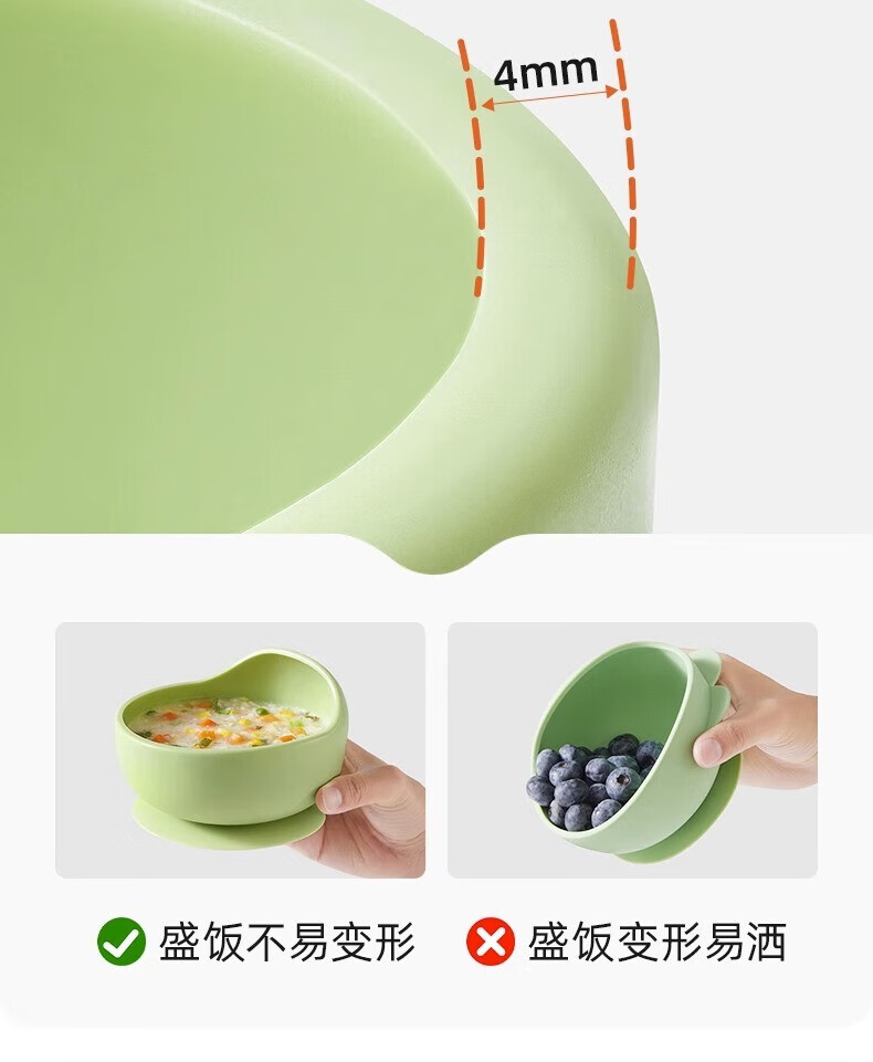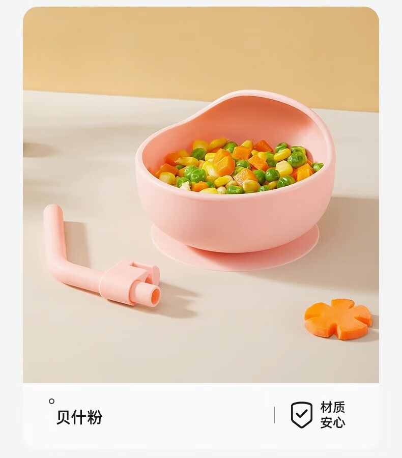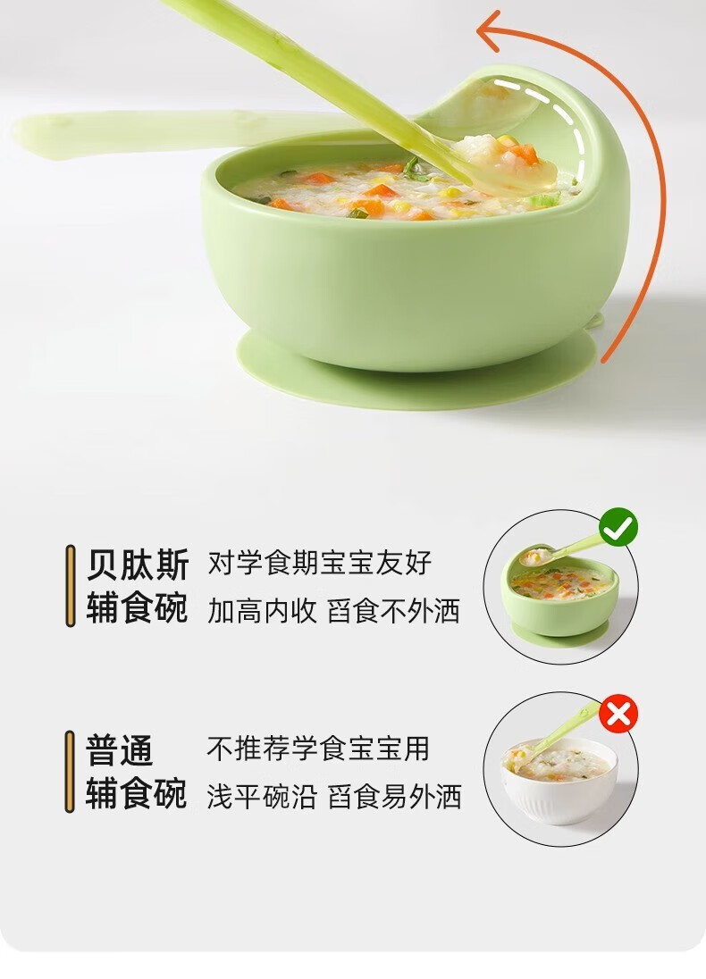 贝肽斯辅食碗婴儿宝宝餐盘硅胶碗勺套装学吃饭训练吸盘碗防摔儿童餐具 贝尔黄 硅胶辅食碗