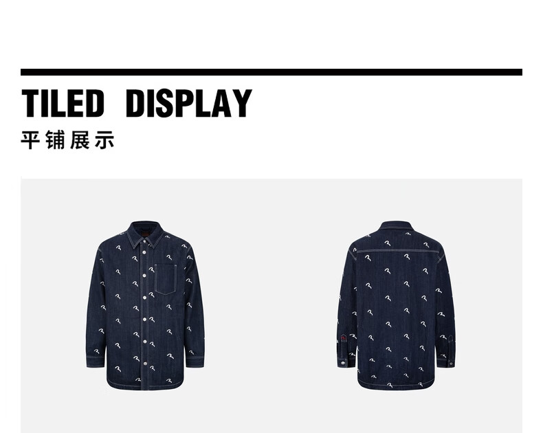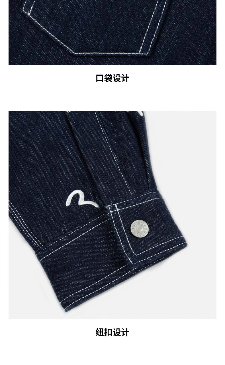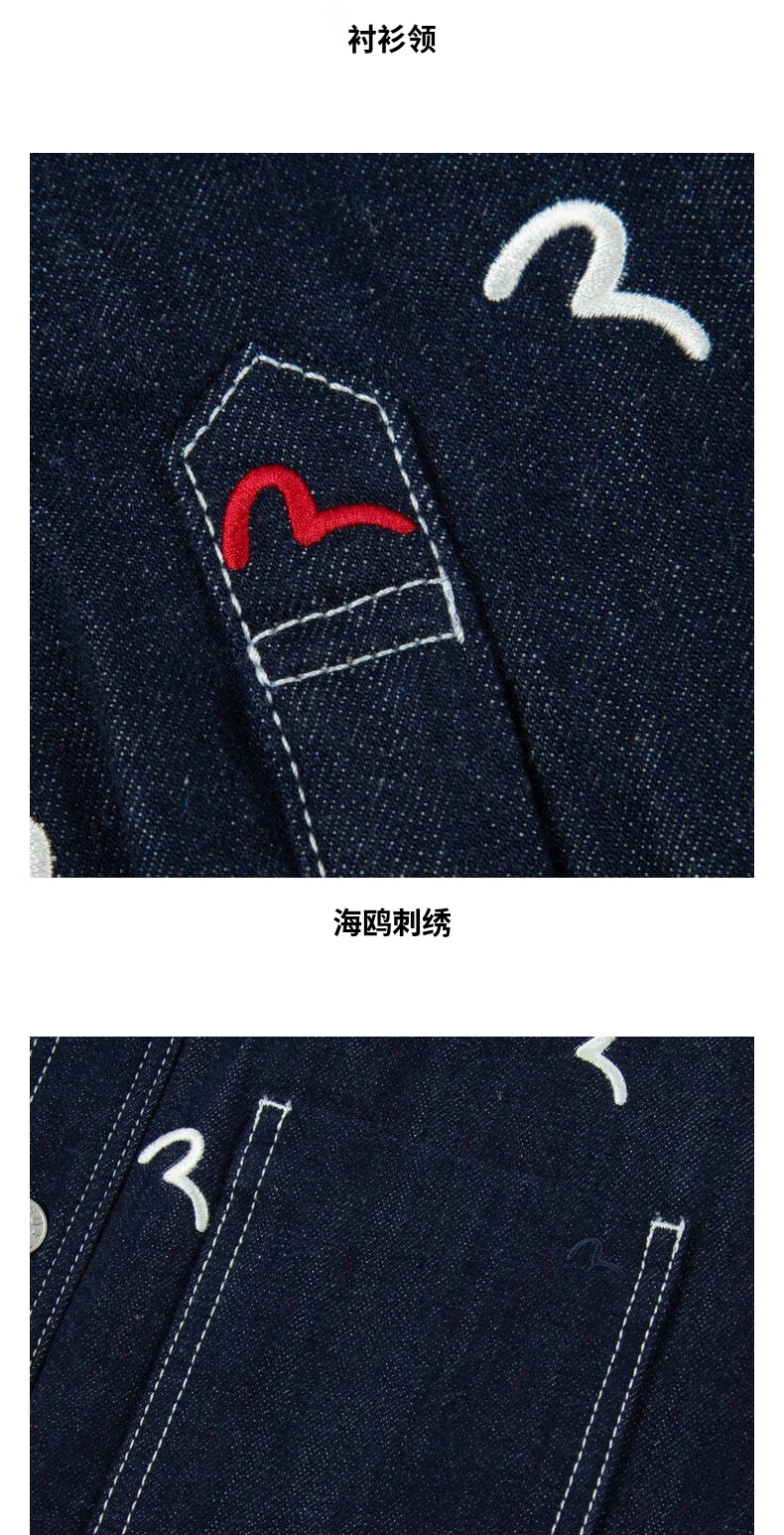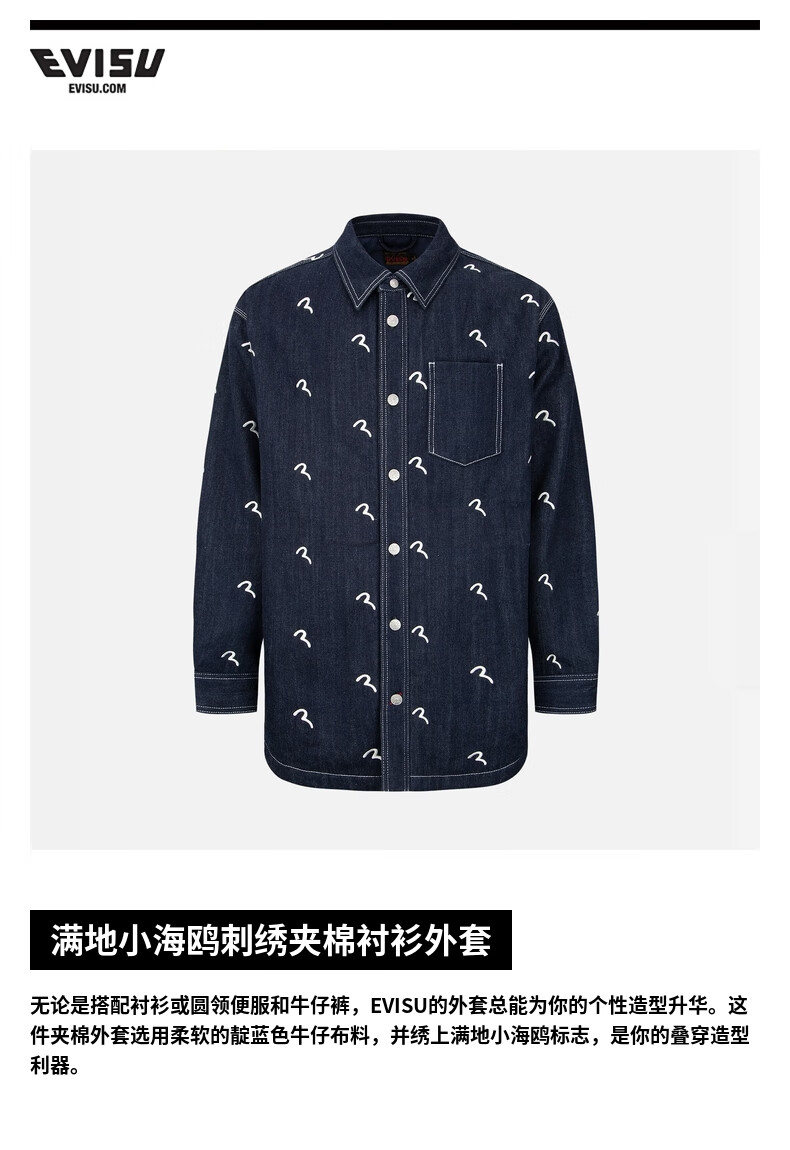 EVISU men's all-over seagull print quilted versatile denim shirt jacket 2EAHTM2SJ723OSDN denim blue M