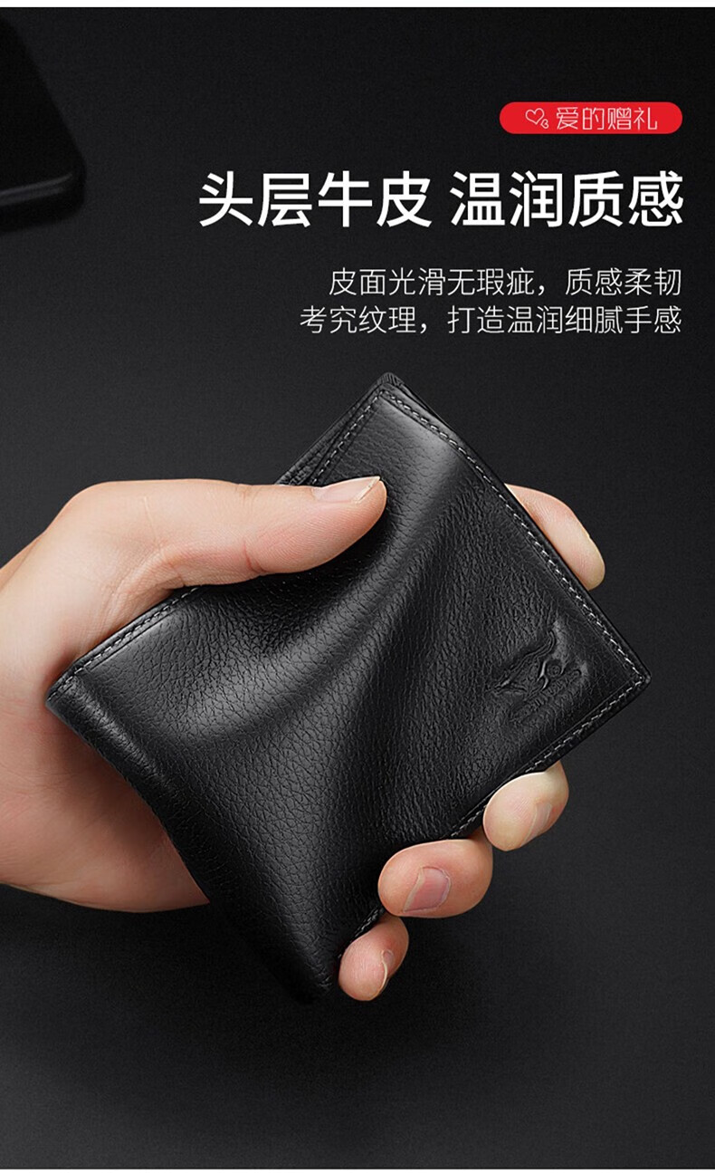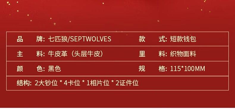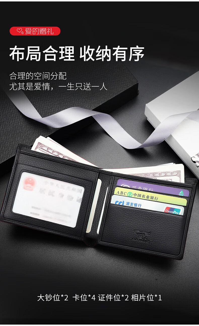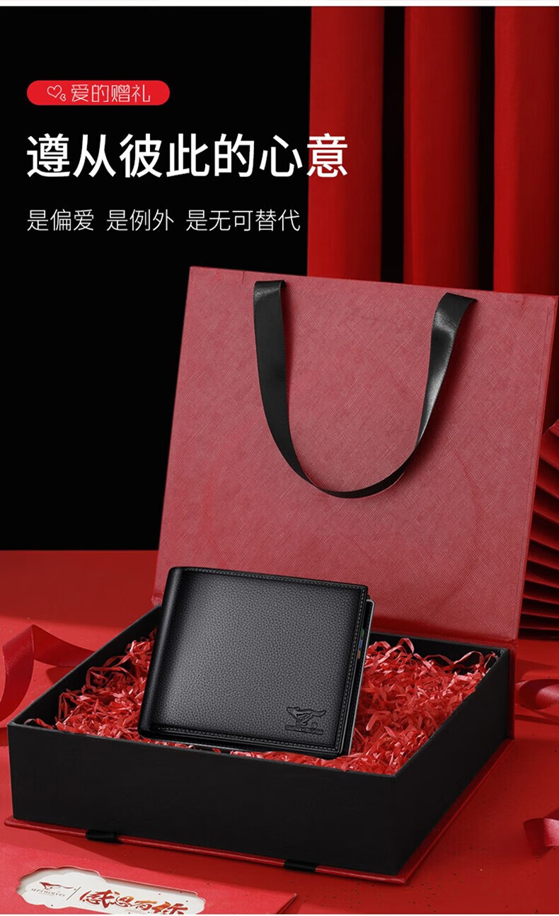 七匹狼(SEPTWOLVES)钱包男真牛皮男士皮夹钱夹短款高档实用生日礼物送男友老公老公 时尚黑色(情人节限定爱心礼盒)