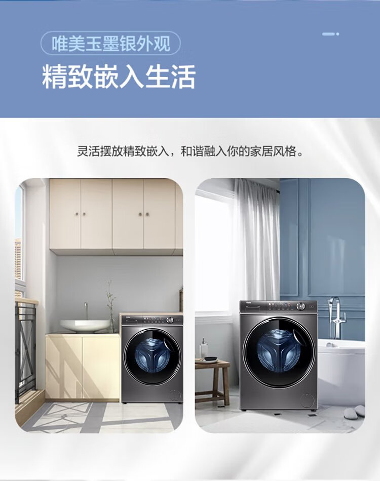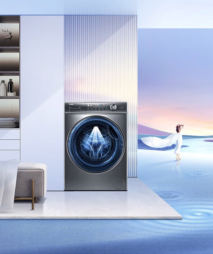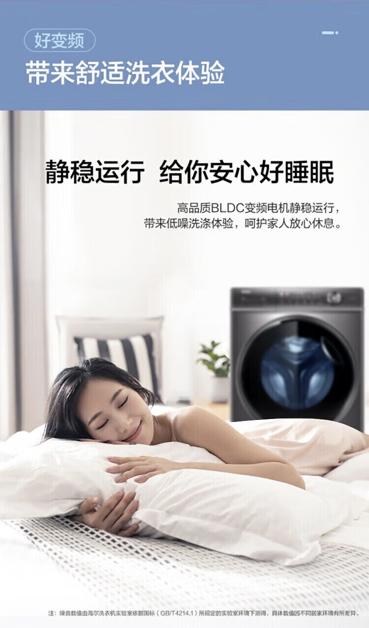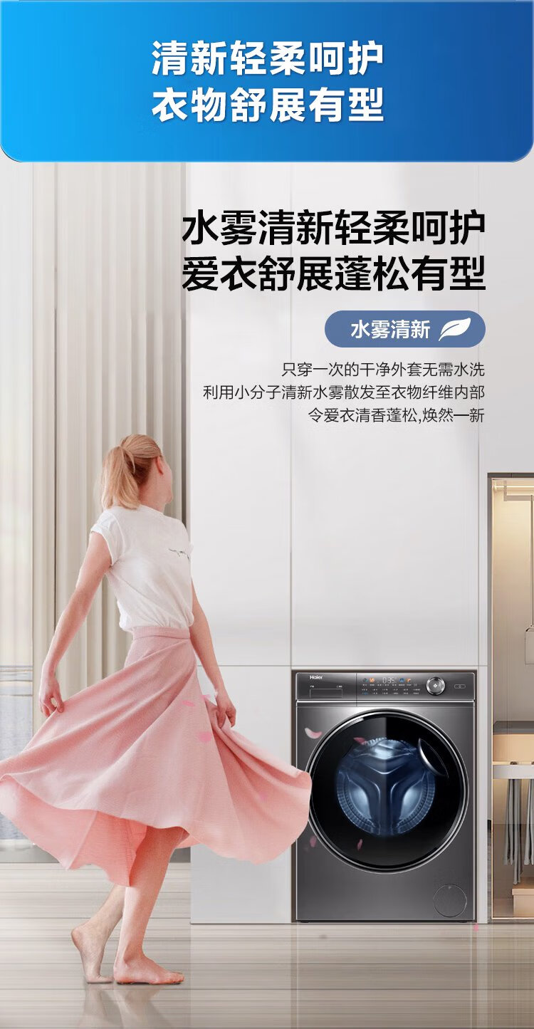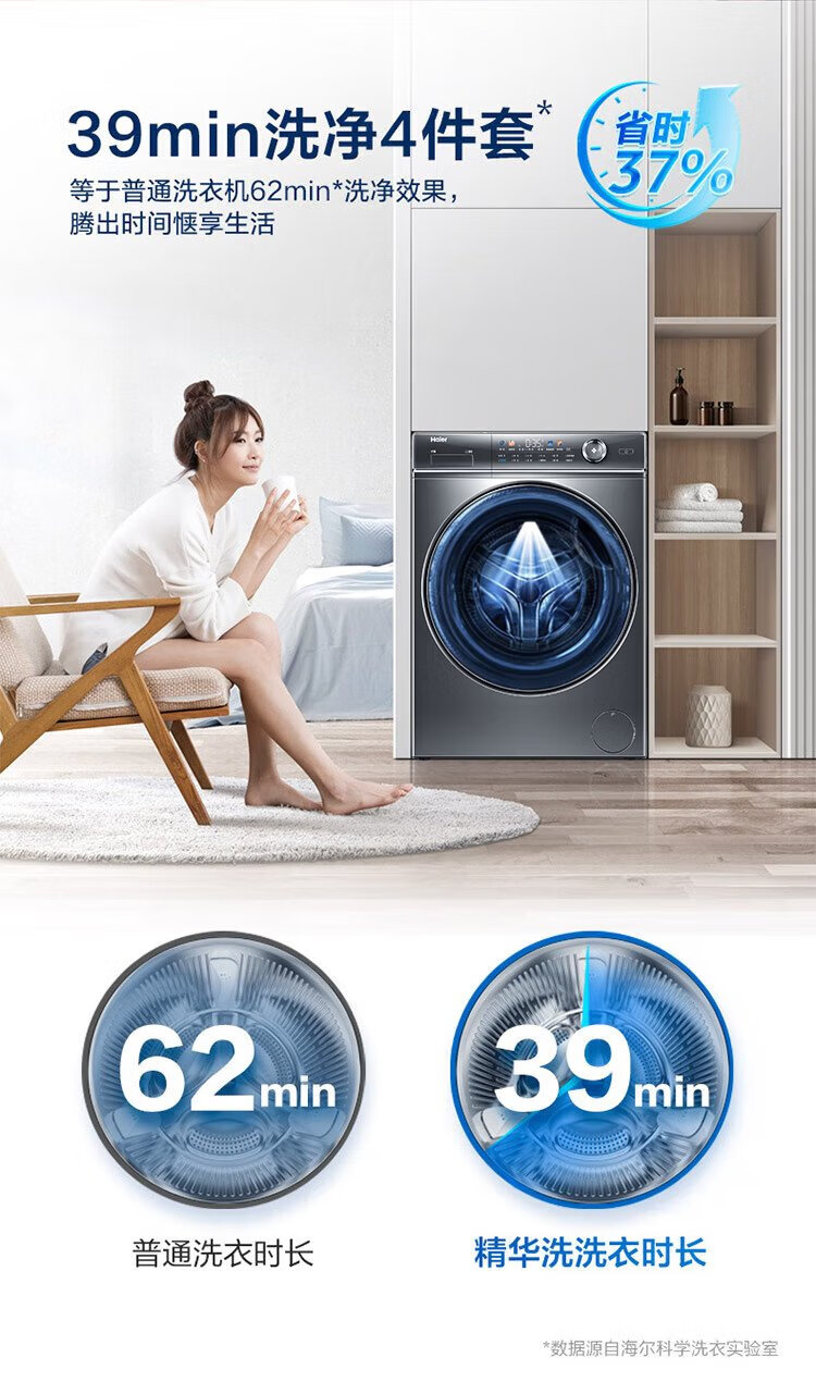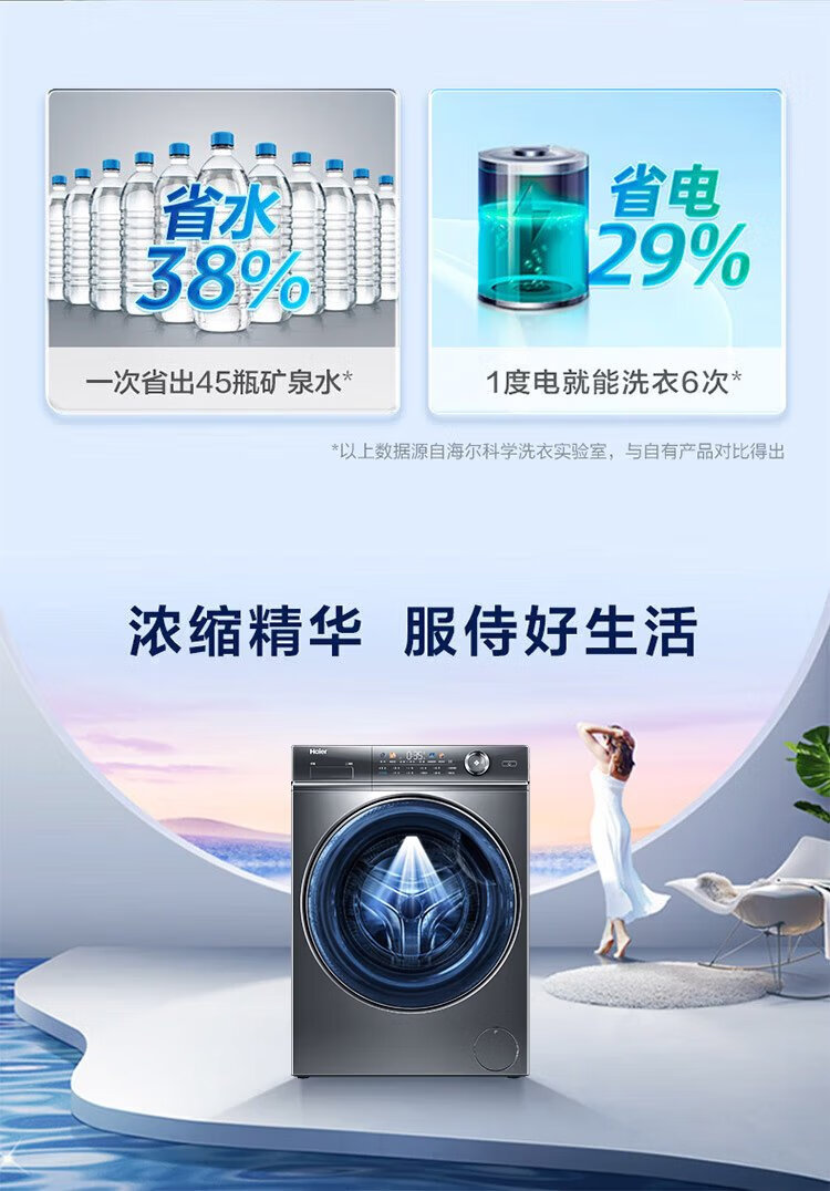海尔(Haier)【14126升级款精华洗】纤美超薄洗衣机10KG全自动超薄滚筒洗衣机变频智能投放525mm大筒径双喷淋 14326洗烘【升级精华洗2.0】全触控炫彩大屏