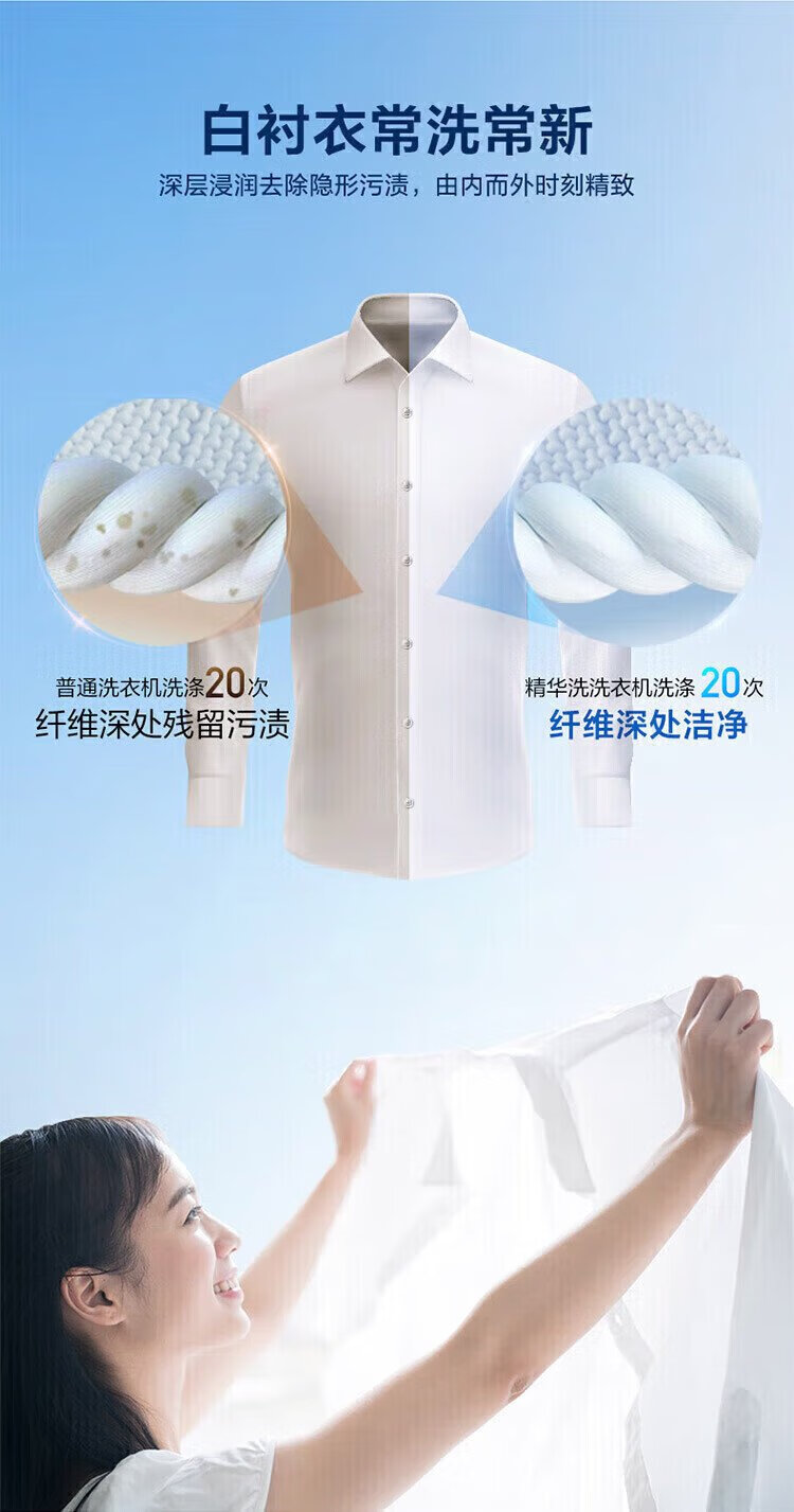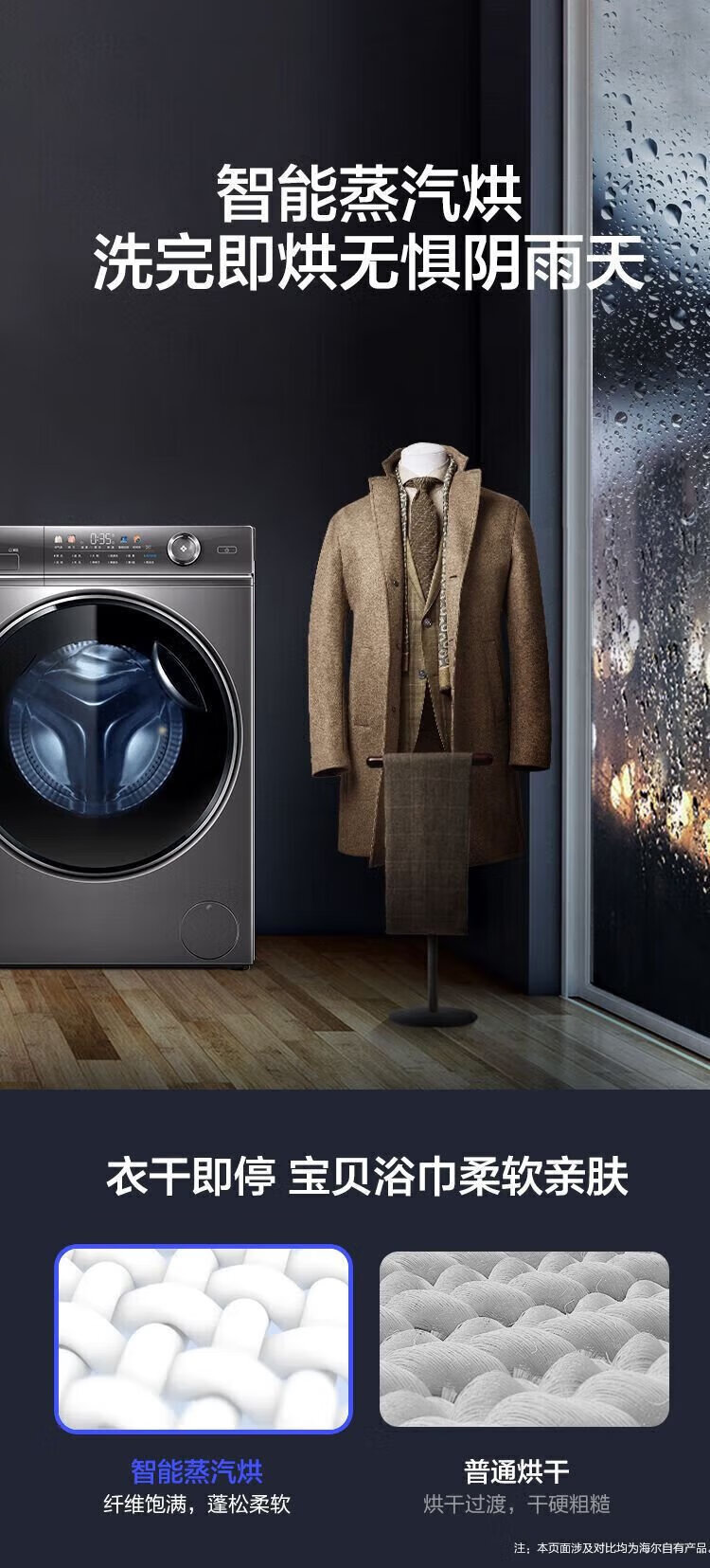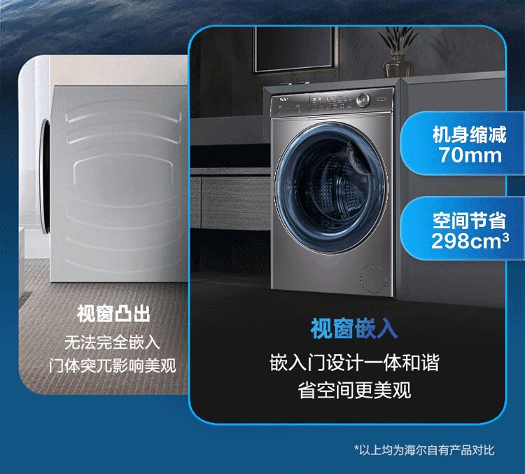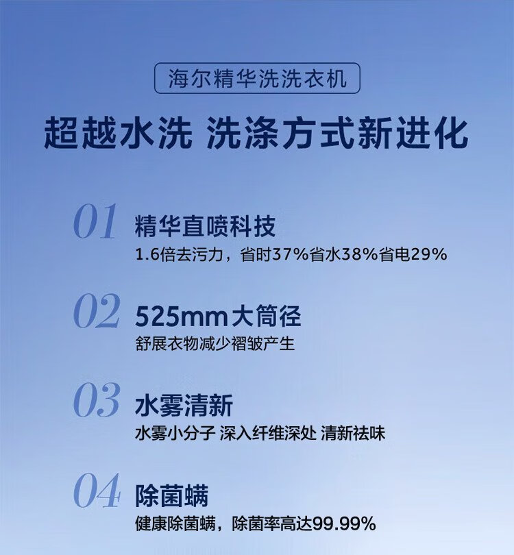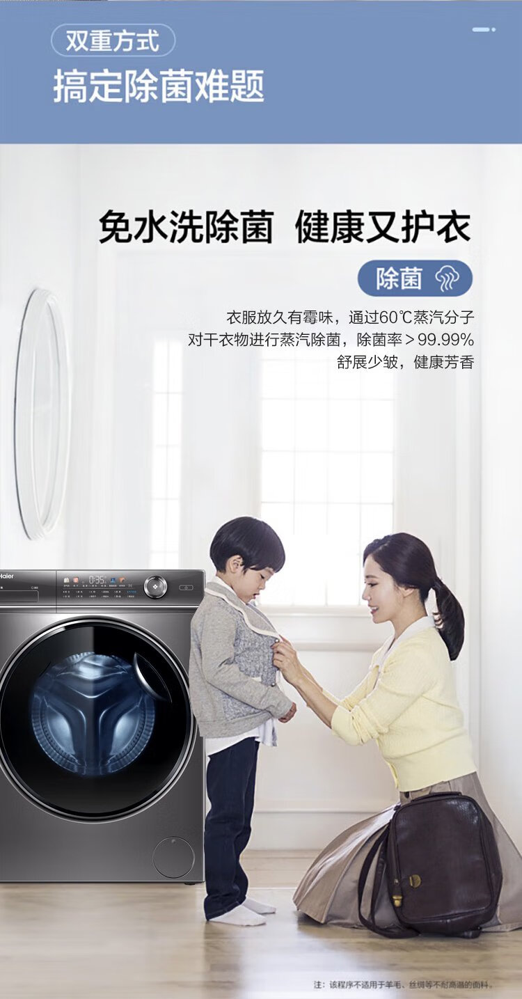 海尔(Haier)【14126升级款精华洗】纤美超薄洗衣机10KG全自动超薄滚筒洗衣机变频智能投放525mm大筒径双喷淋 14326洗烘【升级精华洗2.0】全触控炫彩大屏
