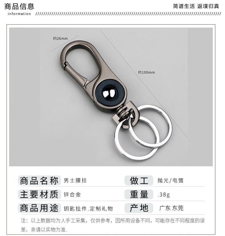 Pengjing porte-clés de voiture pour hommes simple personnalisé porte-clés d'affaires pendentif haut de gamme créatif taille en métal suspendu boucle anneau pendentif couleur chrome