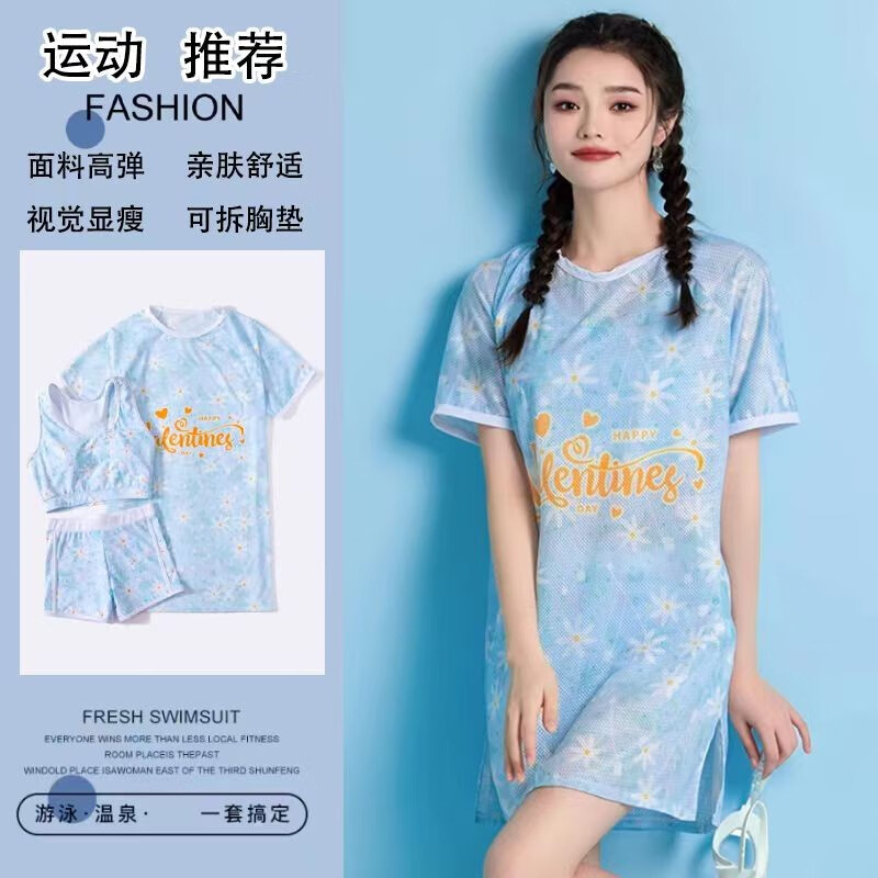 Qianquyun traje de baño para mujer conjunto dividido de tres piezas talla grande conservador que cubre el vientre boxeador adelgazante estilo deportivo estudiante grasa mm aguas termales Ao 6625 conjunto de tres piezas - blanco 2XL recomendado 115-130 Jin Jin equivale a 0,5 kg