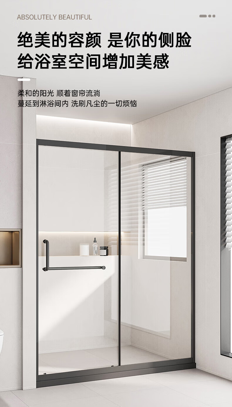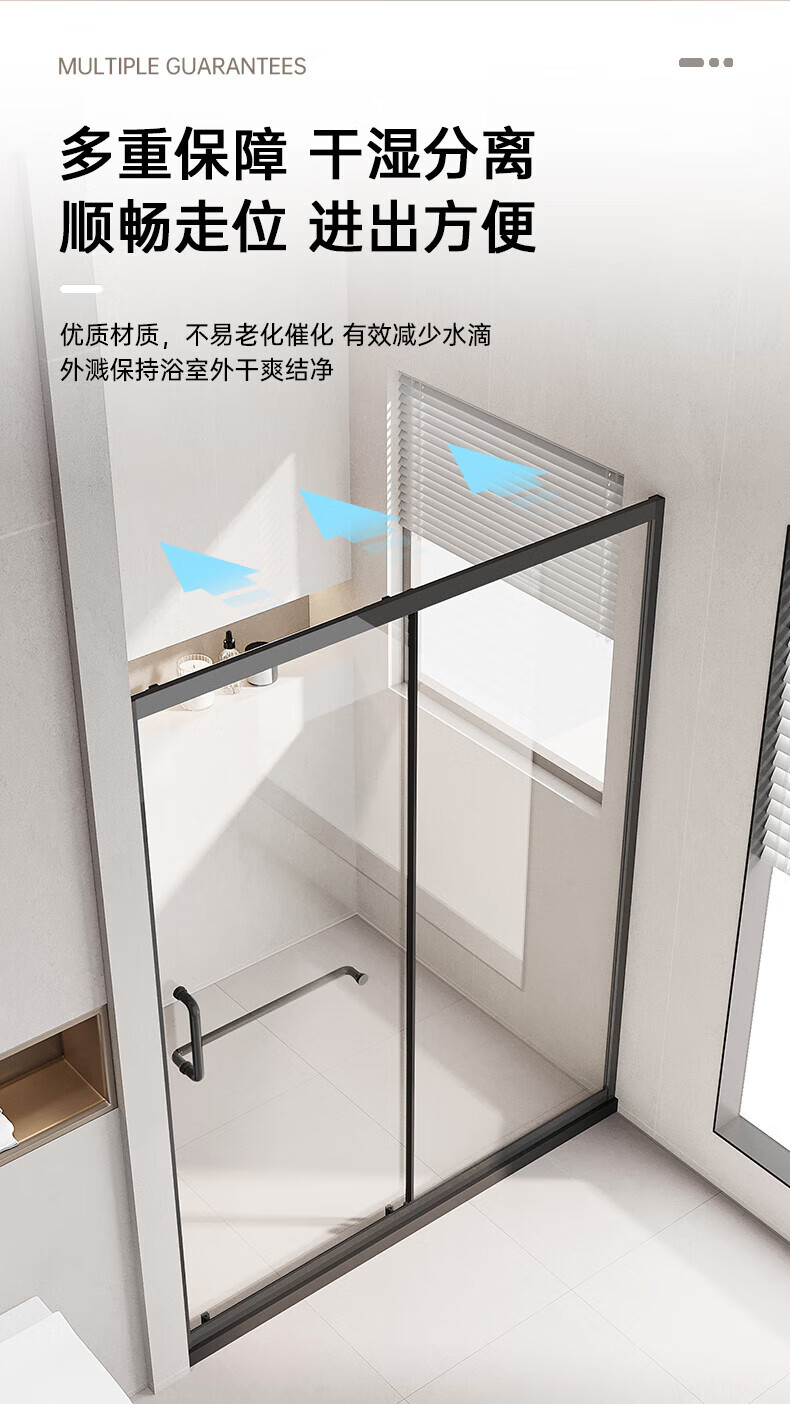 箭牌(ARROW)淋浴房隔断干湿分离玻璃隔断浴房定制黑色一字型简易不锈钢沐浴房 [枪灰] 1.7-1.79m 不锈钢【2694】