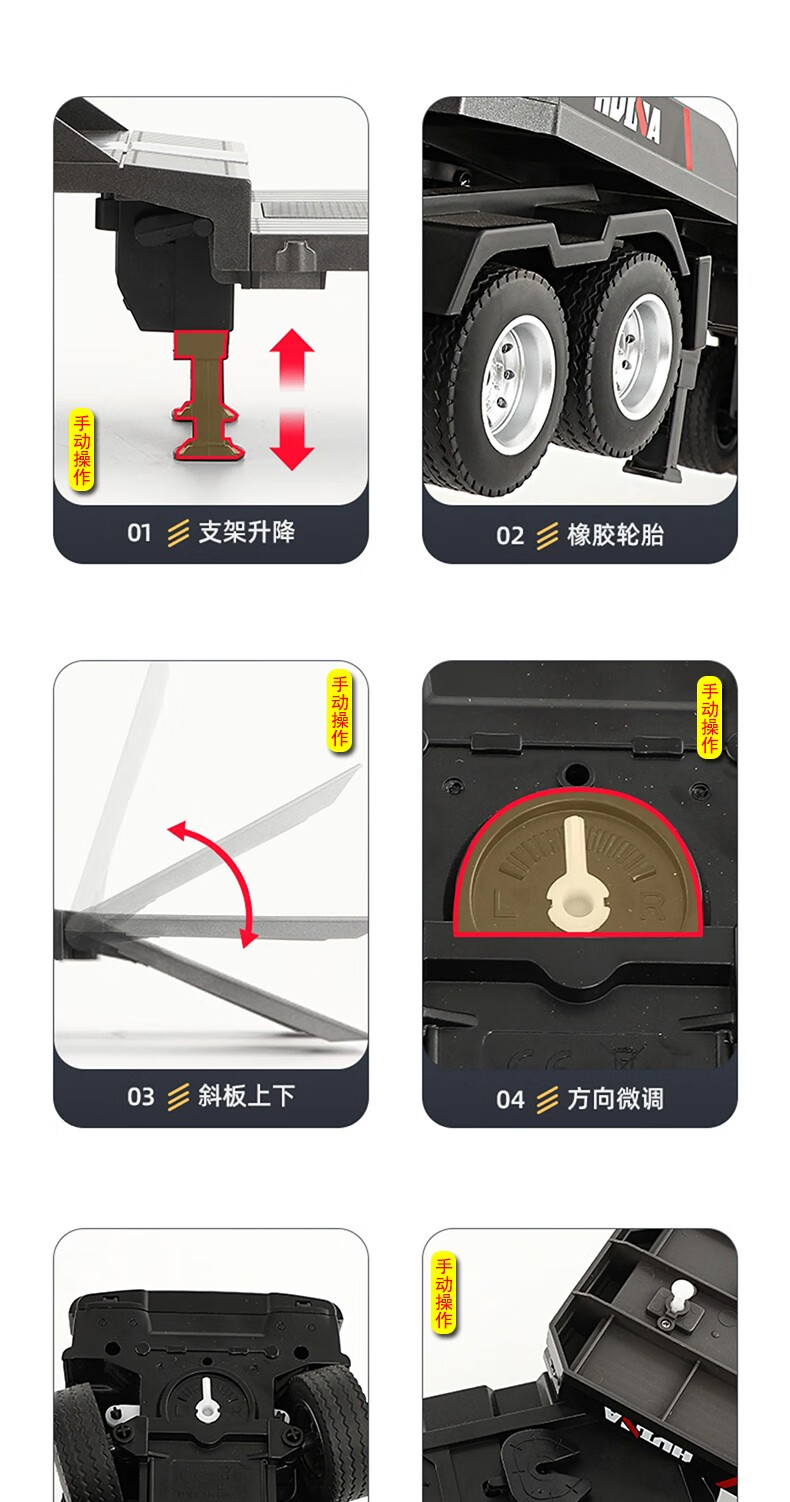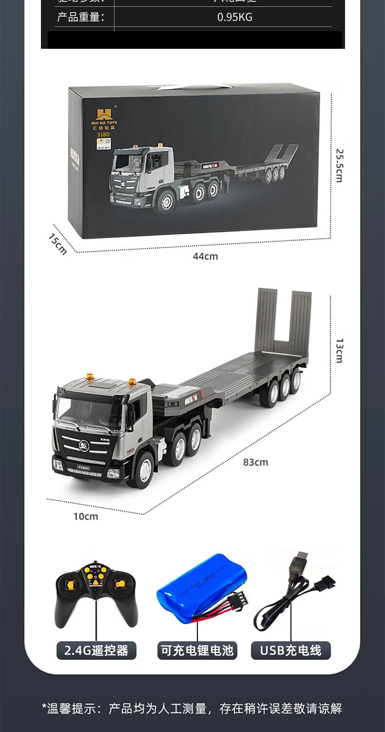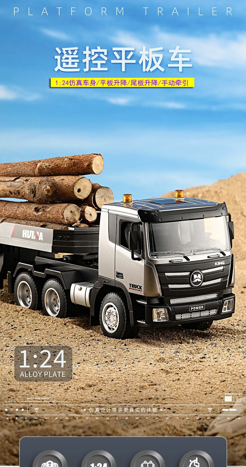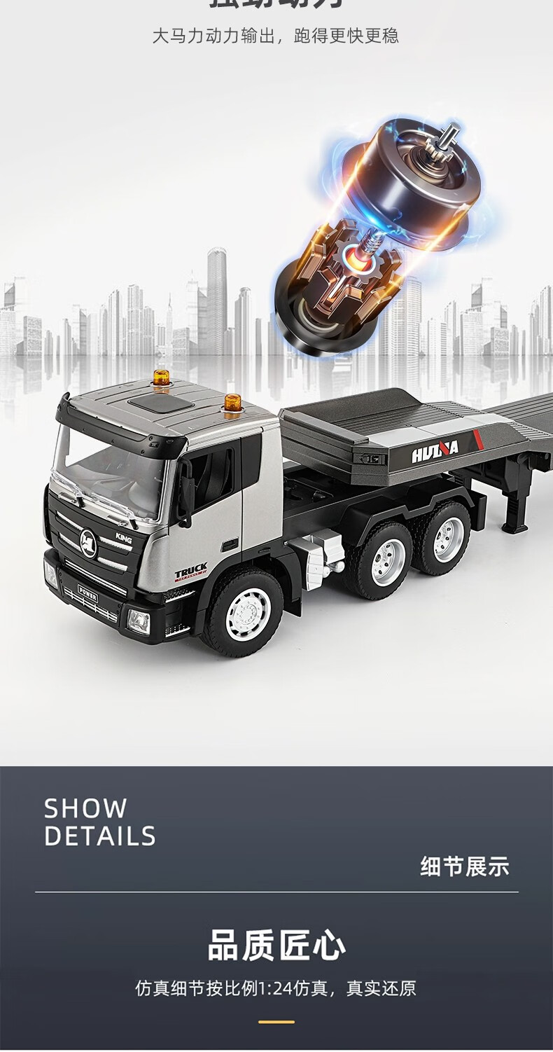 汇纳模型汇纳遥控平板拖车仿真半挂拖头运输车儿童工程车男孩电动卡车玩具 遥控平板车(二组充电电池)