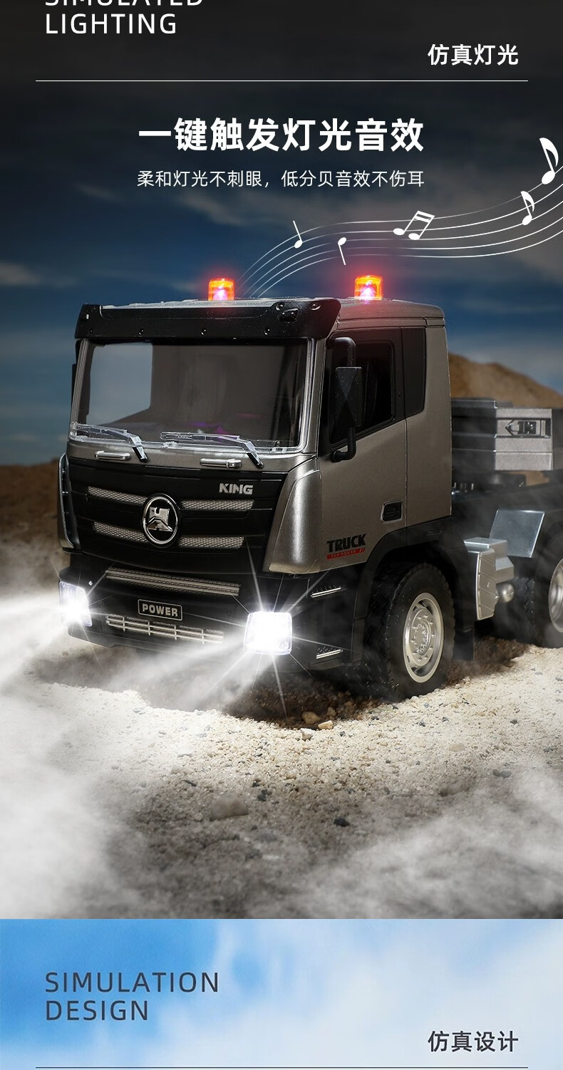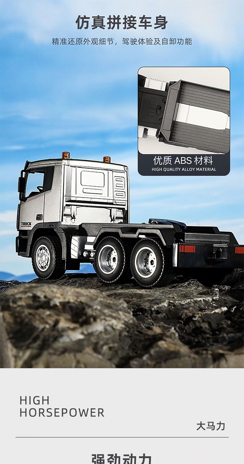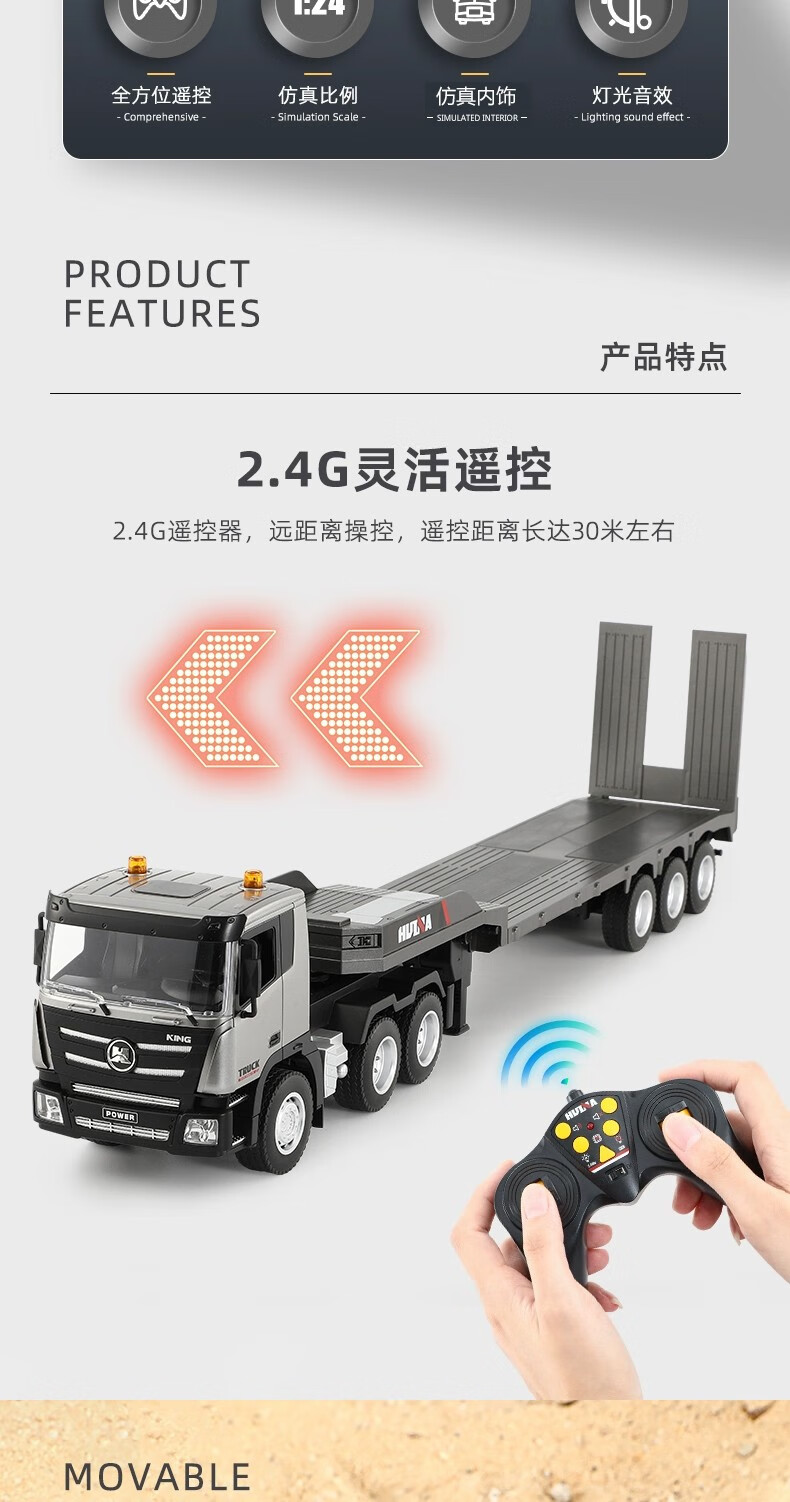 汇纳模型汇纳遥控平板拖车仿真半挂拖头运输车儿童工程车男孩电动卡车玩具 遥控平板车(二组充电电池)
