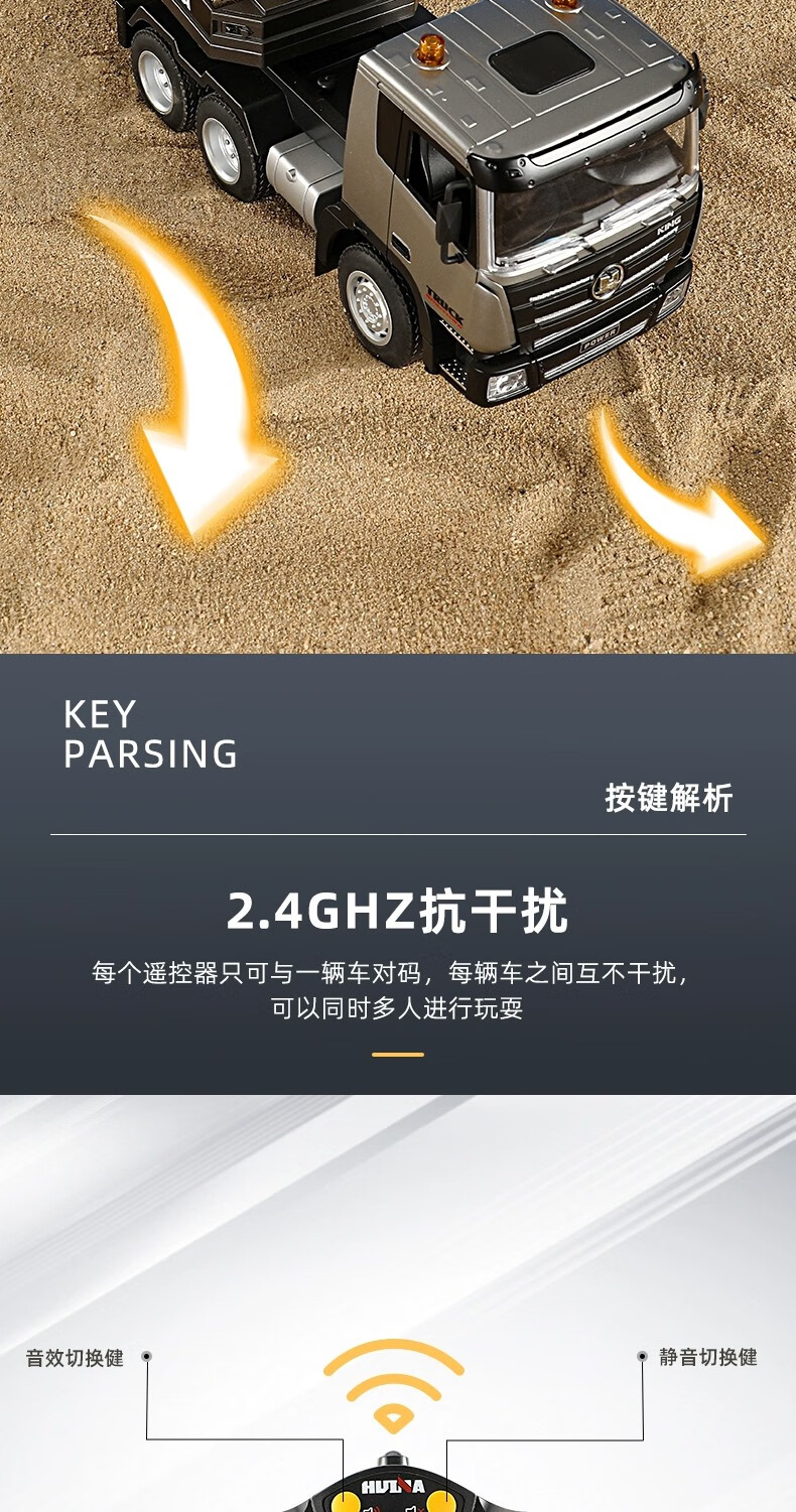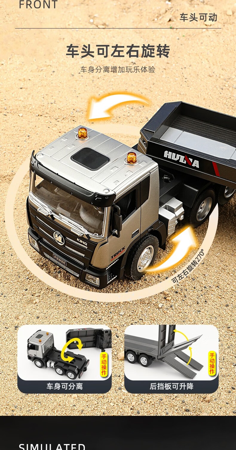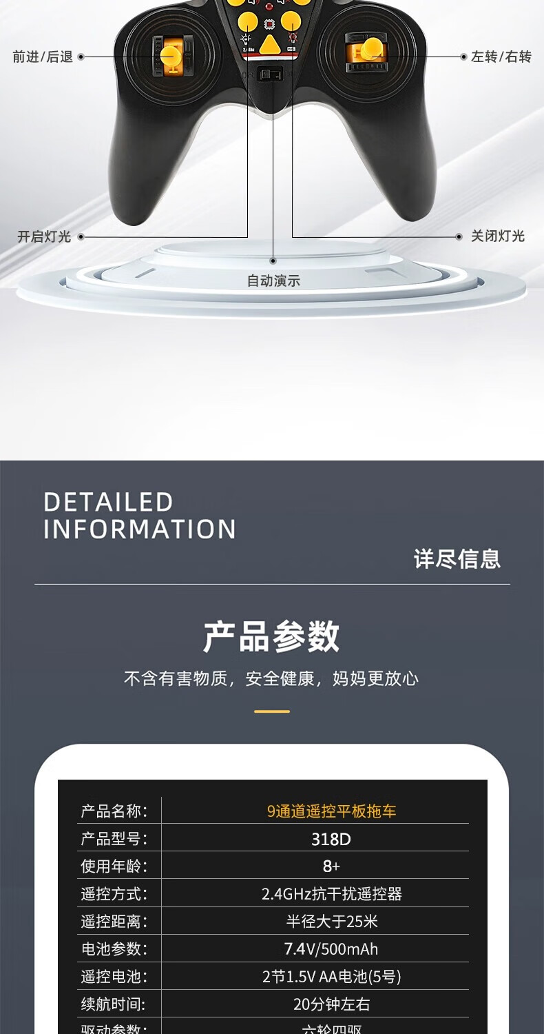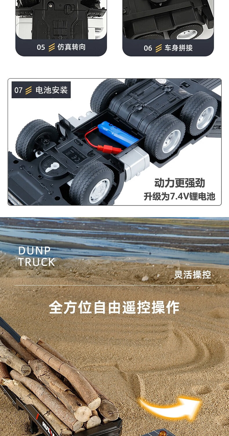 汇纳模型汇纳遥控平板拖车仿真半挂拖头运输车儿童工程车男孩电动卡车玩具 遥控平板车(二组充电电池)