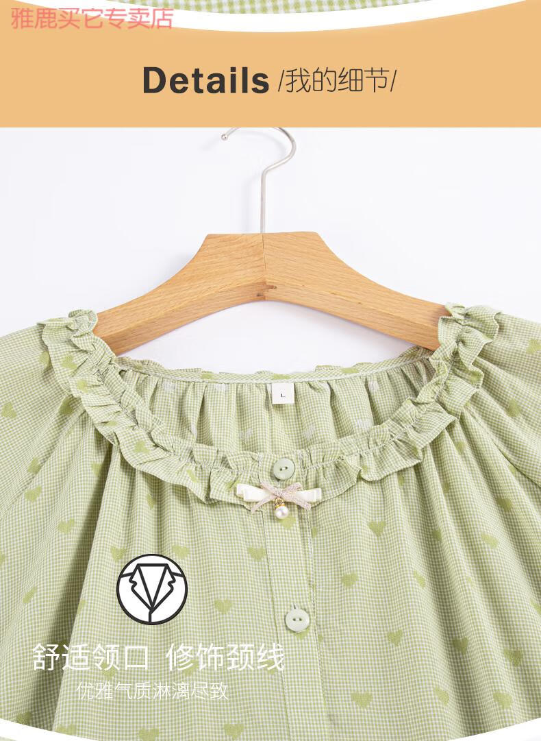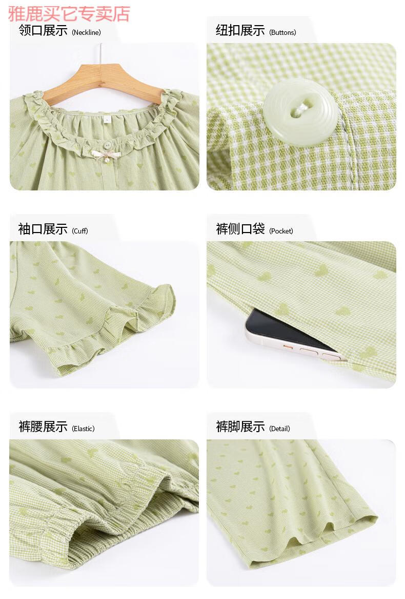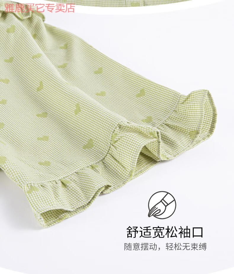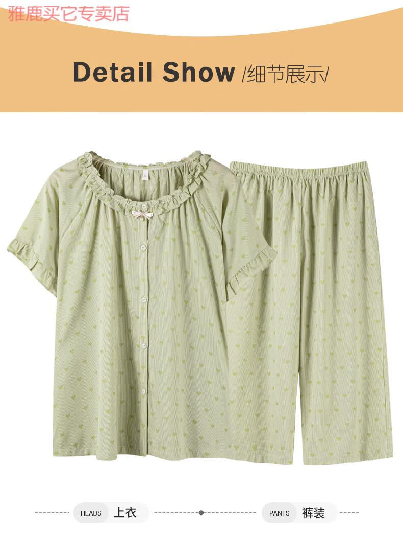 雅鹿梭织纯棉睡衣女夏季薄款短袖七分裤纱布全棉显瘦休闲家居服套装 5021 170(XL) 120-160斤