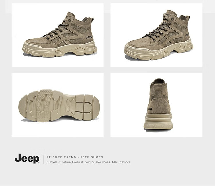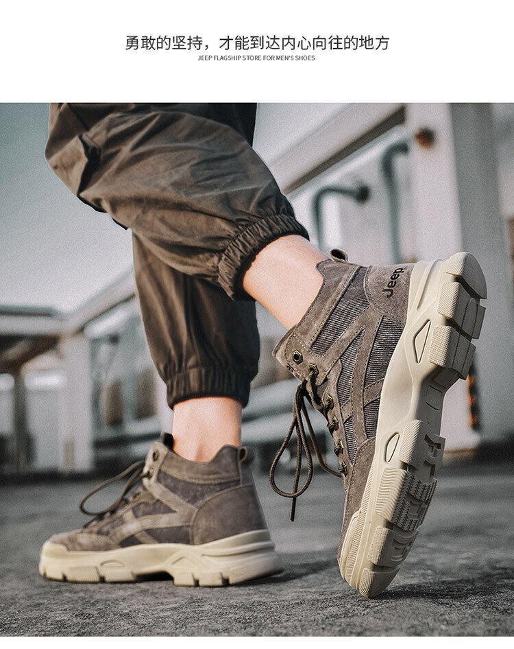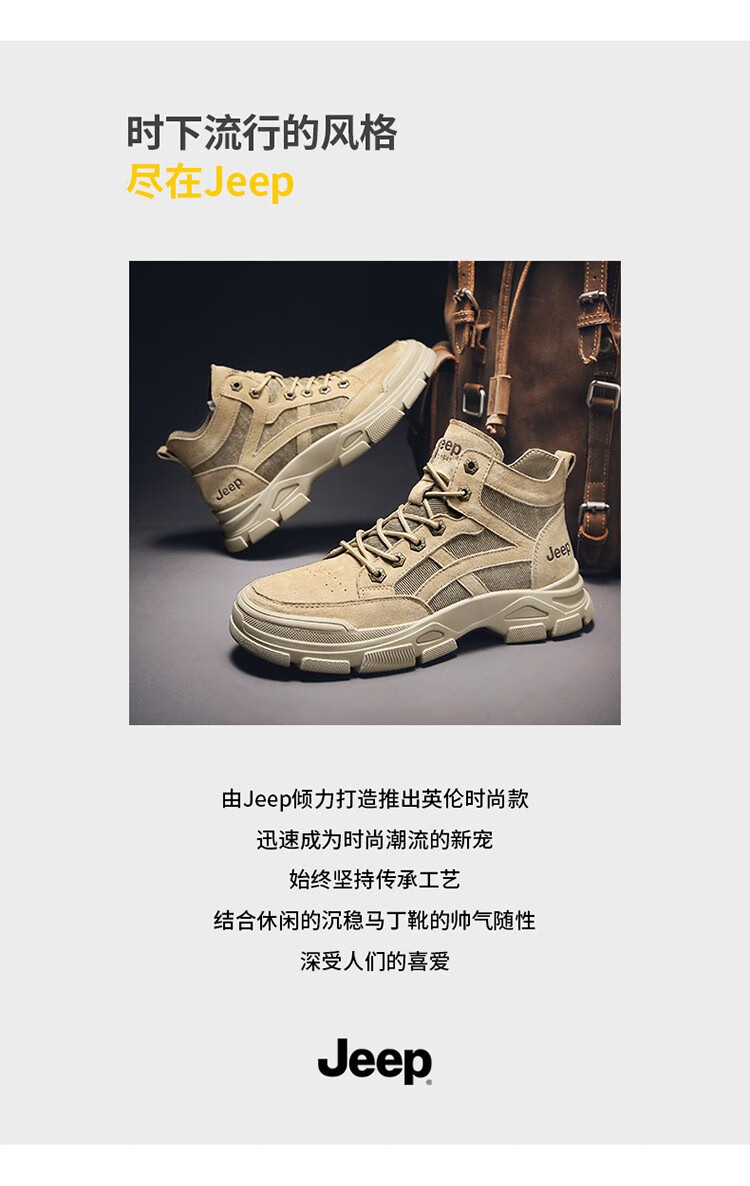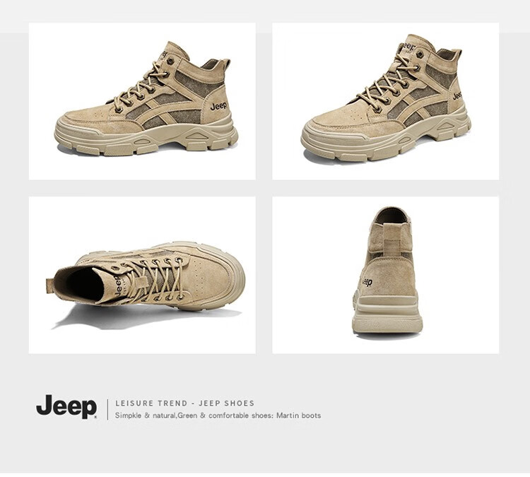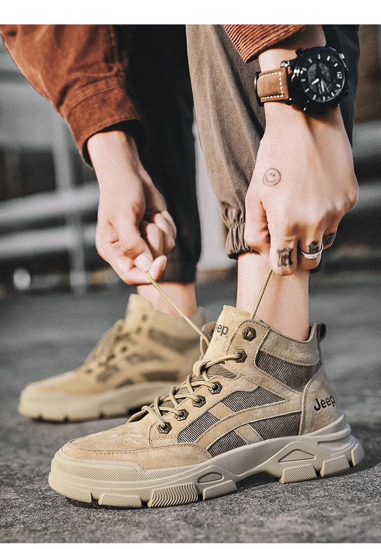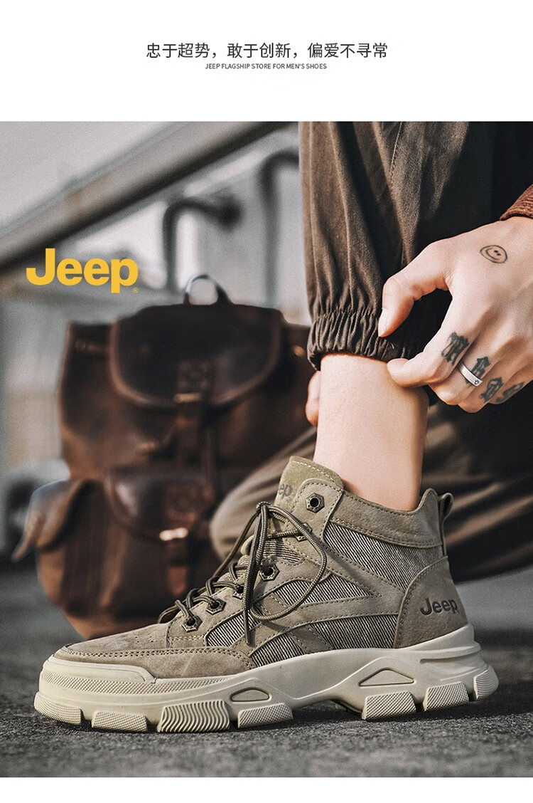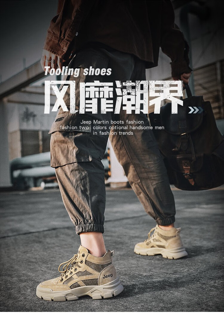 Jeep吉普马丁靴男秋冬新款透气高帮工装靴子男潮流户外休闲沙漠作战靴 深卡其【标准皮鞋码】 40