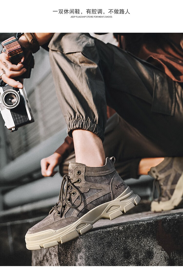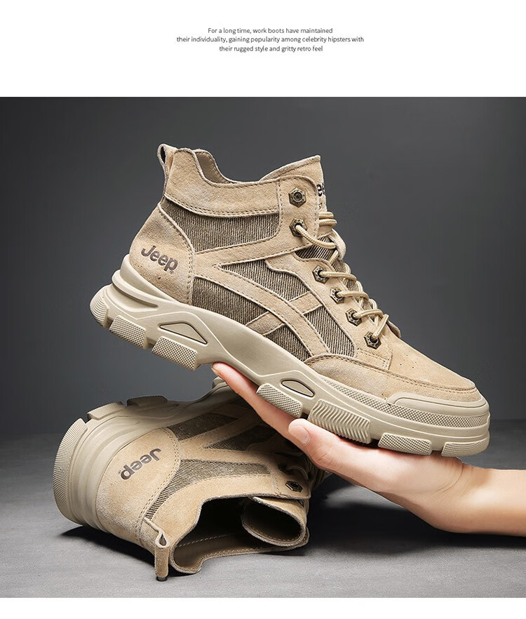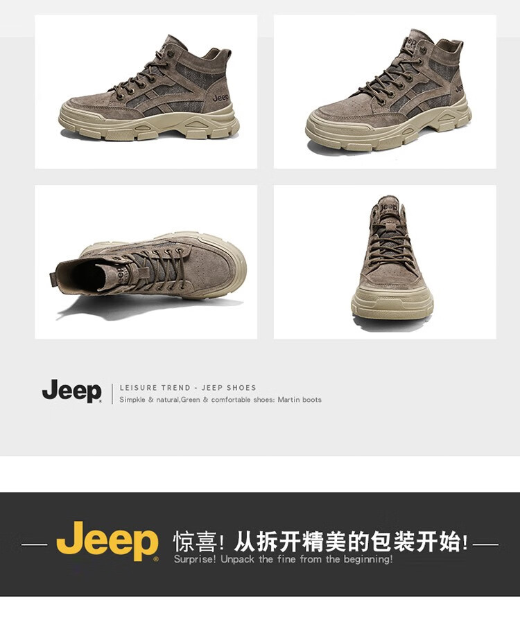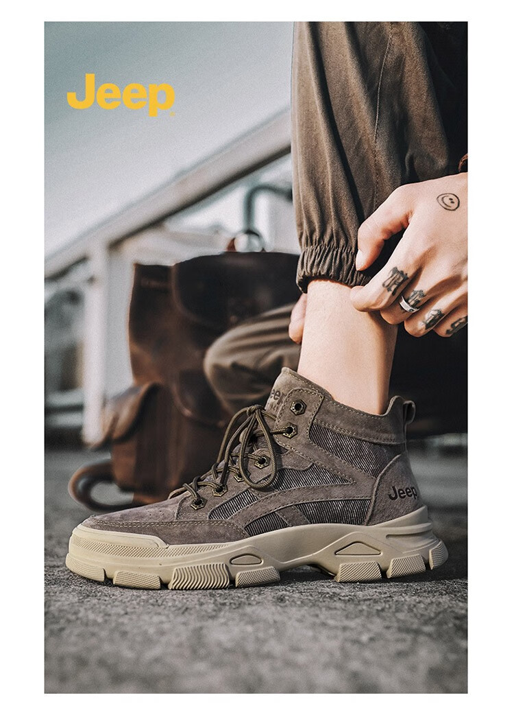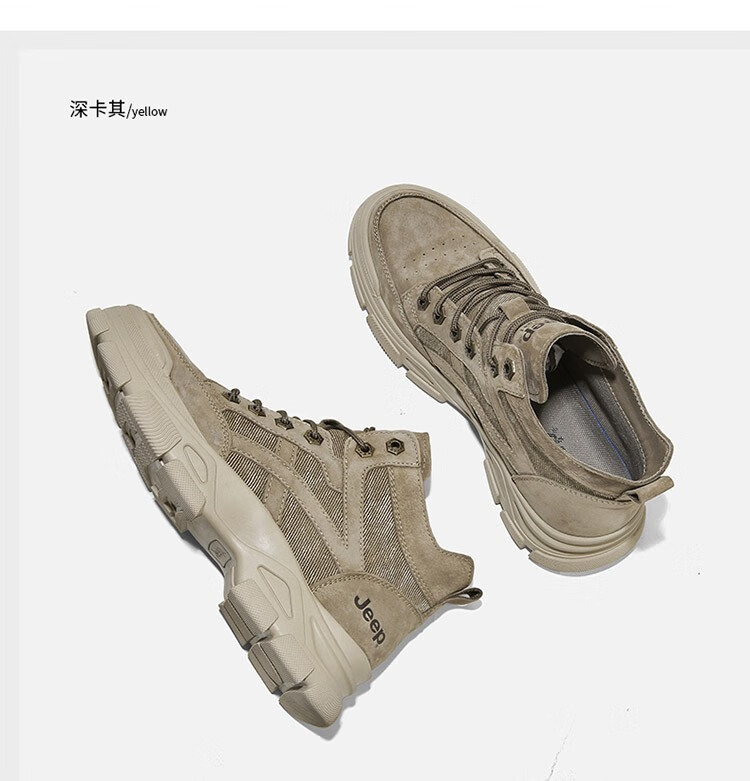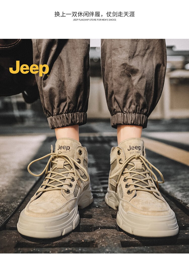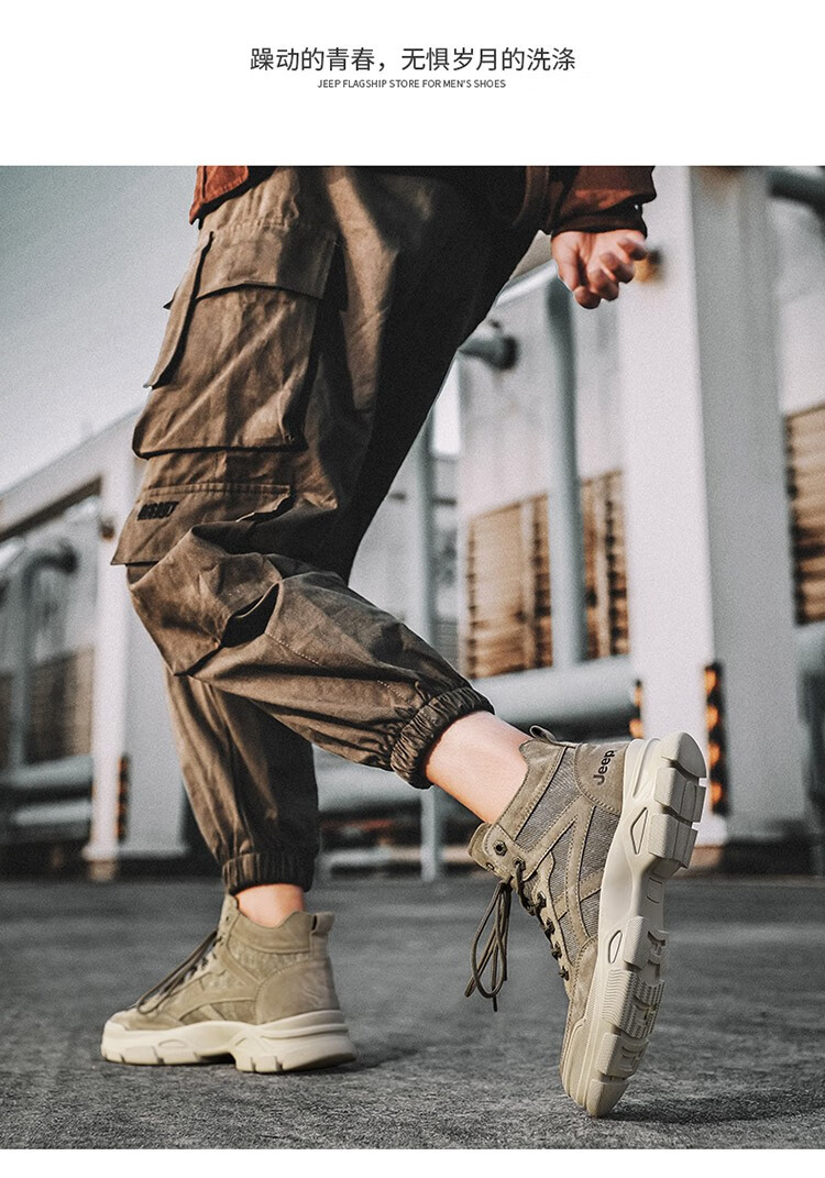 Jeep吉普马丁靴男秋冬新款透气高帮工装靴子男潮流户外休闲沙漠作战靴 深卡其【标准皮鞋码】 40