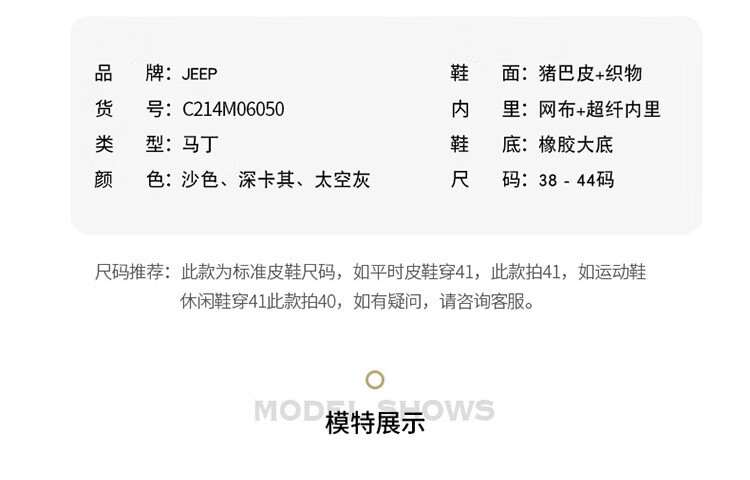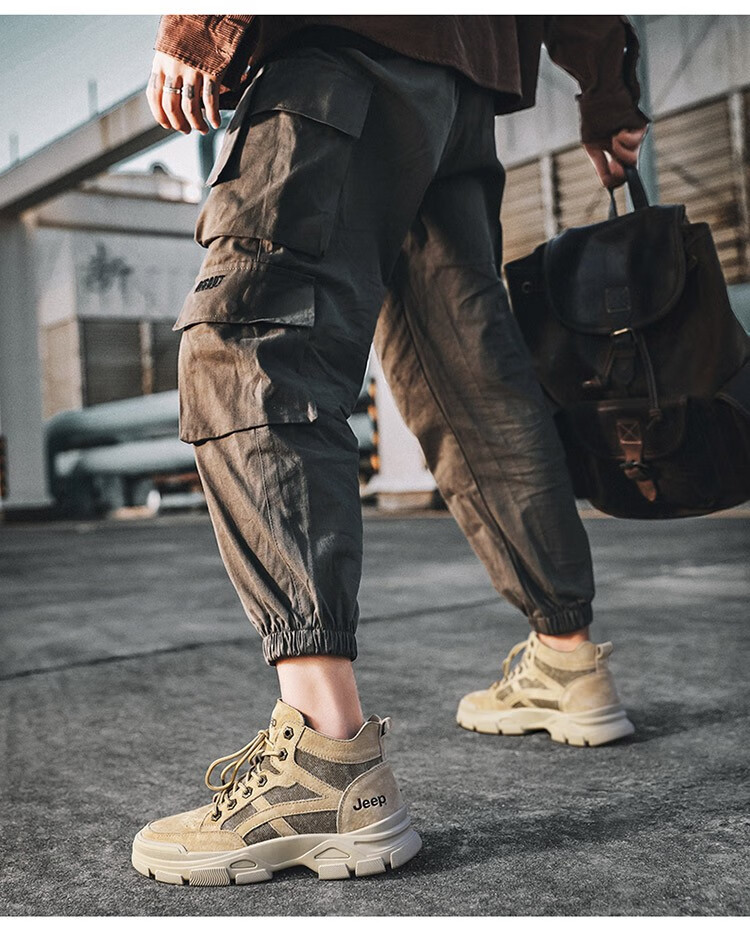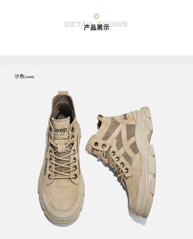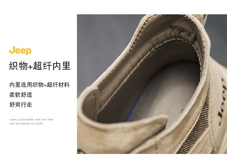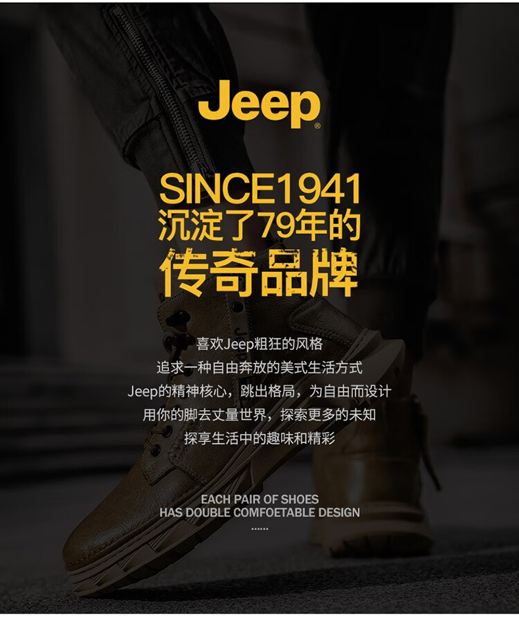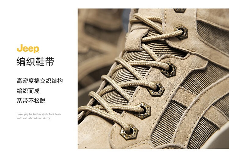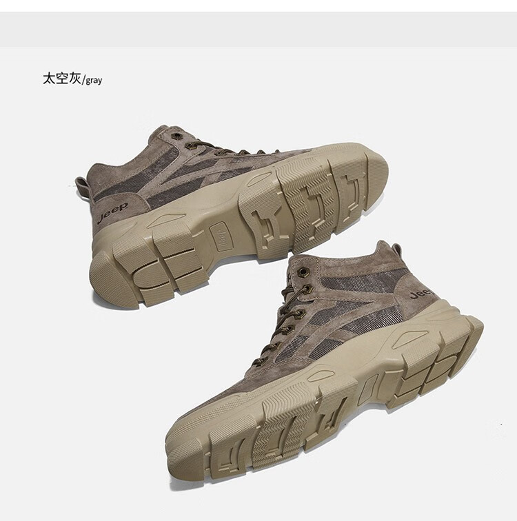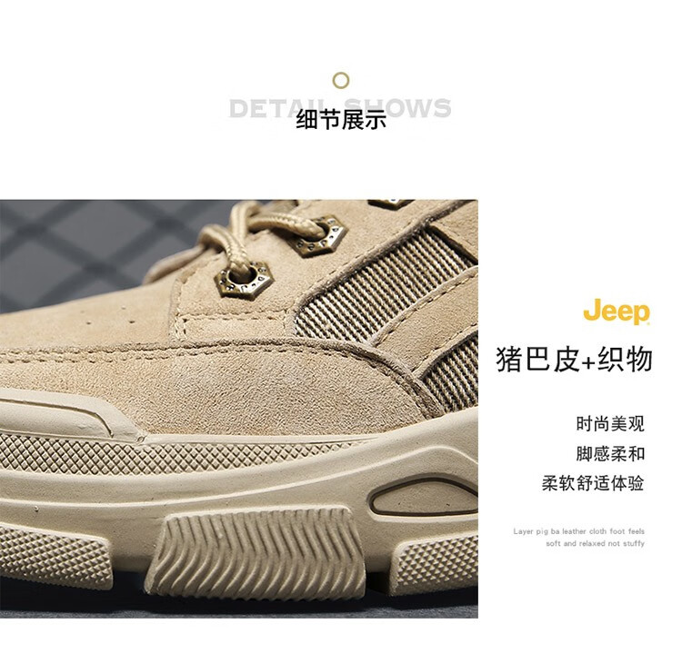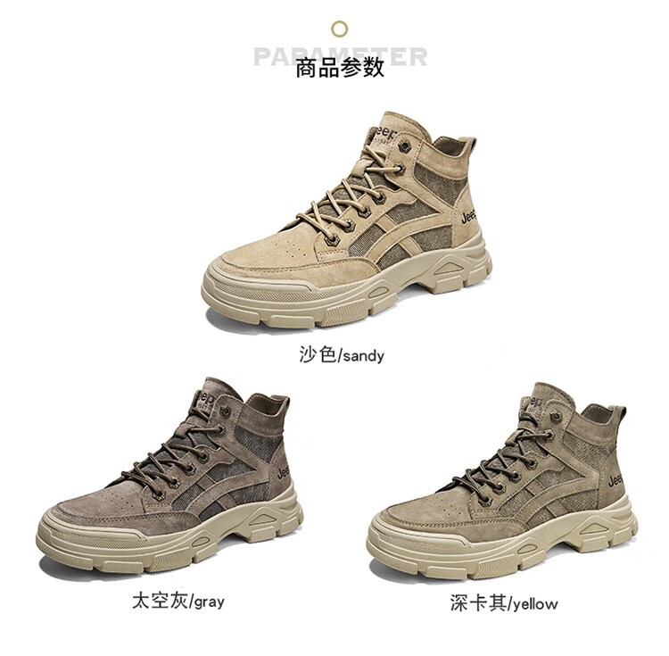 Jeep吉普马丁靴男秋冬新款透气高帮工装靴子男潮流户外休闲沙漠作战靴 深卡其【标准皮鞋码】 40
