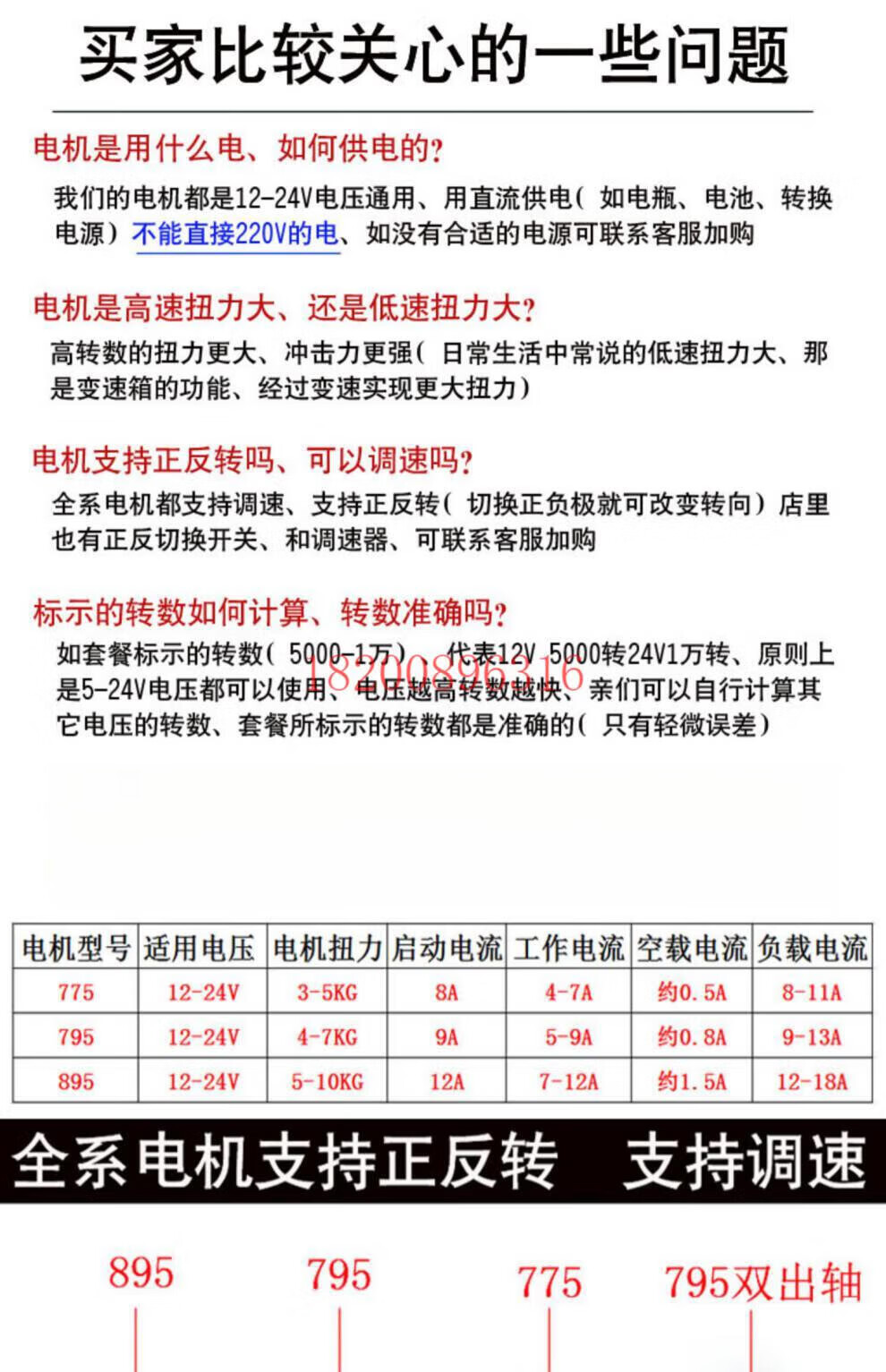 澳颜莱直流895电机775/795大功率马达12V24V大扭力diy台锯/车床/割草机 775双轴承D轴(5千-1万转)