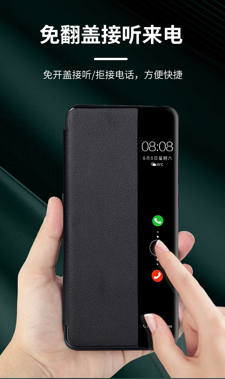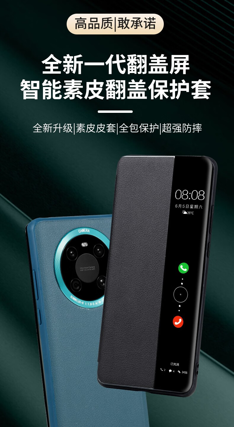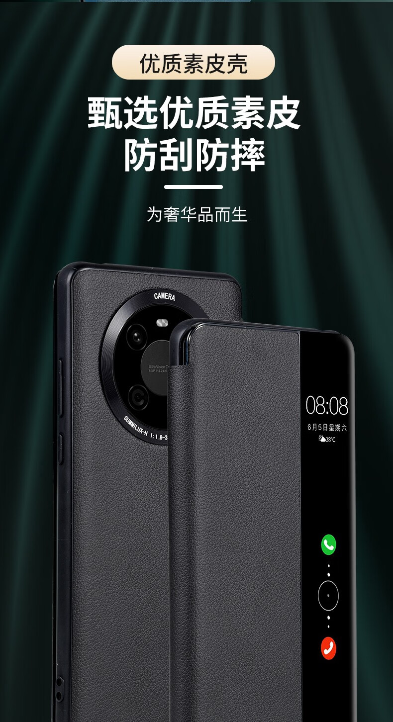 Nomin applies to Huawei mate40pro/epro mobile phone case plain leather flip cover all-inclusive anti-fall mate40e smart window business leather case dark black Huawei mate40pro/epro