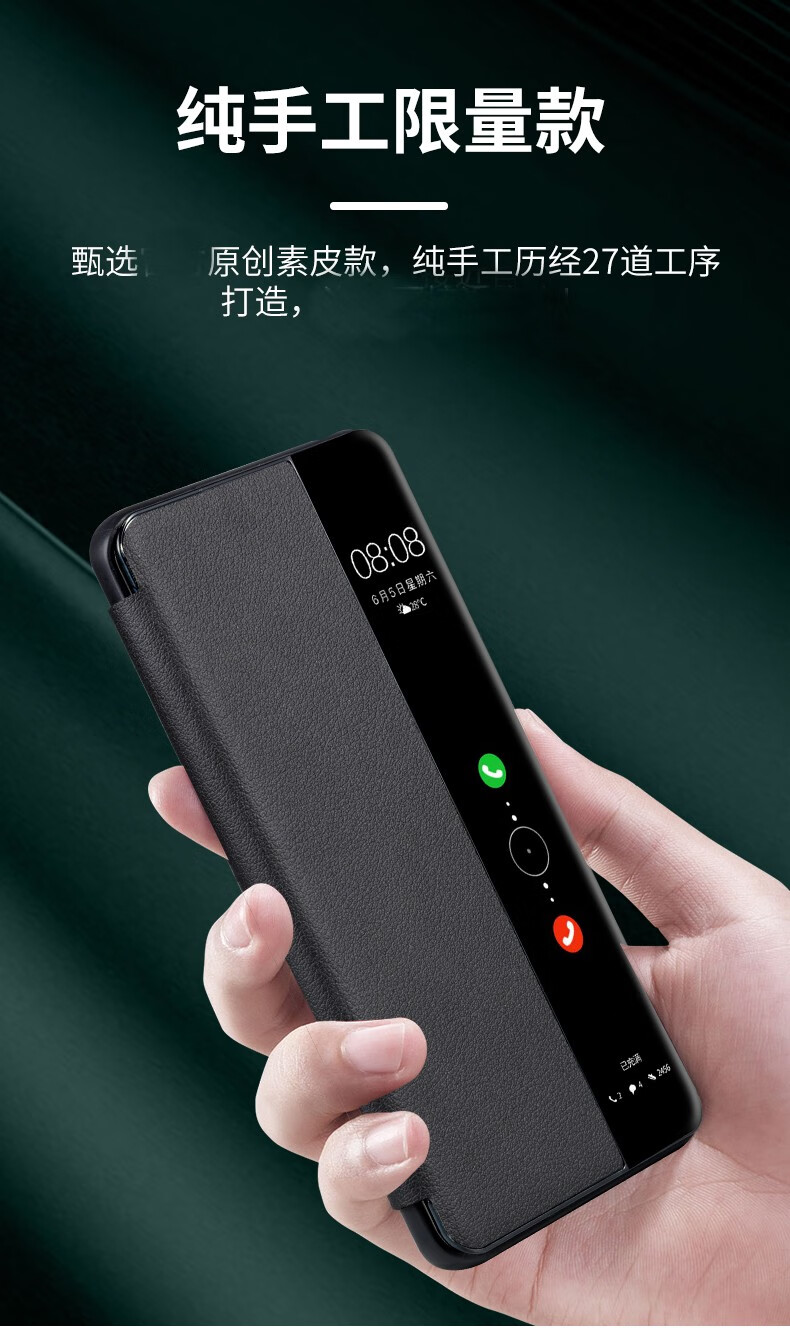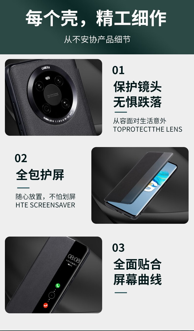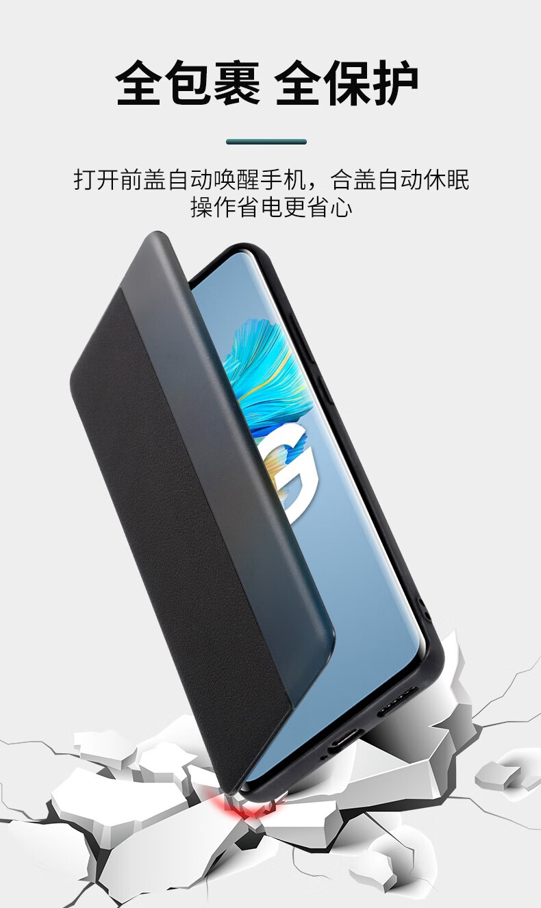 Nomin applies to Huawei mate40pro/epro mobile phone case plain leather flip cover all-inclusive anti-fall mate40e smart window business leather case dark black Huawei mate40pro/epro