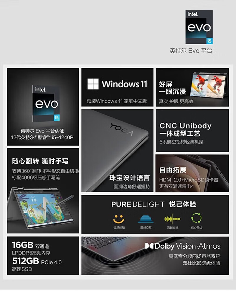 ThinkPadX1 S2 Yoga 2025 AI/ i7 触摸翻转二合一联想笔记本电脑 高性能设计师绘图轻薄本商务办公本可选 i7 1355U 32G运行 512G固态 标配 360°折叠翻转可选 按压感手写 100%高色域屏