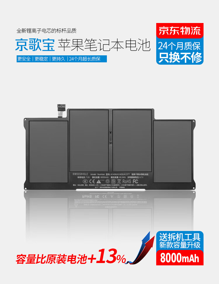 Jinggebao 3C certified for Apple notebook battery MacBook Air A1466 A1369 Apple computer battery A1405A1496 Air13-inch mac battery A1466/8000mAh