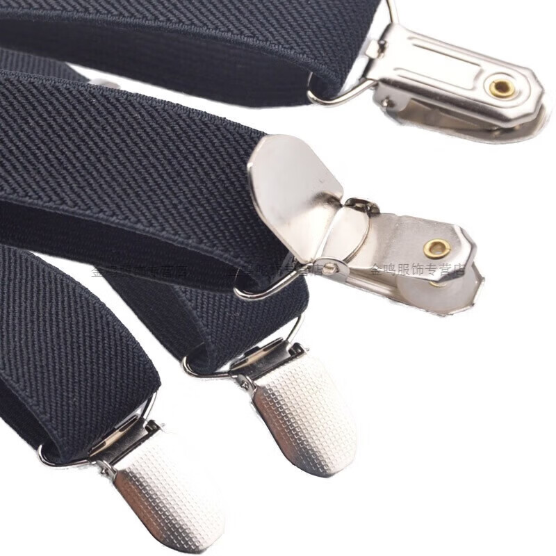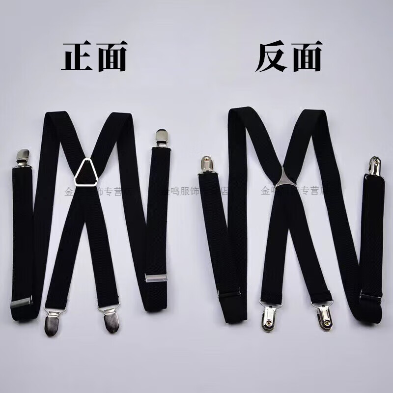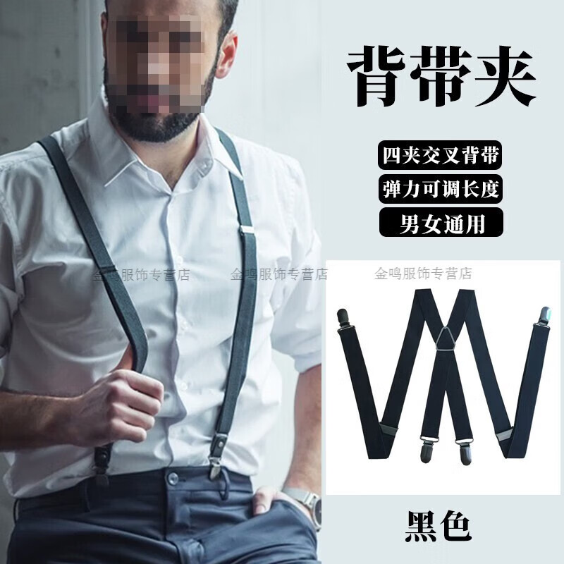 Changyin Hosenträgerclip für Erwachsene, elastisch, rutschfest, formelle Hosenträger, Anzughose, Hosenträger, 4-Clip-Hemd-Hosenträger, X-förmige Hosenträger, X-förmiges Eisendreieck, genarbt – Schwarz
