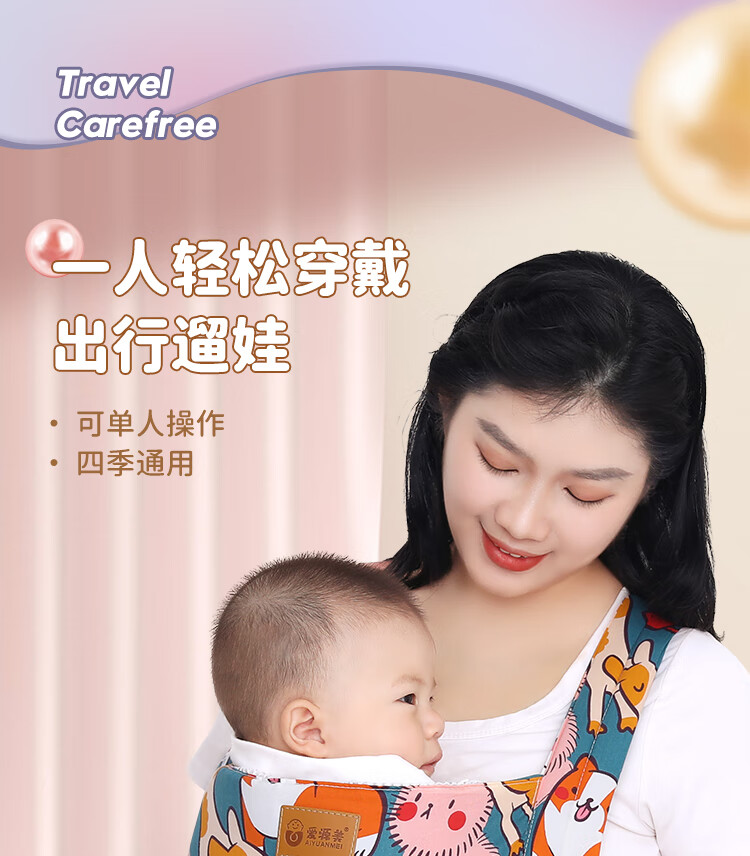 Aiyuanmei baby carrier can be used both front and back for outing, simple and breathable front-hold baby newborn holding tool to free up hands, light blue duck
