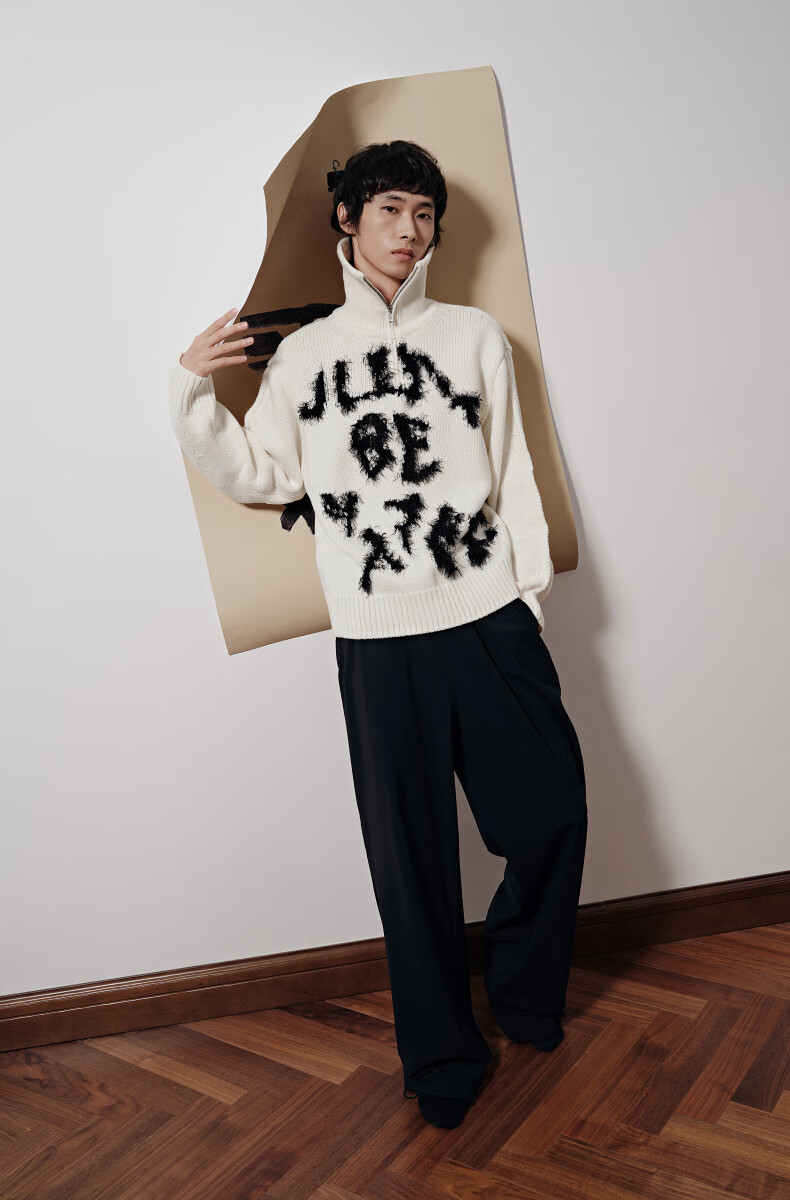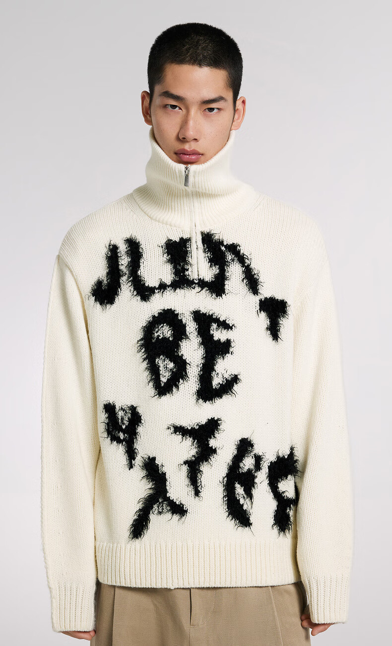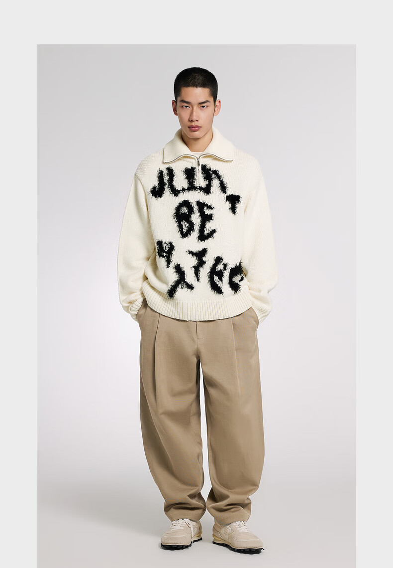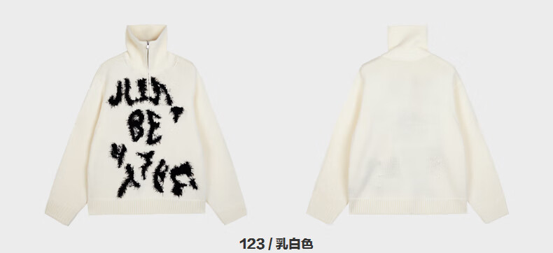 速写男装秋冬新款毛针织衫高领宽松复古提花撞色长袖毛衣 123乳白色 L