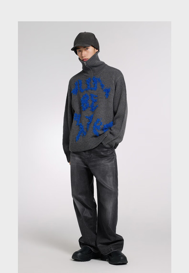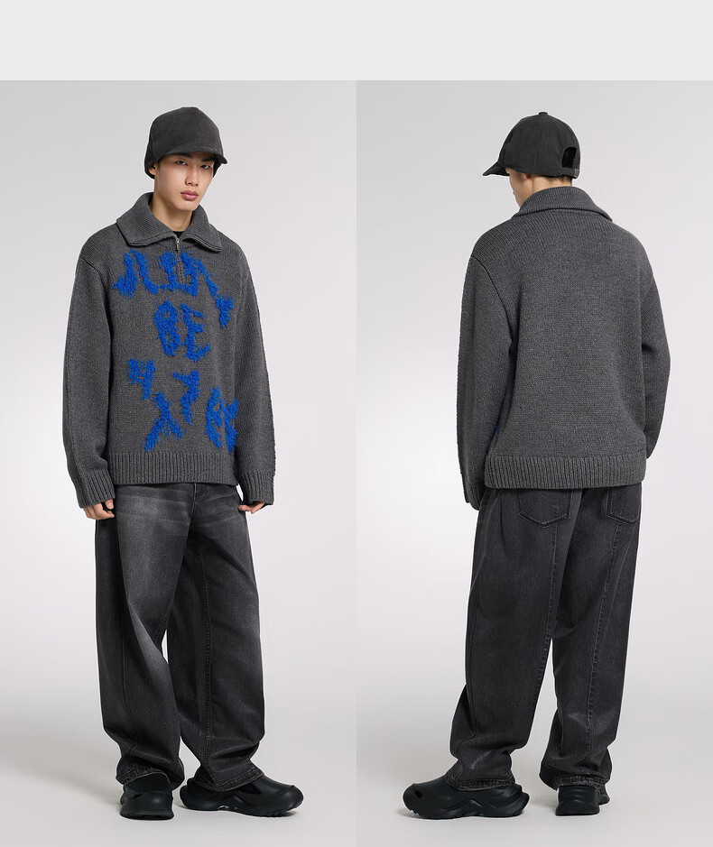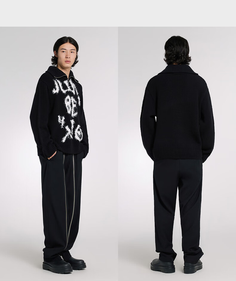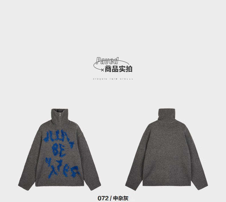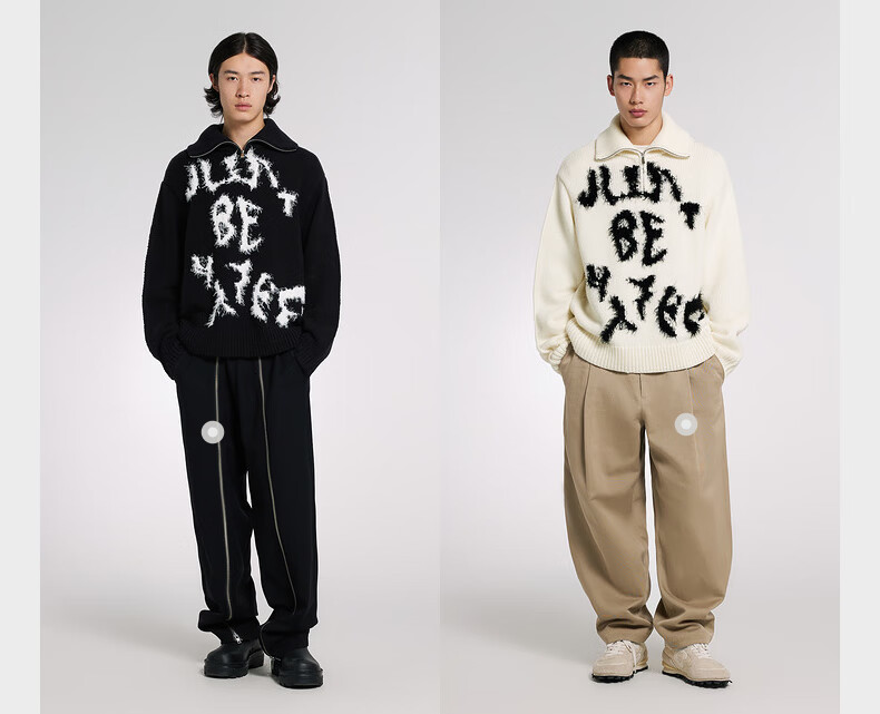 速写男装秋冬新款毛针织衫高领宽松复古提花撞色长袖毛衣 123乳白色 L