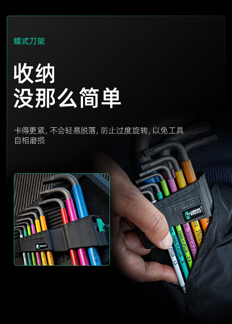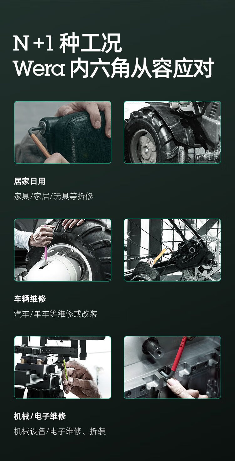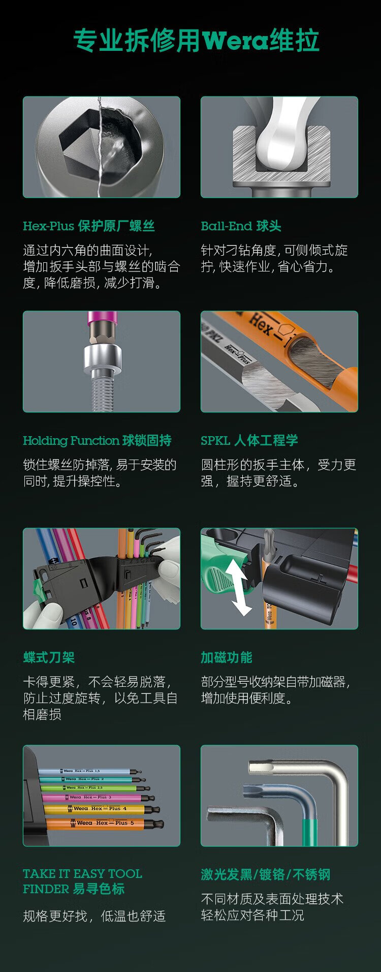 维拉(WERA)内六角扳手套装加长进口球头平头梅花短款扳手德国自行车维修工具 967彩色防盗梅花9件073599加磁器