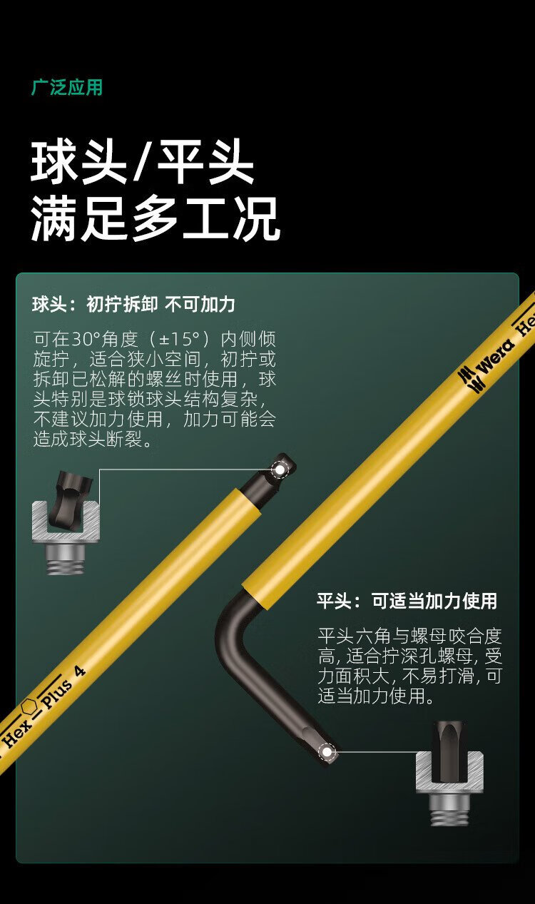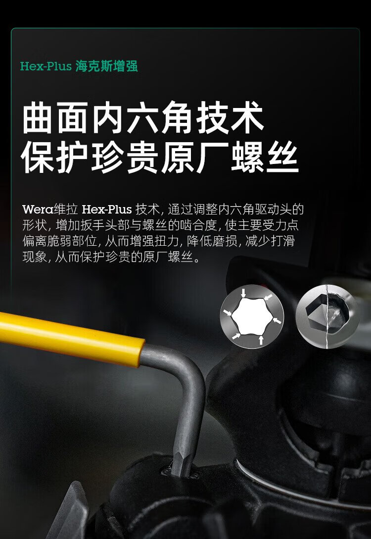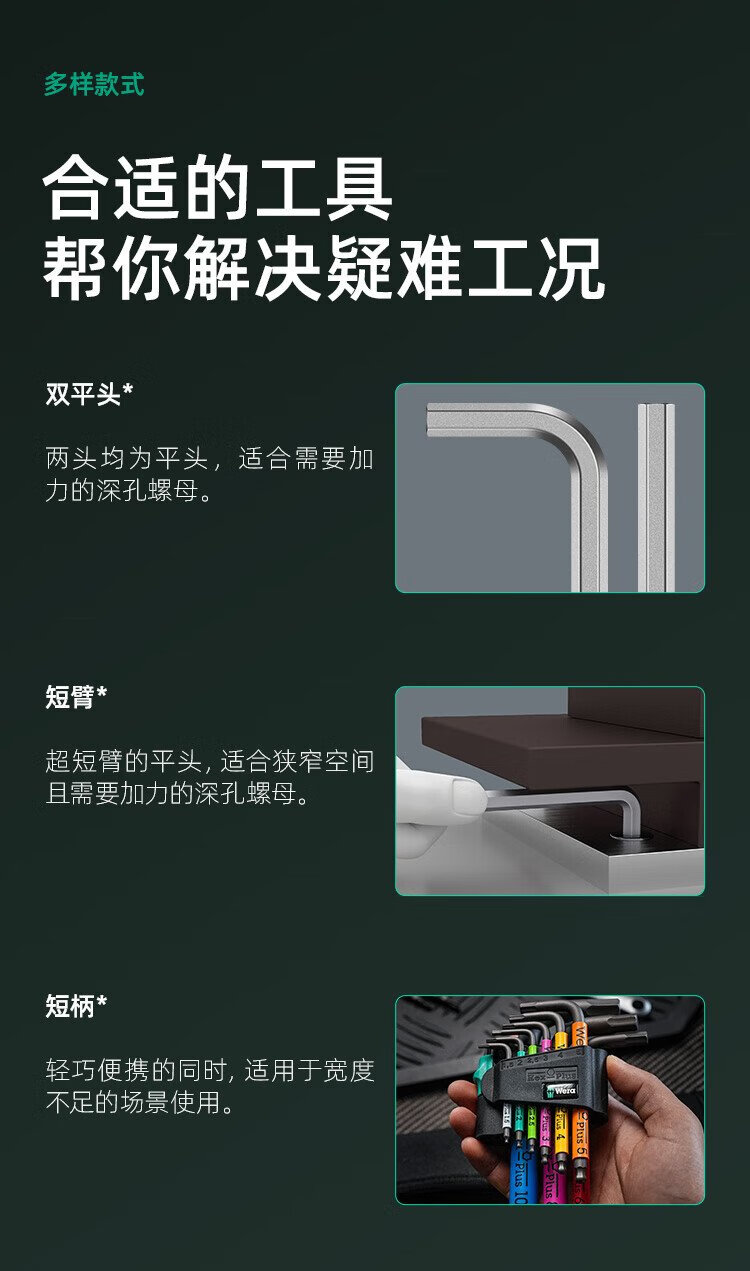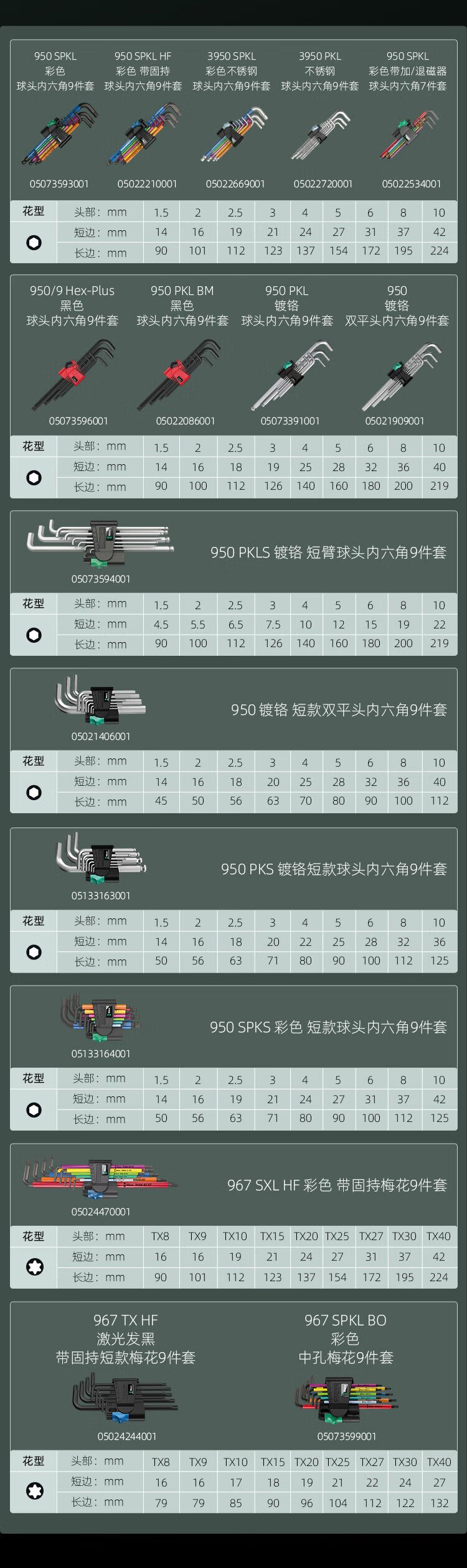 维拉(WERA)内六角扳手套装加长进口球头平头梅花短款扳手德国自行车维修工具 967彩色防盗梅花9件073599加磁器