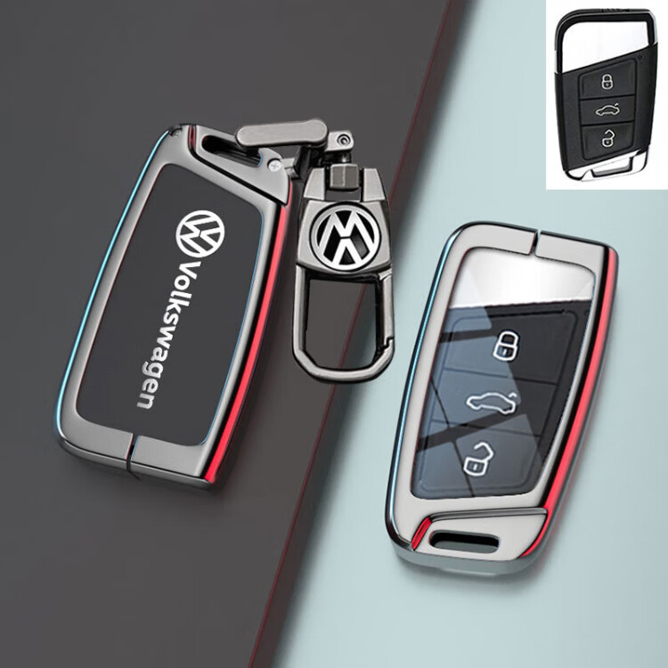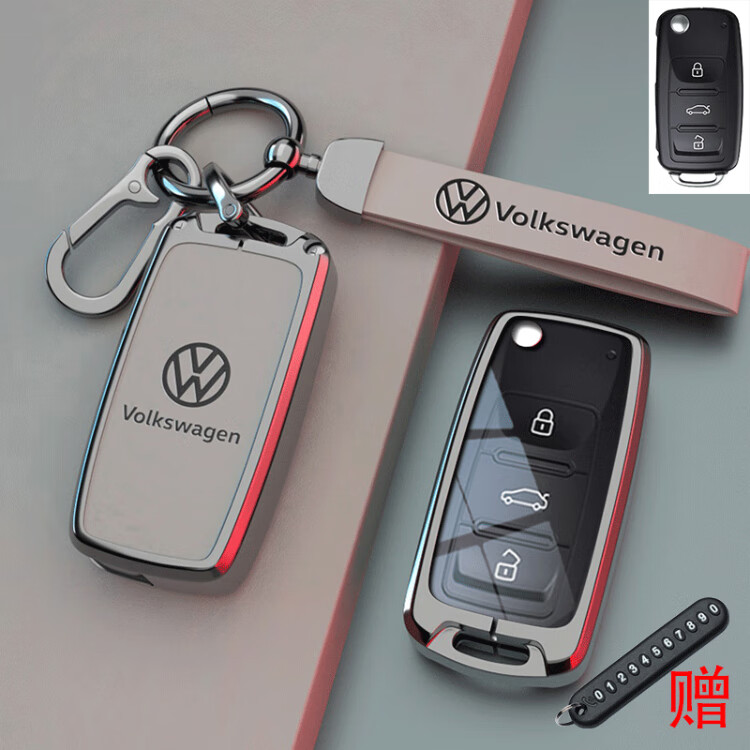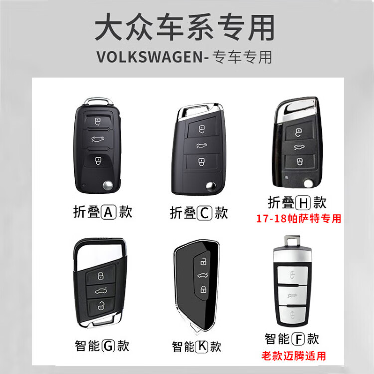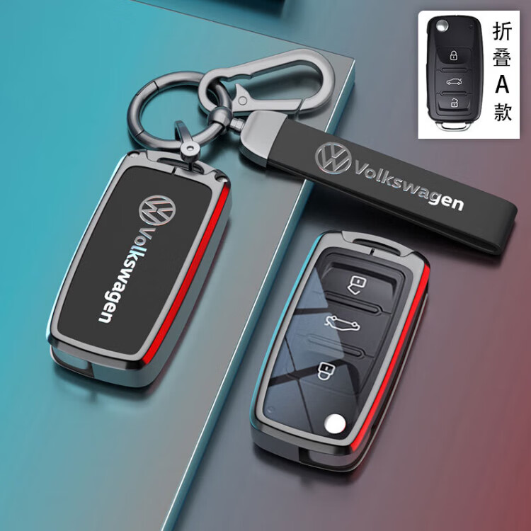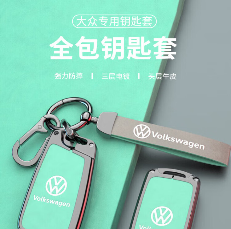 绅创大众钥匙套25款速腾迈腾朗逸帕萨特宝来汽车包扣壳途观L探岳途岳 大众【C款折叠3键】-黑皮绳款