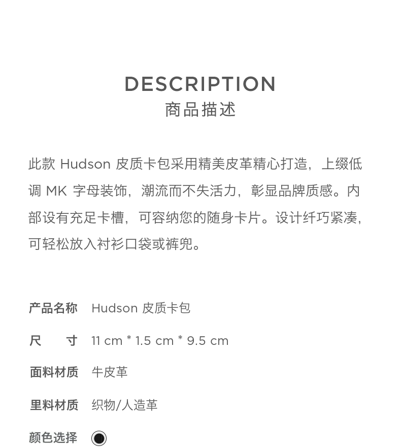 MICHAEL KORS迈克高仕 MK【两件折上折】Hudson 皮质 Logo 饰亮面卡包男士票夹 黑色 001 NS