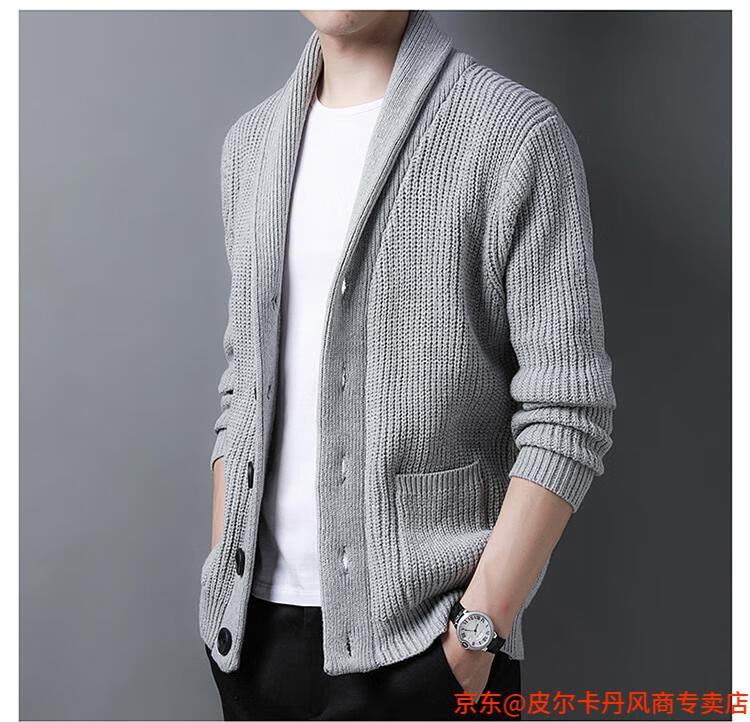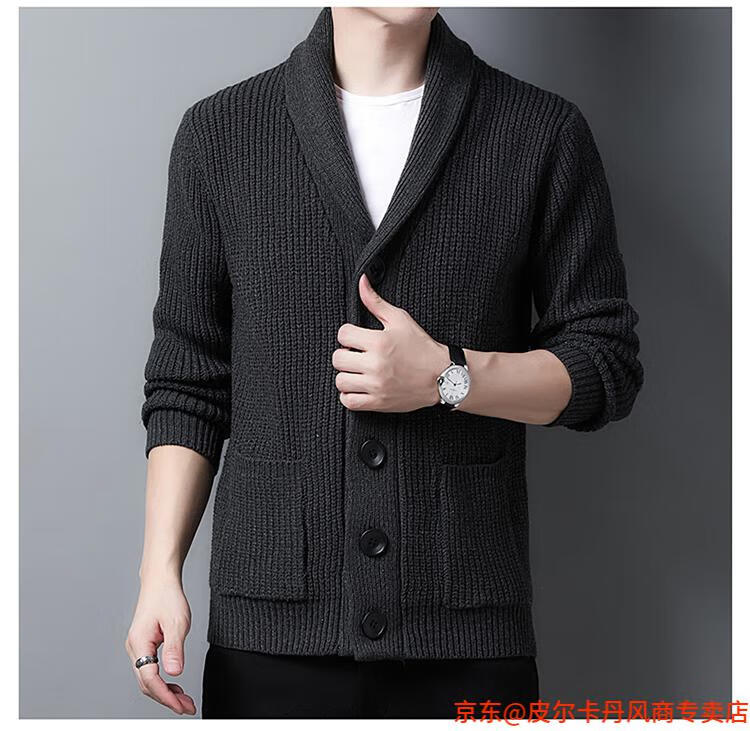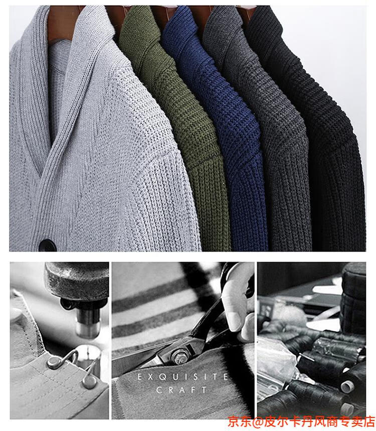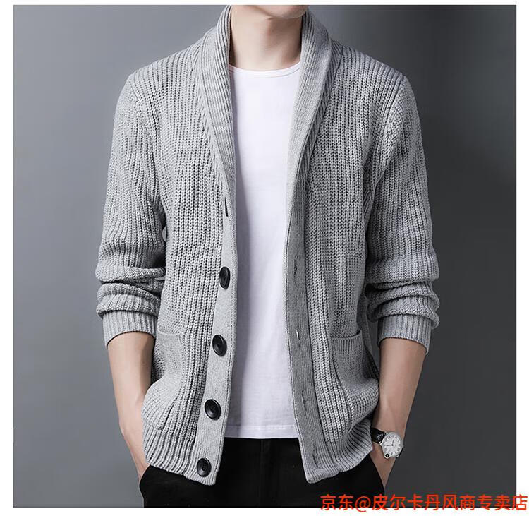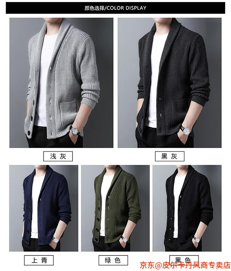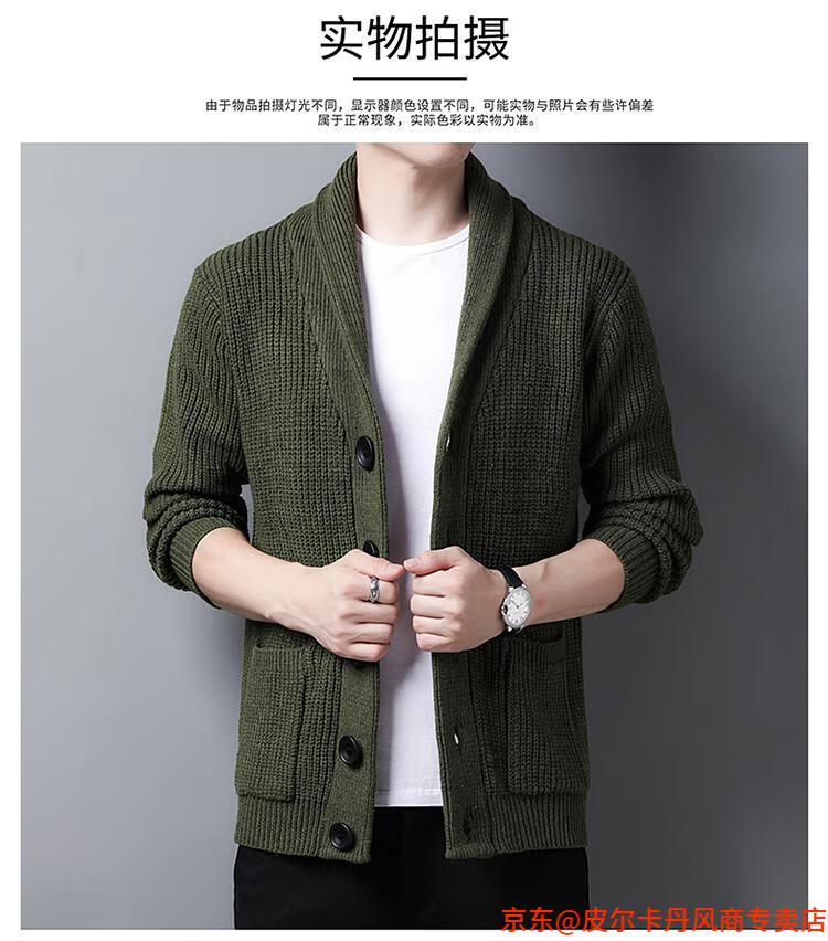 皮尔卡丹(pierre cardin)开衫毛衣男外套秋冬季大码青果领宽松休闲羊毛针织衫春装针织衫毛 FMS-2531-绿色 M