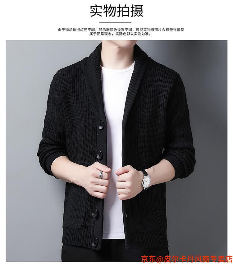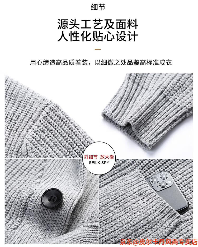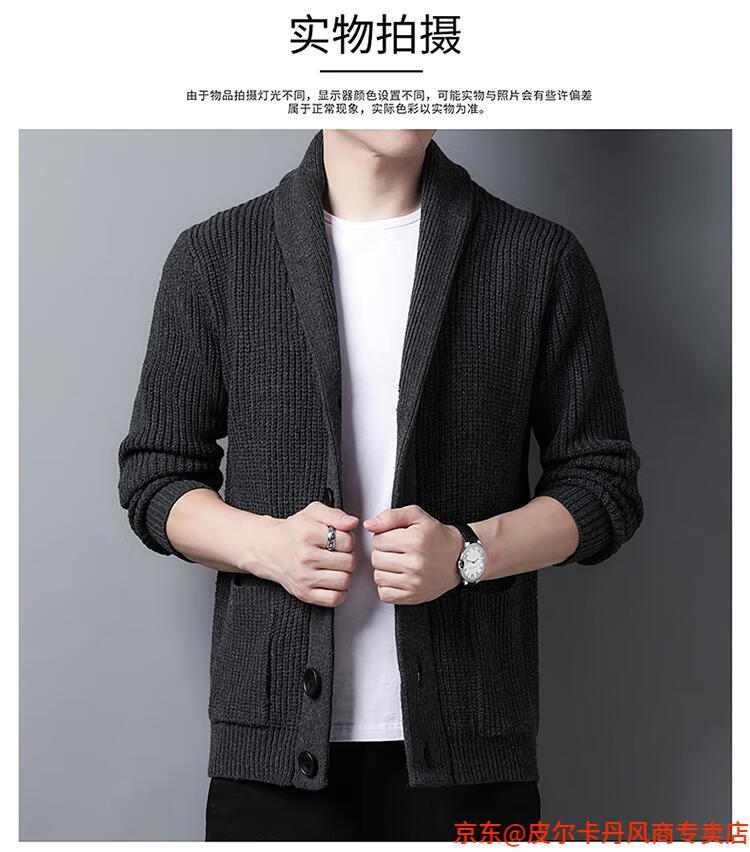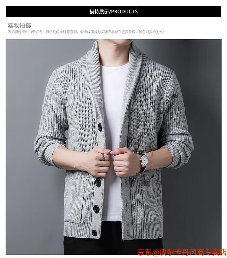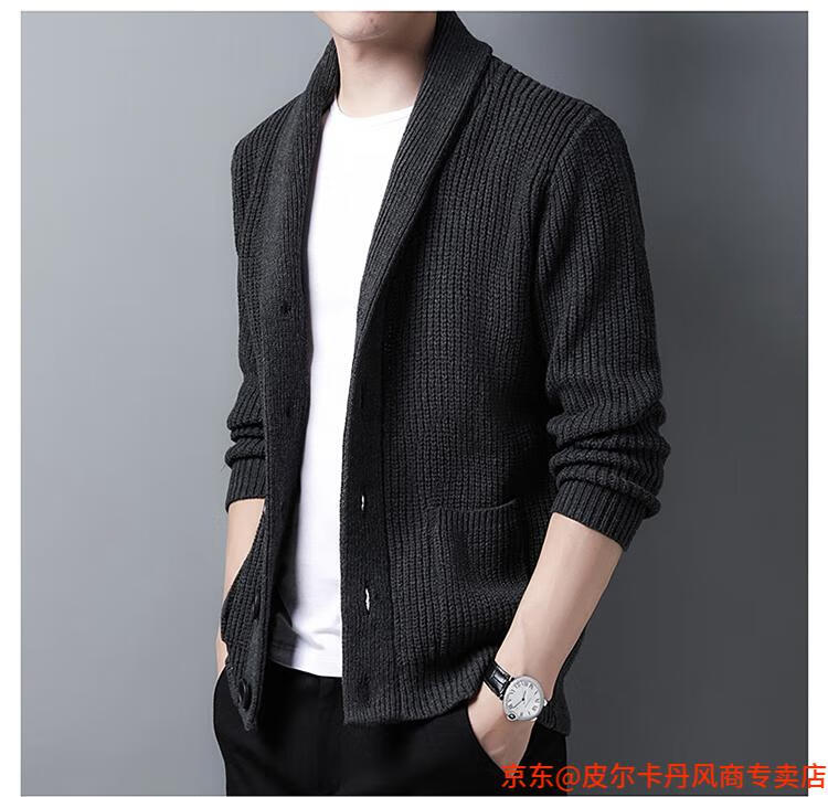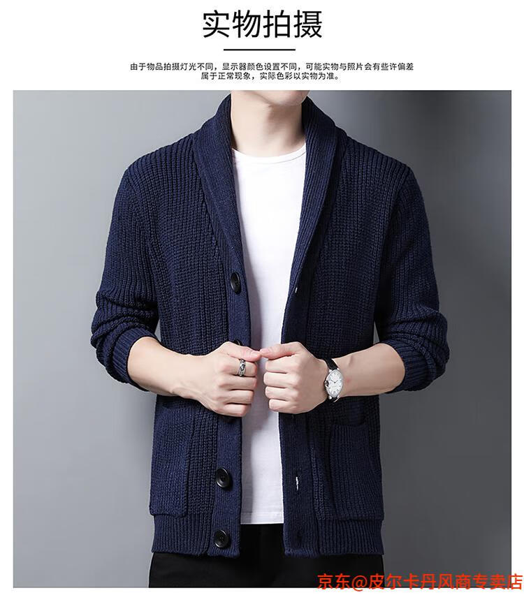 皮尔卡丹(pierre cardin)开衫毛衣男外套秋冬季大码青果领宽松休闲羊毛针织衫春装针织衫毛 FMS-2531-绿色 M