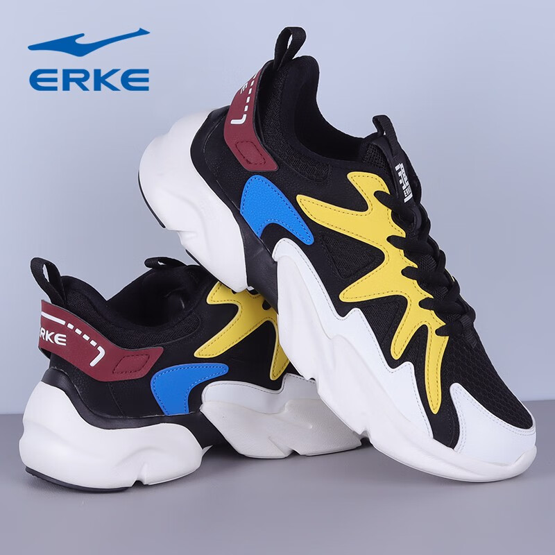 鸿星尔克(ERKE)【断码】39码男鞋跑步鞋透气休闲运动减震耐磨户外舒适慢跑鞋子男 7029正黑/彩蓝 39