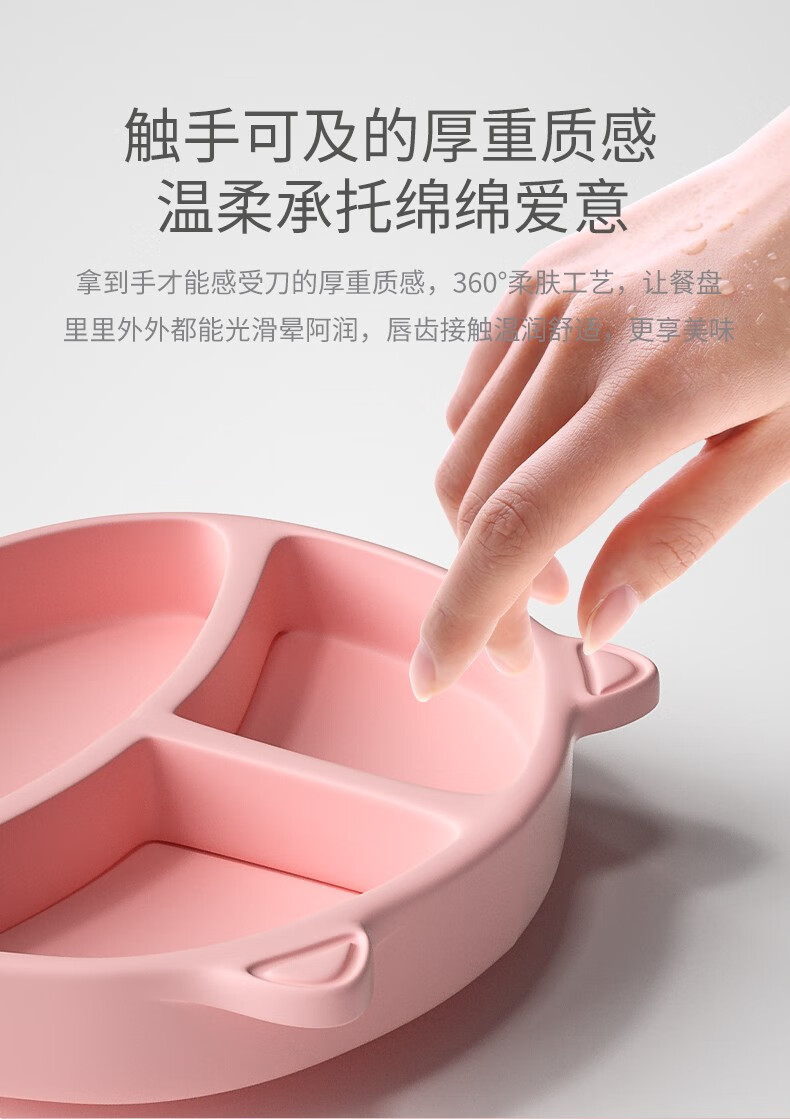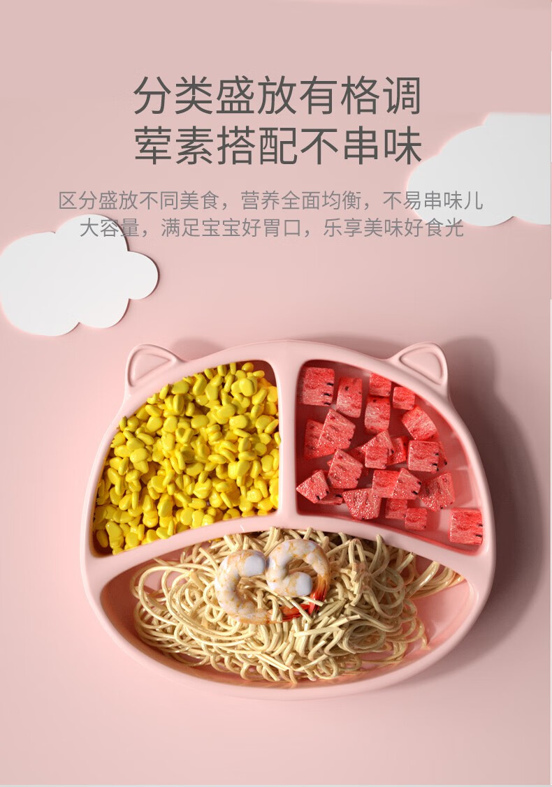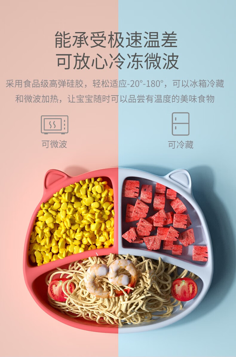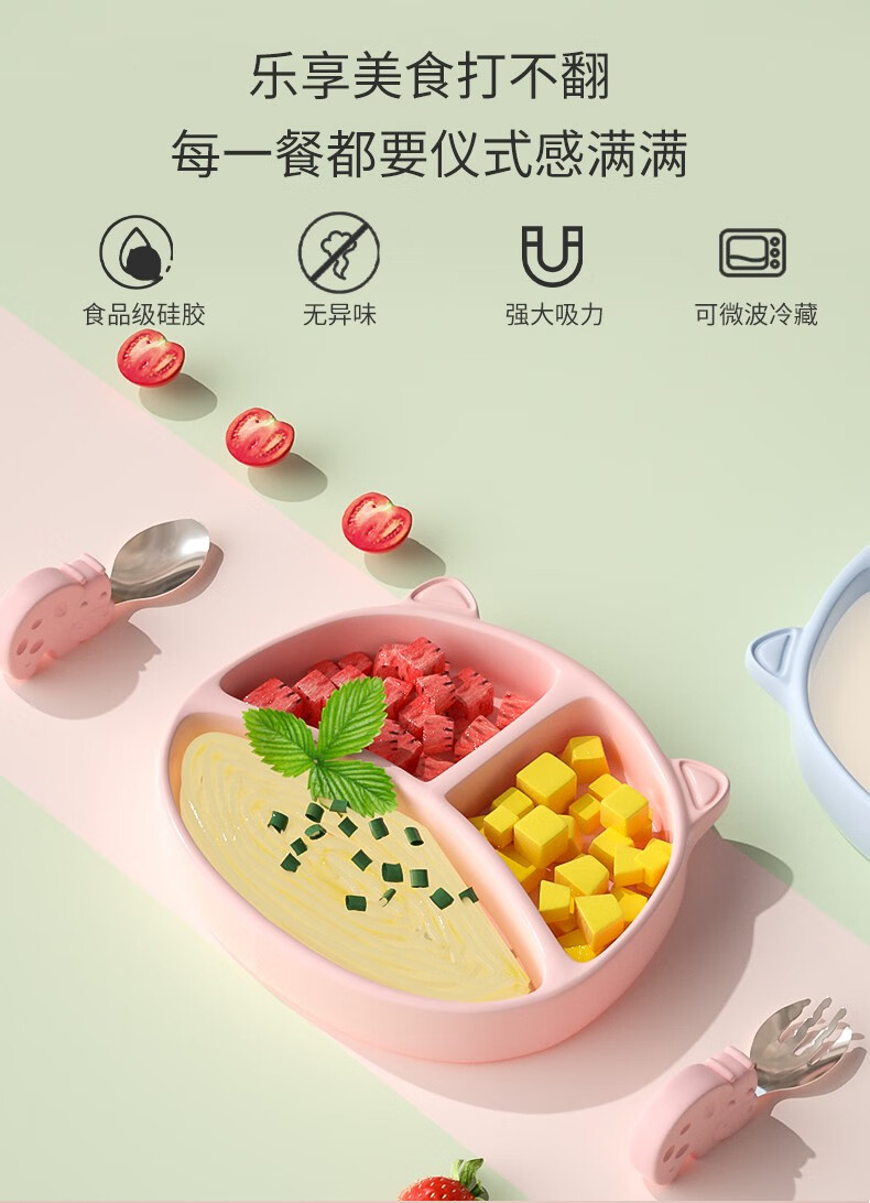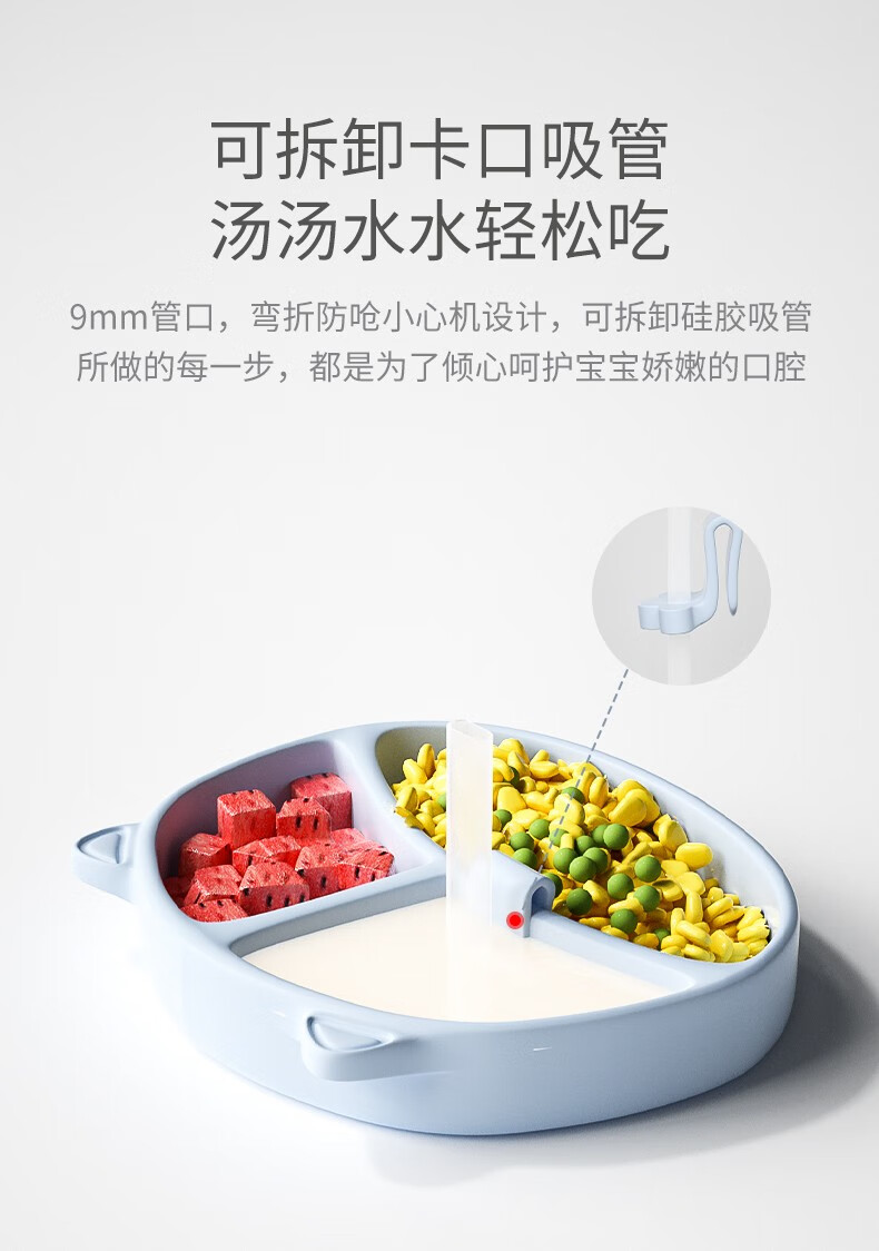 Tiantou Baby-Mahlzeitenteller mit Saugnapf, integrierter Kinder-Silikon-Strohhalm, Babynahrungsnapf, Anti-Fall-geteilter Teller, Geschirr-Set, himmelblauer Speiseteller (mit starkem Saugnapf)