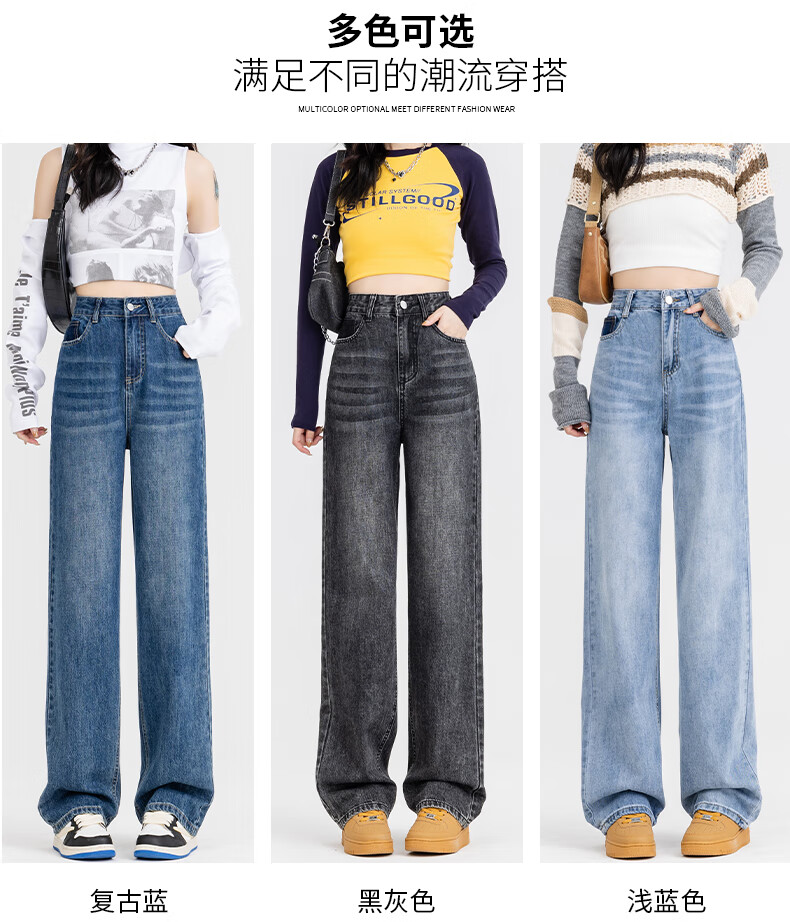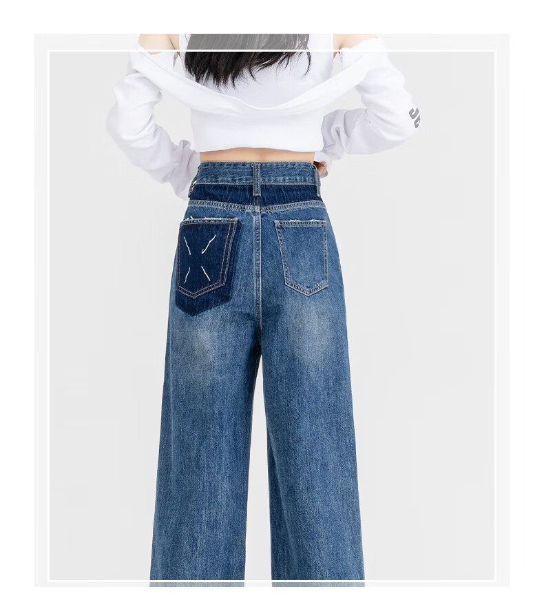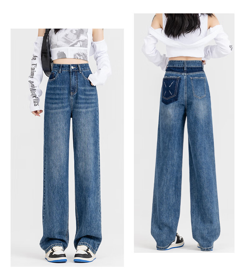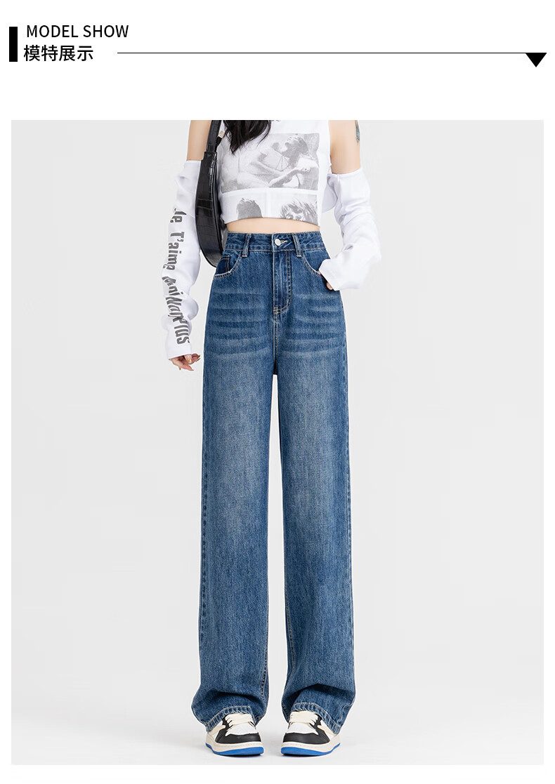Mark impression wide-leg jeans women's loose straight pants spring and autumn 2025 new high-waist drape slim floor-length pants for small people HN695 retro blue M (recommended 93-110 Jin Jin is equal to 0.5 kg)