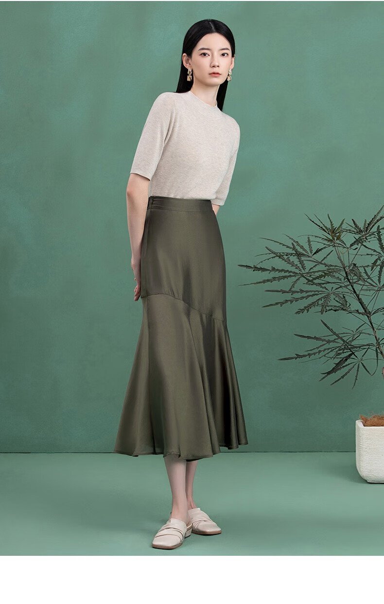 THE SEA LIFE Skirt Women's Ou Hai Yisheng Elastic Waist Skirt Autumn and Winter Fishtail Skirt B12101 Olive Green M