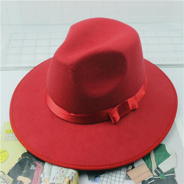 钟阿四复古黑色大檐英伦爵士帽礼帽男女士舞台儿童表演帽子 大檐毛呢棕色 儿童款(3-6岁54cm)