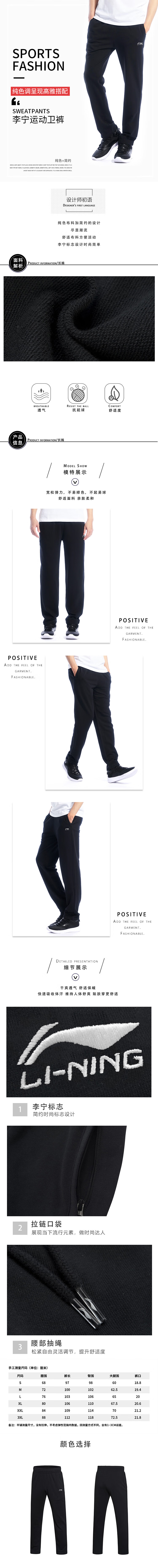 李宁运动裤男休闲裤子男卫裤直筒裤新款冬季加绒保暖跑步长裤束脚裤 黑色收口-【棉质·透气】 L /175(建议120-140斤)